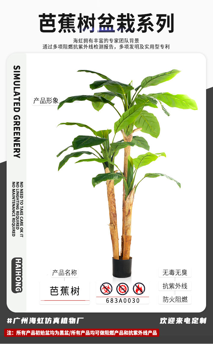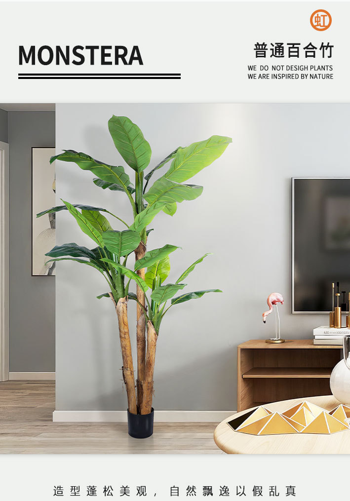 Pohon pisang simulasi TEMU lintas batas, ruang tamu dalam ruangan pot tanaman hijau palsu kelas atas, lansekap pohon pisang tropis besar