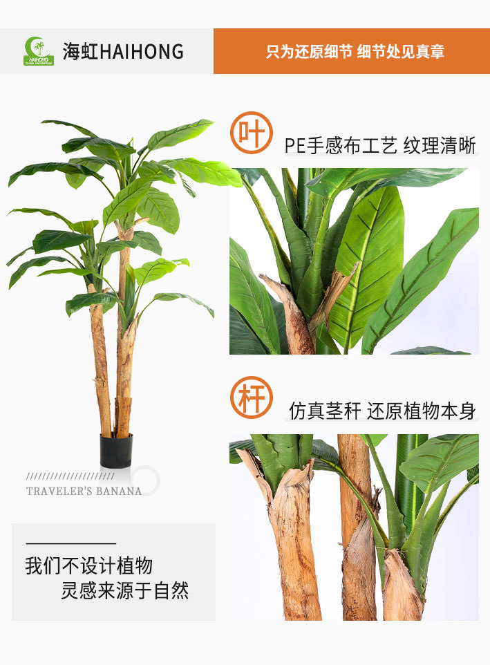 跨境旅人蕉仿真绿植盆栽客厅假绿植仿生植物装饰室内大型落地摆件