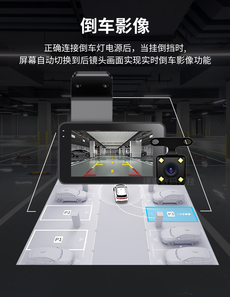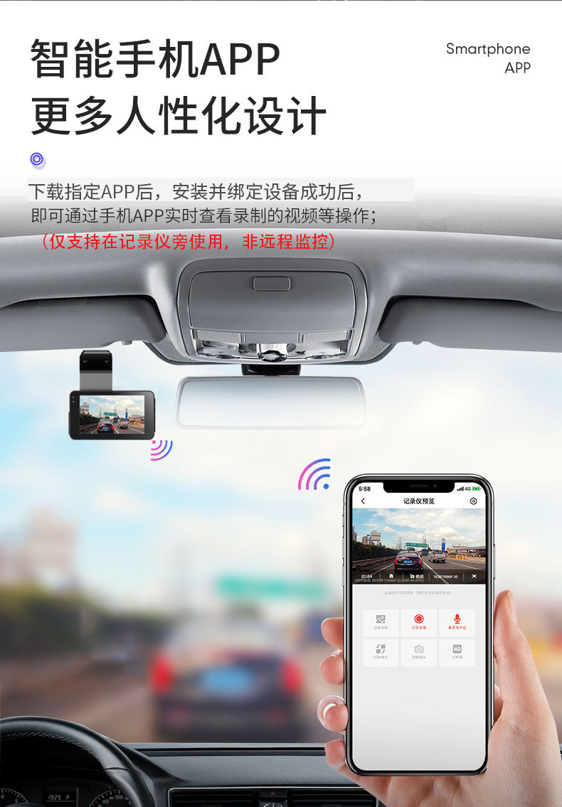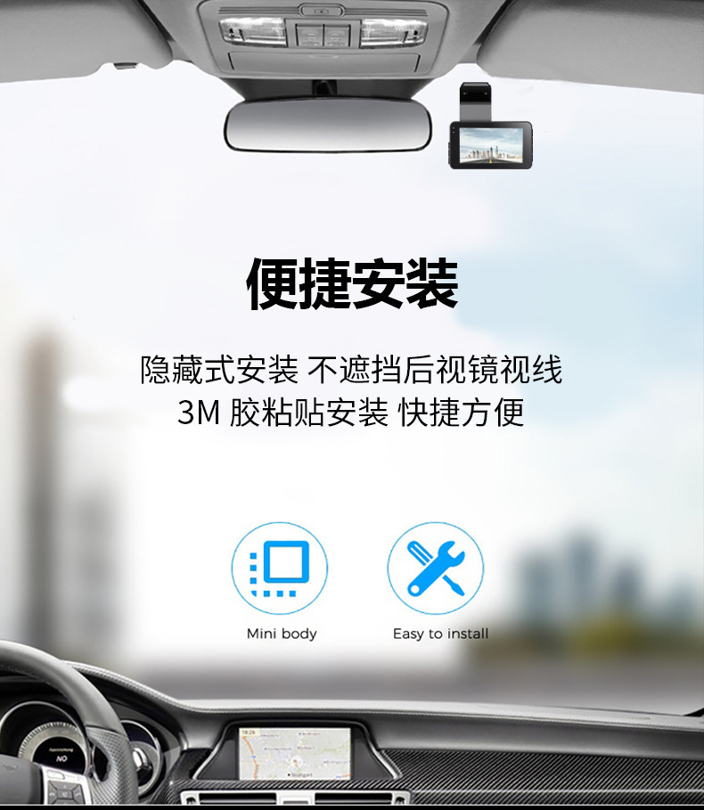 Kamera dasbor 3 inci 360 derajat lintas batas dengan konektivitas WiFi, perekam mobil dual rekaman depan dan belakang berdefinisi tinggi.