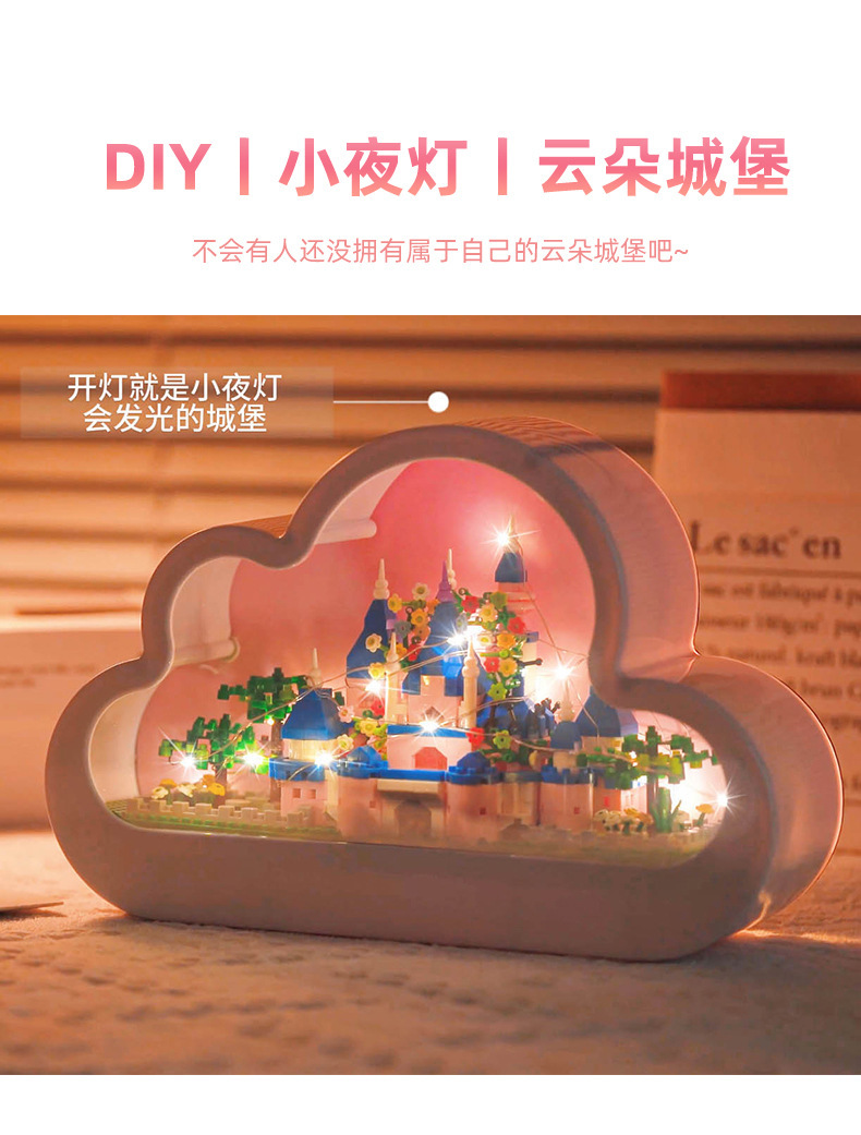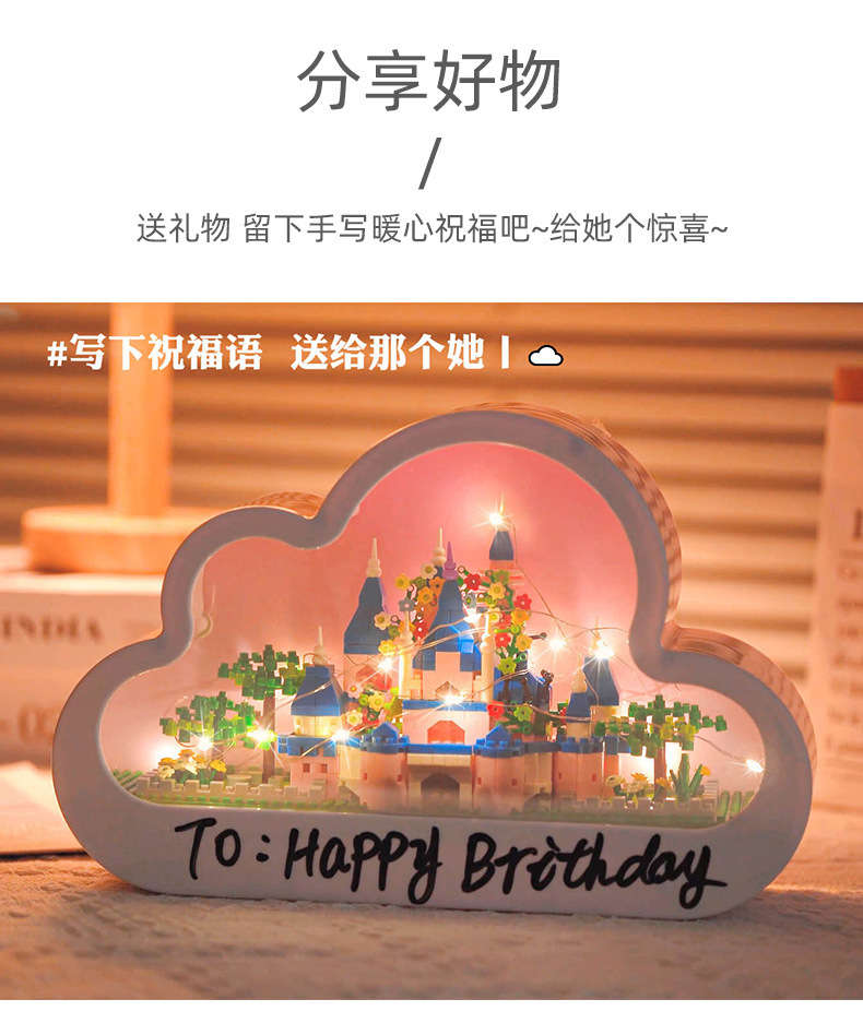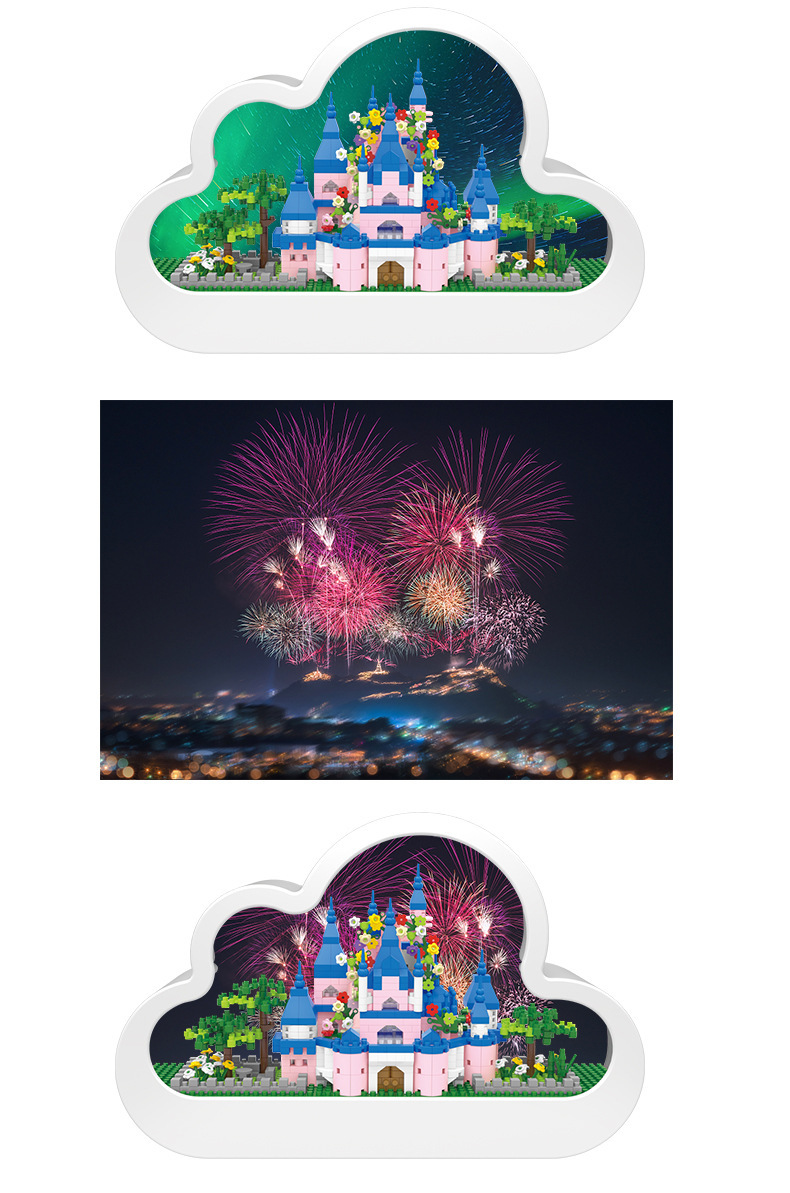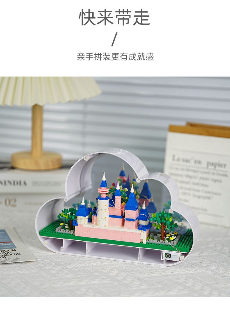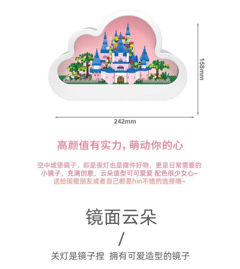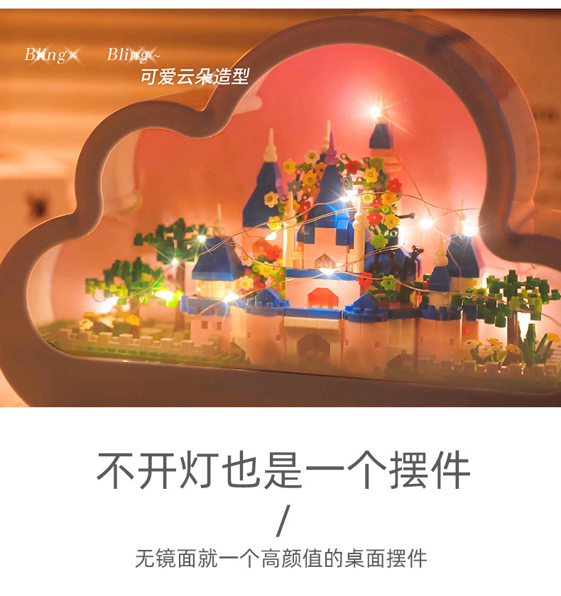 GQ3007 model dekorasi rakitan blok bangunan lampu malam cermin istana Lego model hadiah mainan anak perempuan