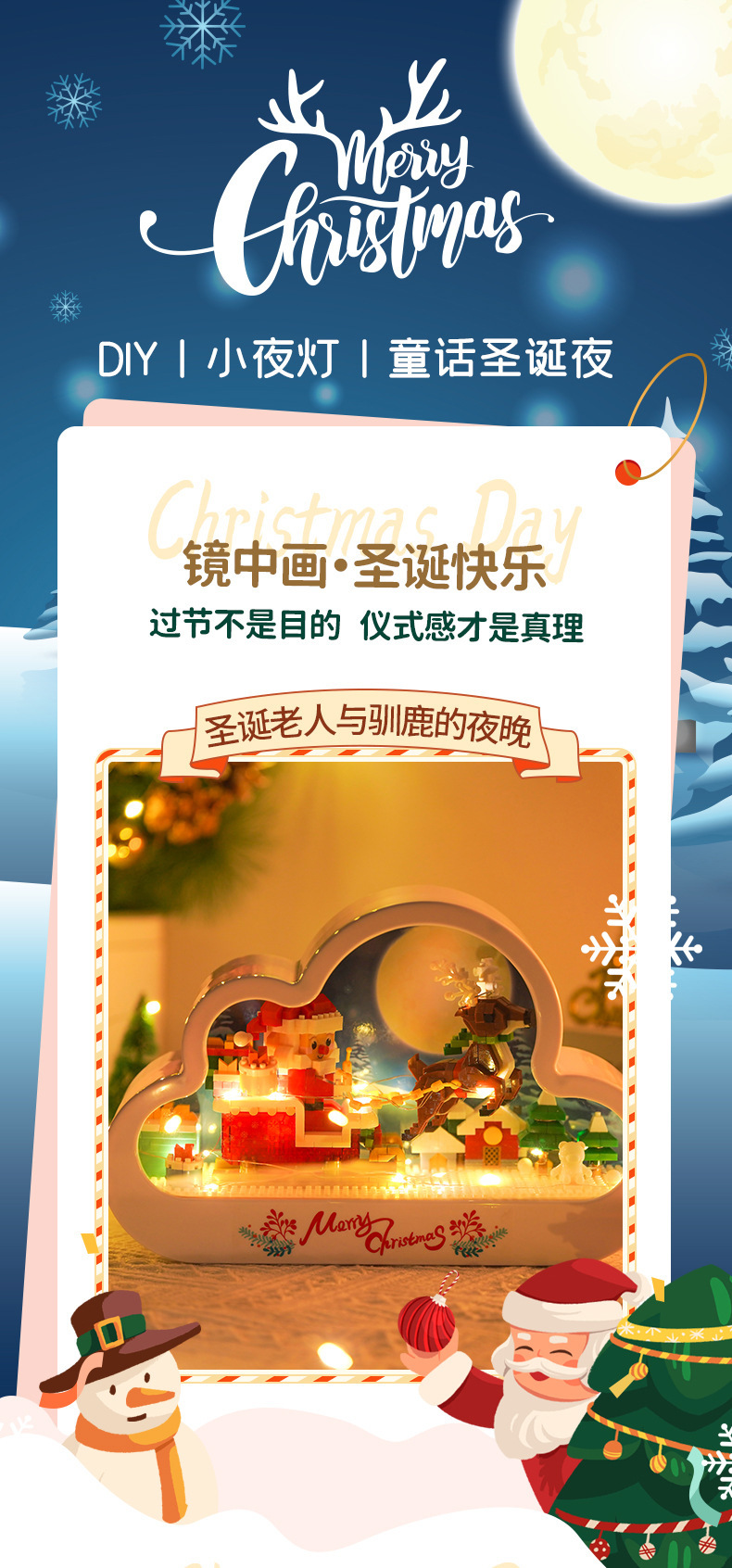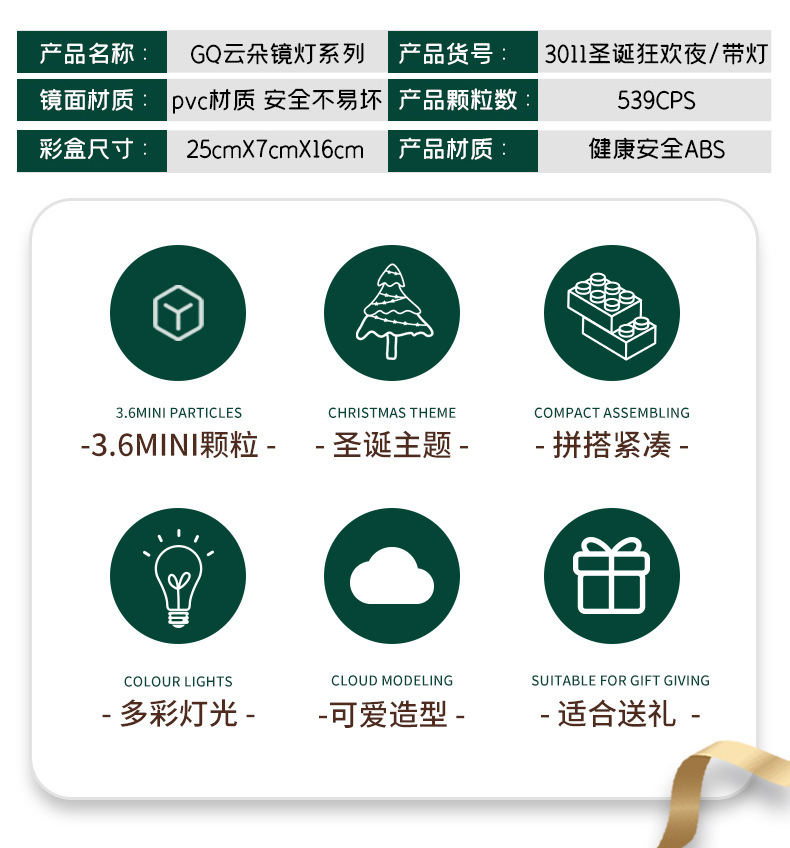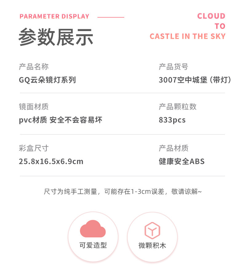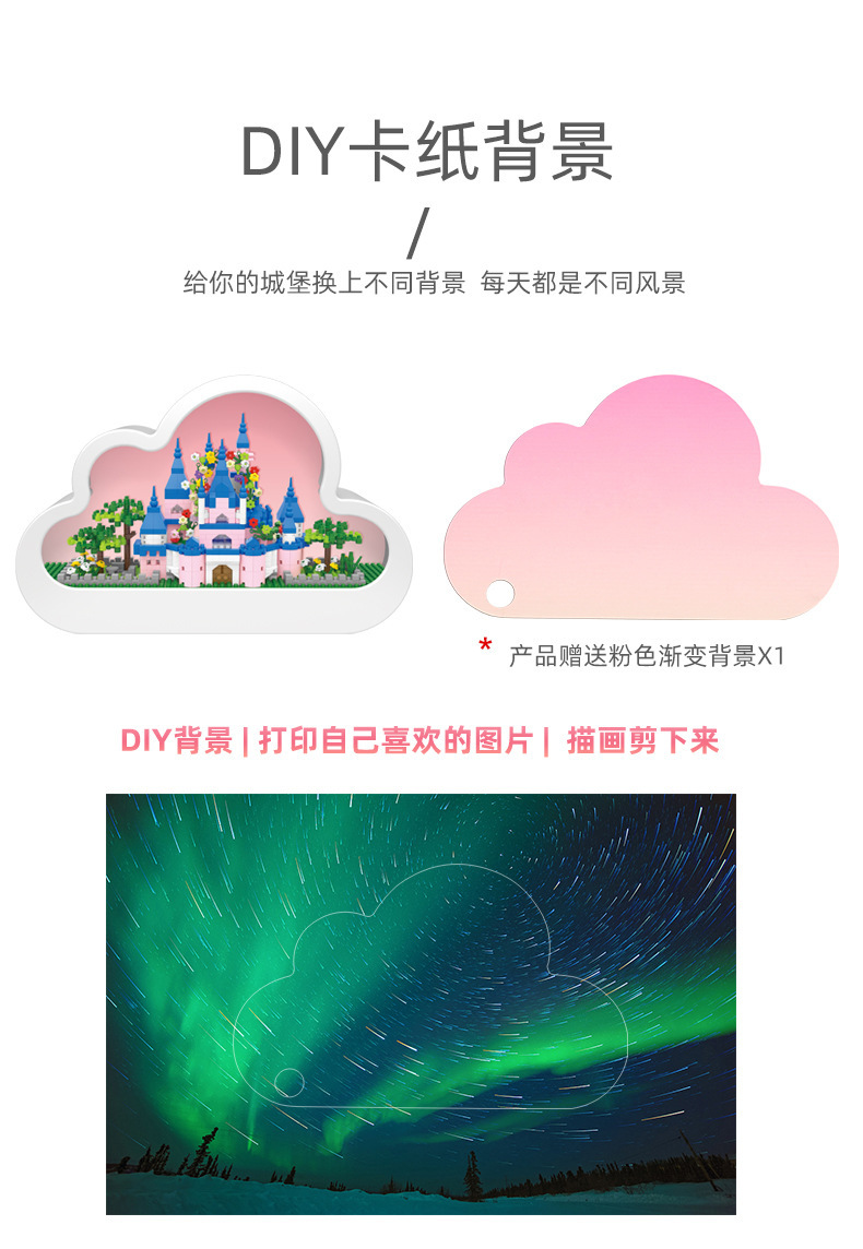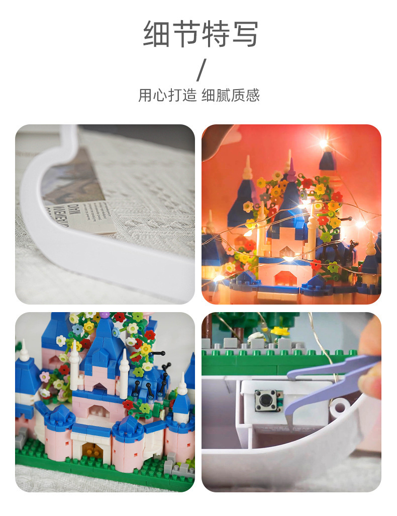GQ3007 model dekorasi rakitan blok bangunan lampu malam cermin istana Lego model hadiah mainan anak perempuan