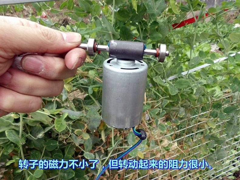 转子的磁性挺好的,但由于是无刷电机,而且是双滚珠轴承,所以电机的轴转起来比有刷电机要轻,就是这样,它才更适合DIY成一个发电机的。