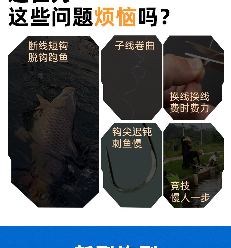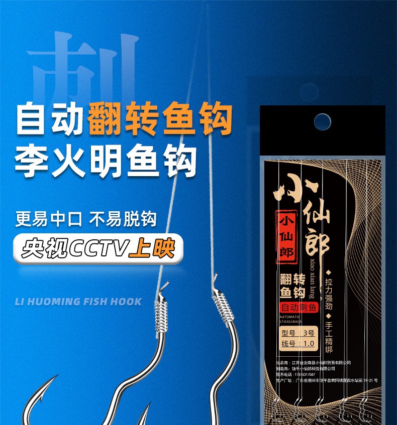 Kail pancing otomatis Xiaoxianlang, produk asli dengan leader yang sudah diikat, kail ganda siap pakai, anti lepas, terbalik, Li Huiming, grosir, untuk memancing di dasar.