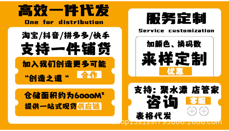 本人经营一家工厂,支持来样加工,质量稳定,我们有价格,质量优势. 需要大量联系 大量以及老客户团购客户均可以按照活动价格,请联系客服 祝各位老板生意兴隆! 至此声明:批发利润微薄非质量问题不喜欢效果不好,都不属于质量问题如要退换货请您申请退货退款扣除我们发出去的运费,非质量问题我们不承担运费