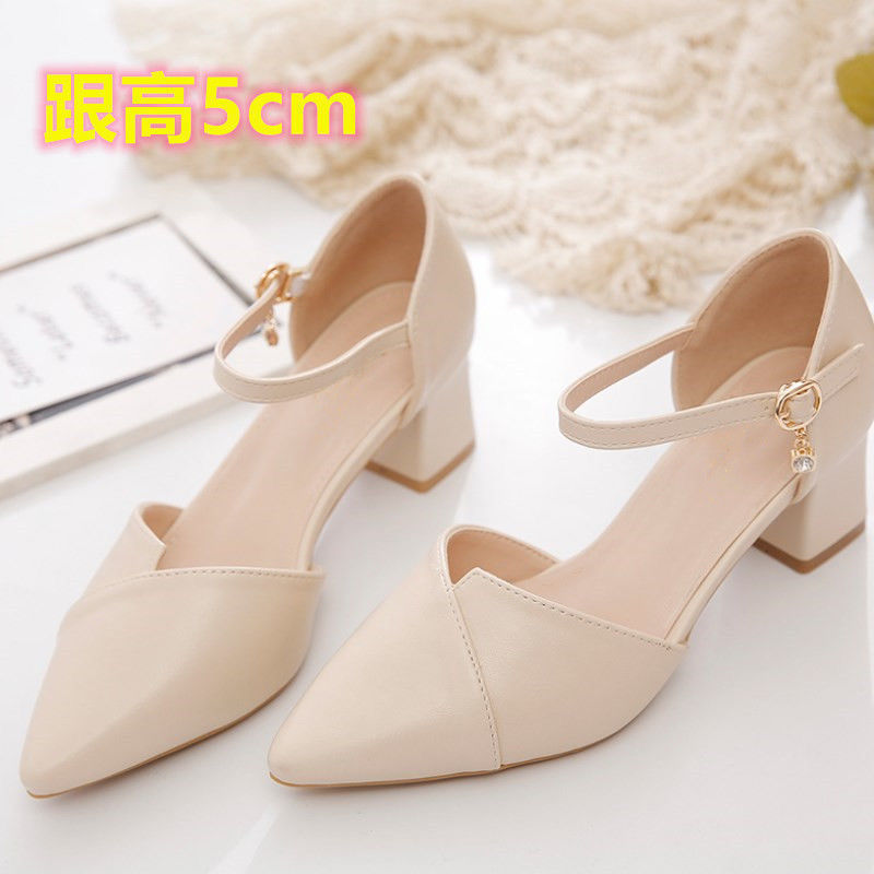 Sandal jari tertutup wanita, Kasut satu tali gesper untuk musim panas 2023 ujung lancip mulut rendah lapisan tunggal tebal
