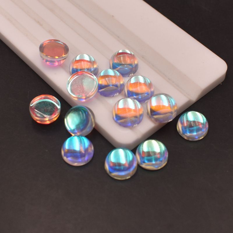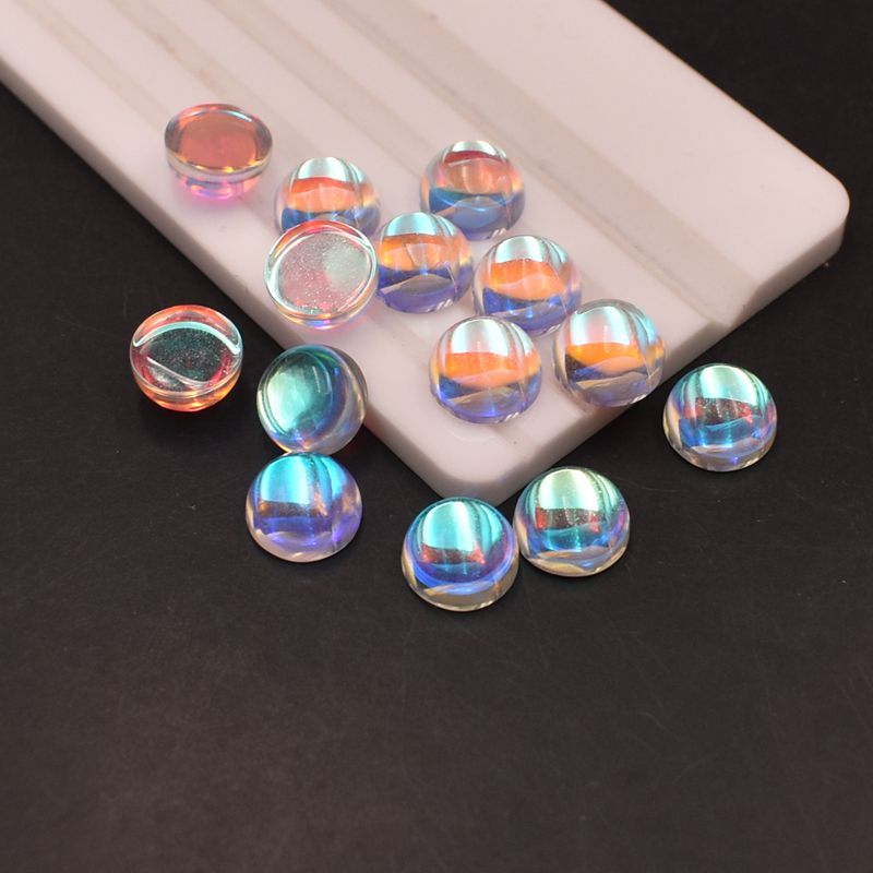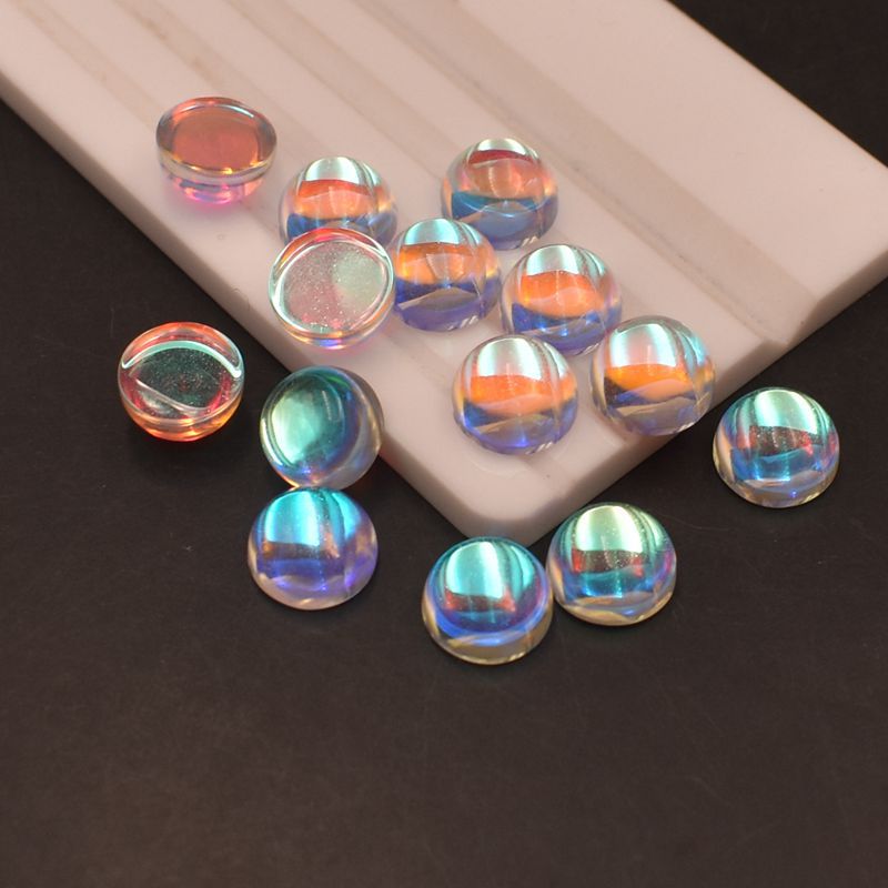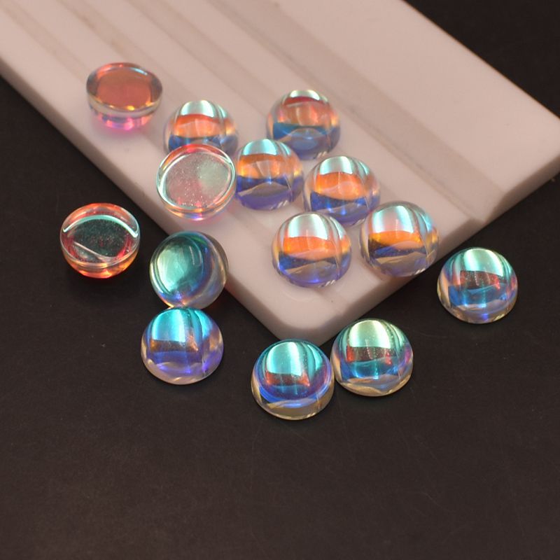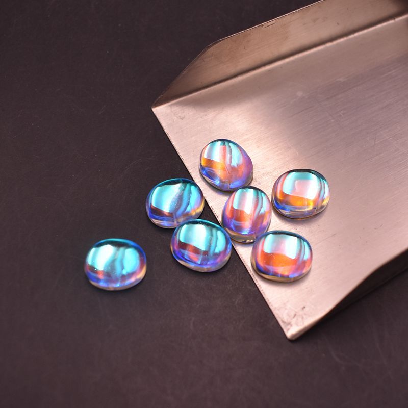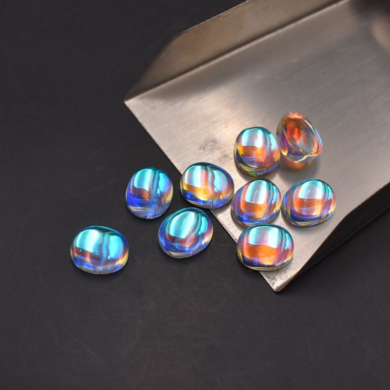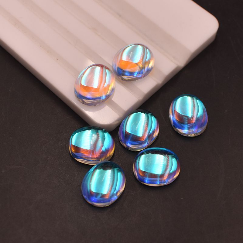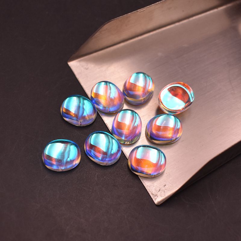 AB warna Moonstone batu Oval datar polos batu telanjang warna ajaib berlian berbentuk telur permukaan cincin permata kaca permukaan