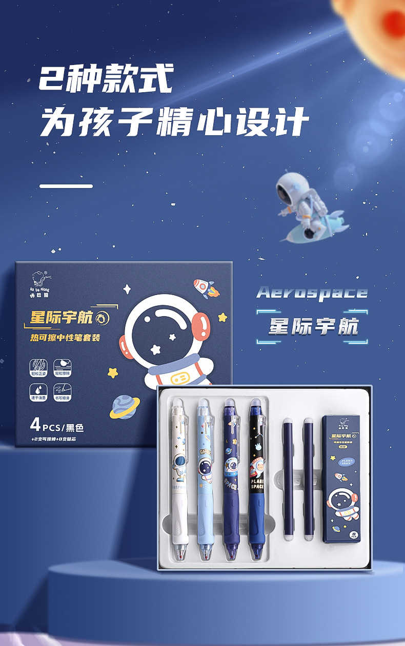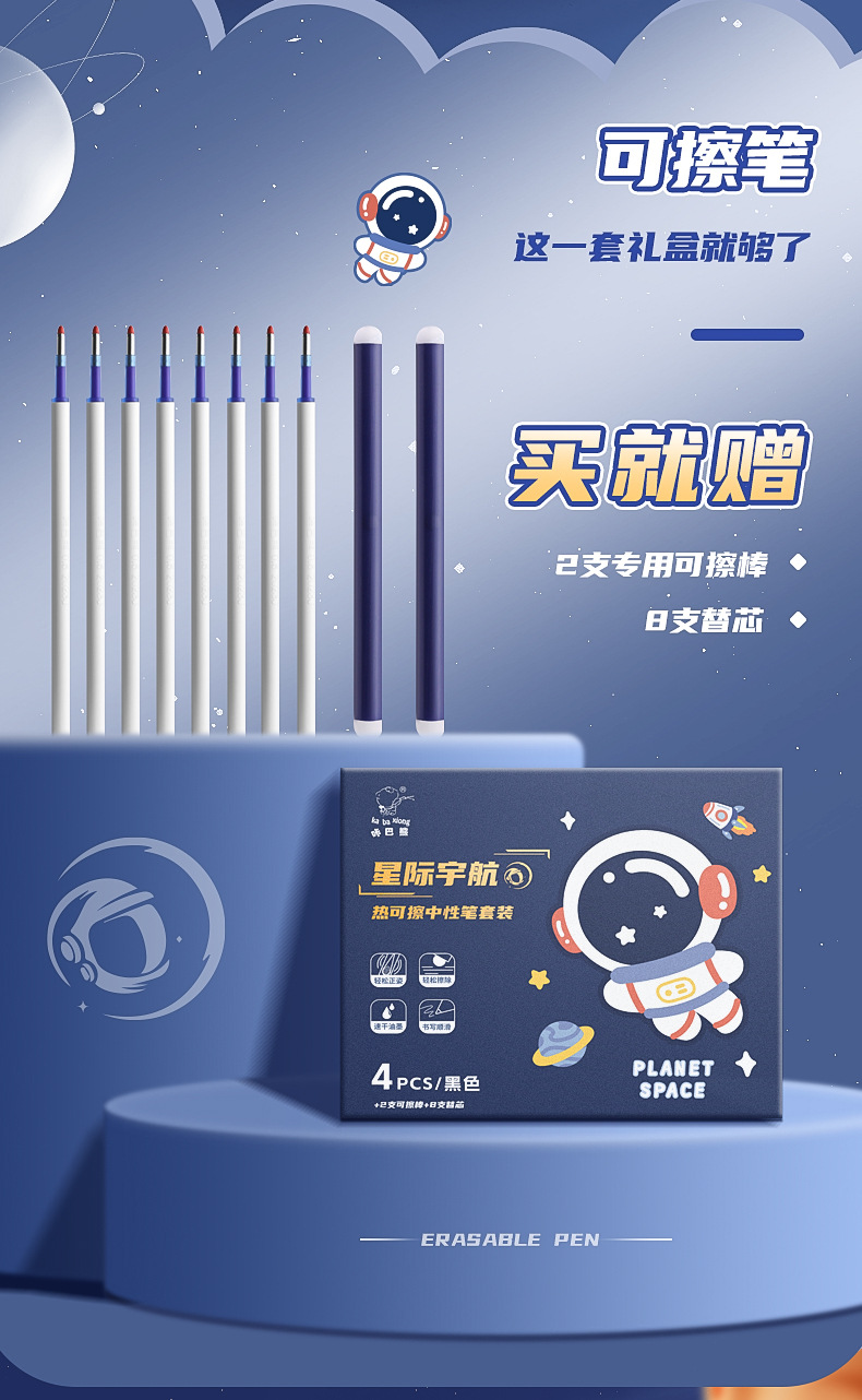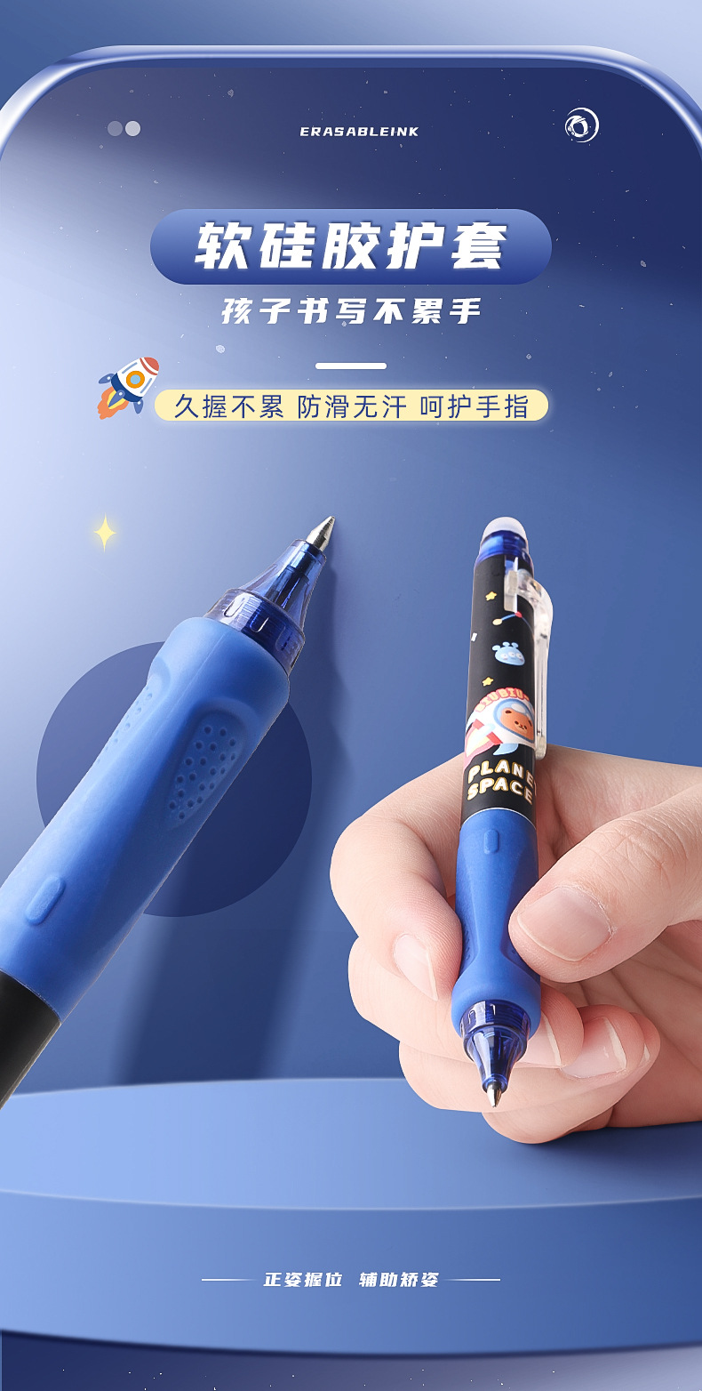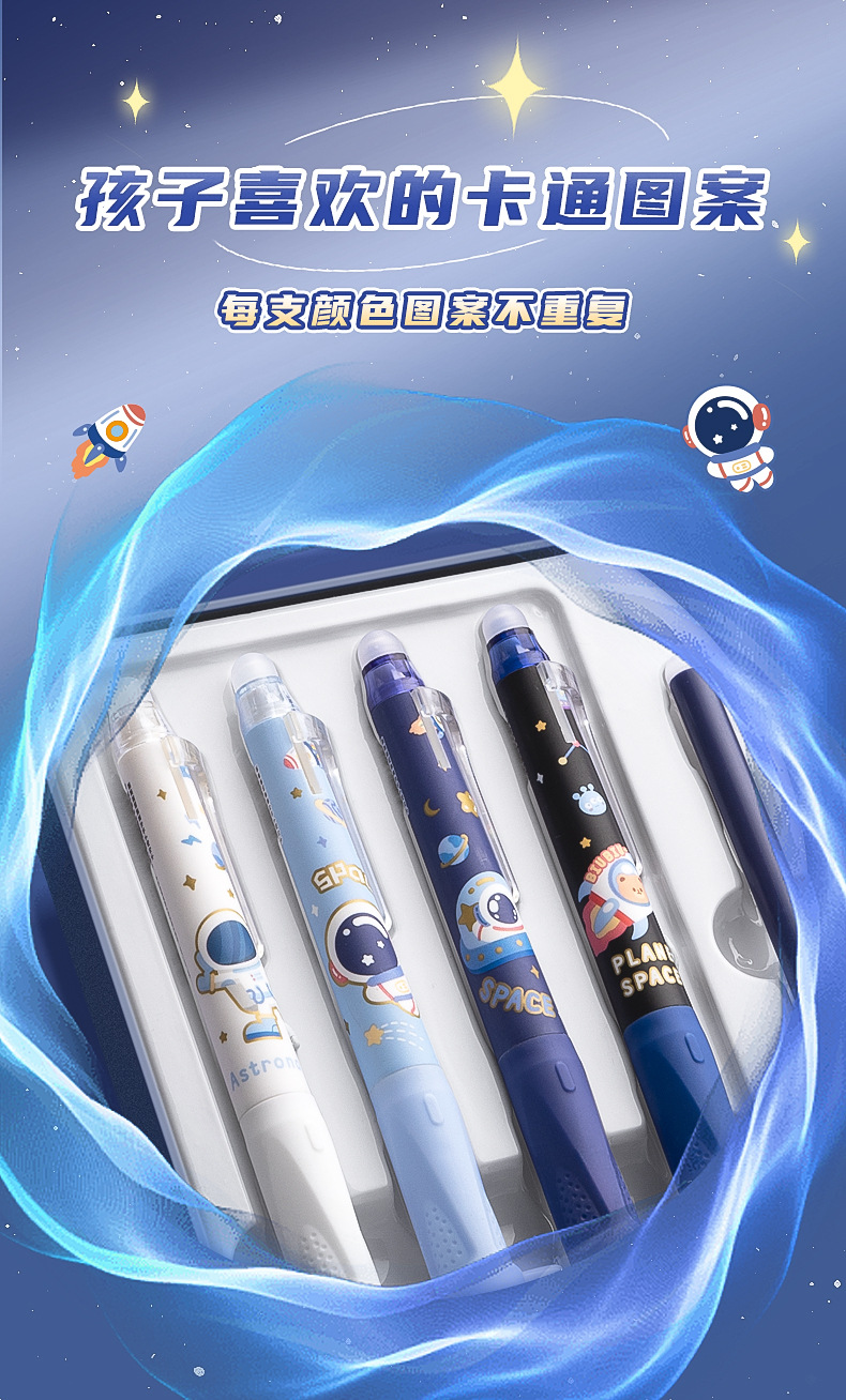 可擦中性笔小学生专用魔力擦笔摩乐擦宇航员黑色按动控笔热摩易擦