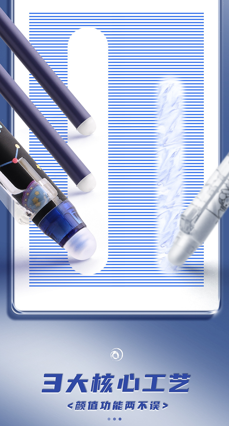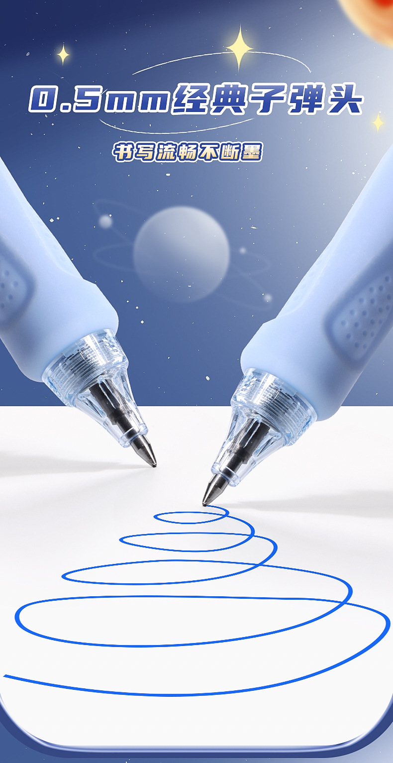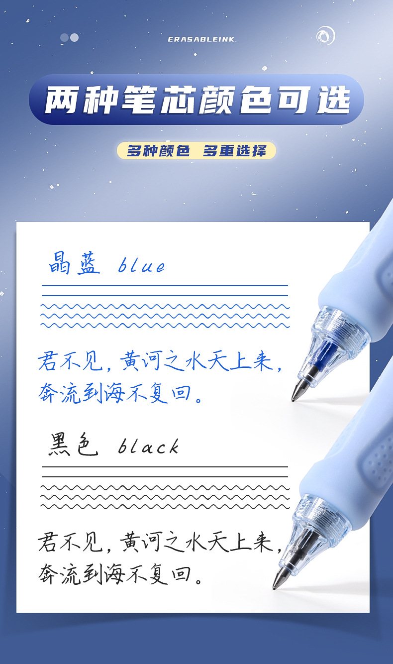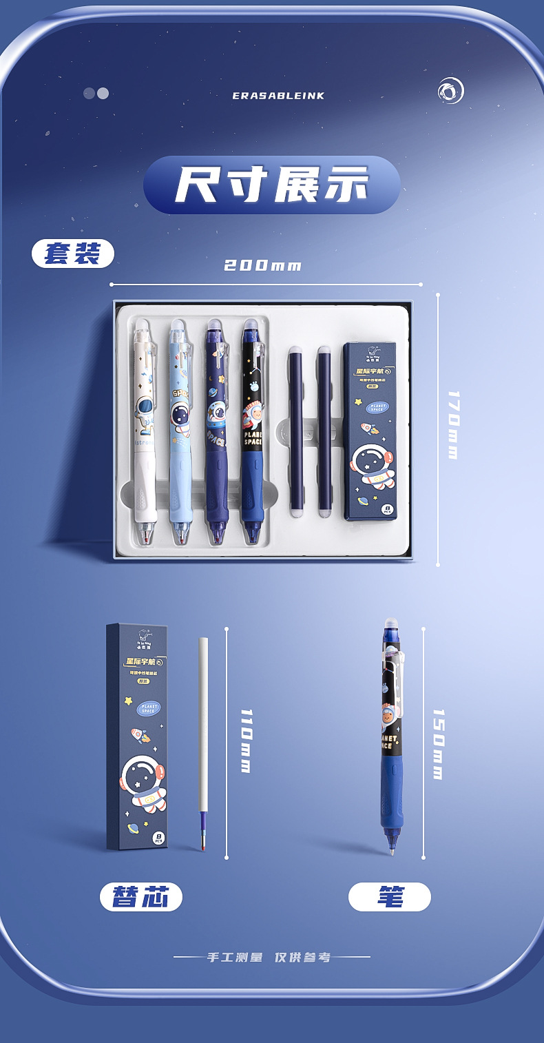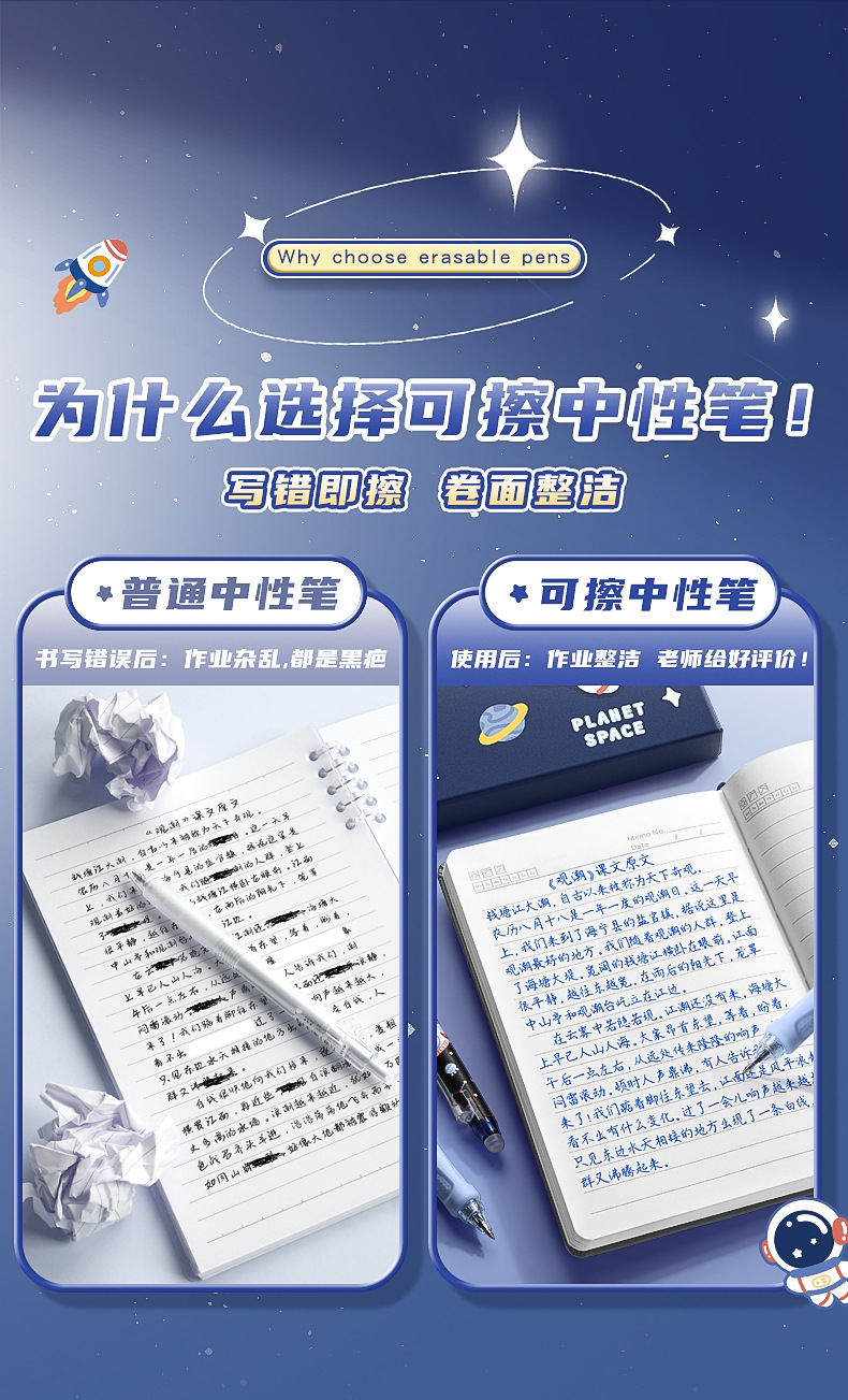 可擦中性笔小学生专用魔力擦笔摩乐擦宇航员黑色按动控笔热摩易擦