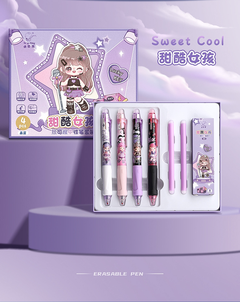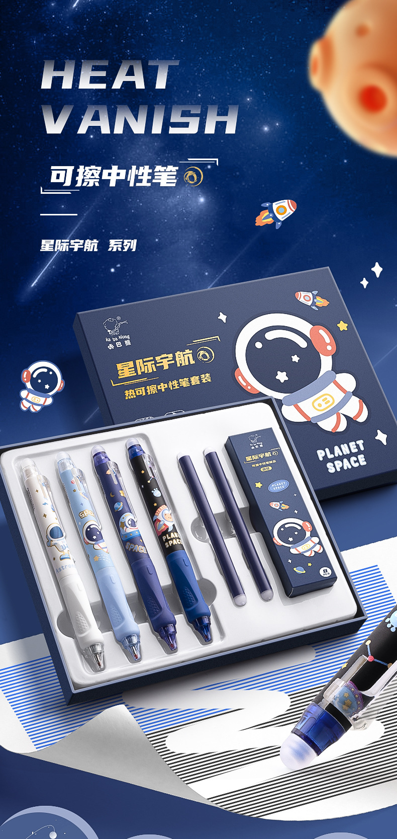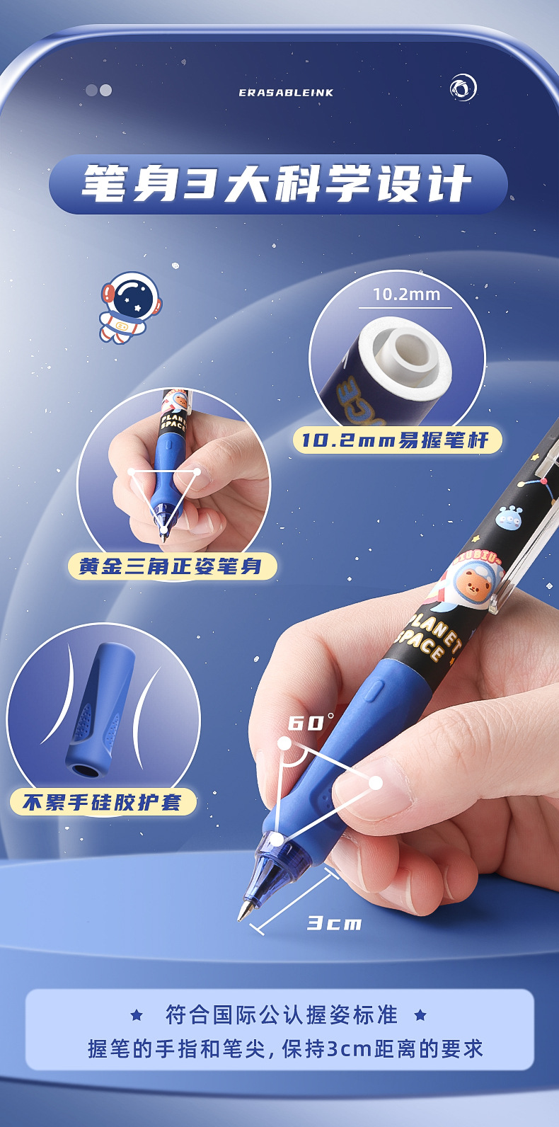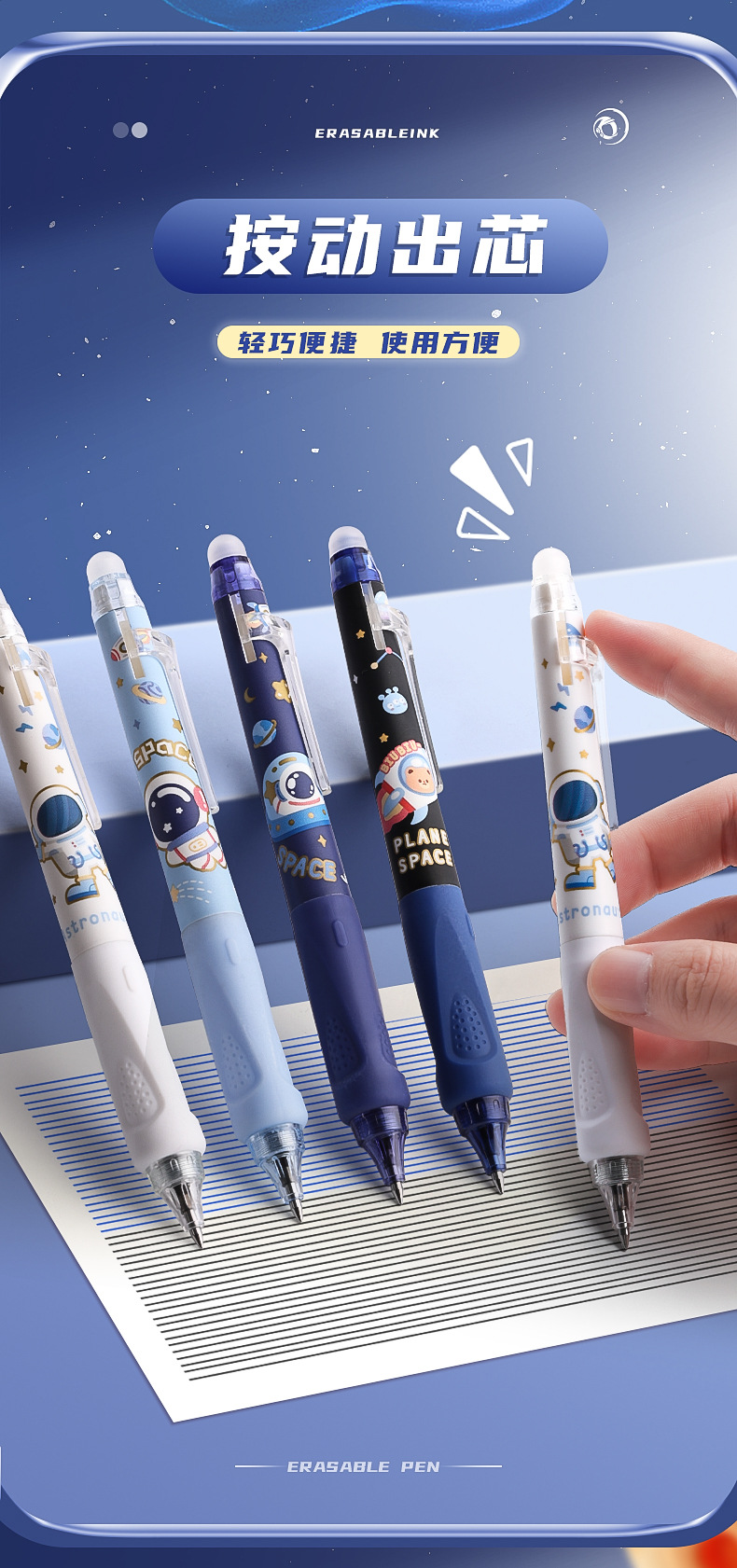 可擦中性笔小学生专用魔力擦笔摩乐擦宇航员黑色按动控笔热摩易擦