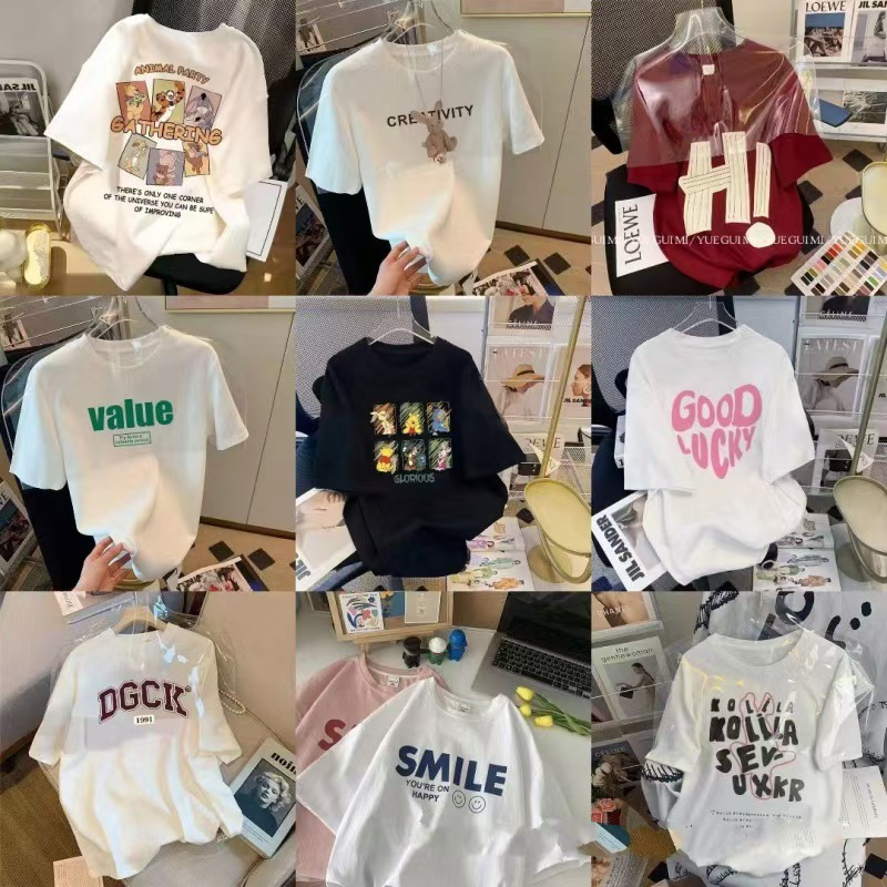 2 Yuan Pakaian Wanita Warung Pasokan Grosir Musim Panas Model Baru T-shirt Lengan Pendek Kemeja Bottoming Wanita 9.9 Gratis Ongkir Satu Potong Rambut