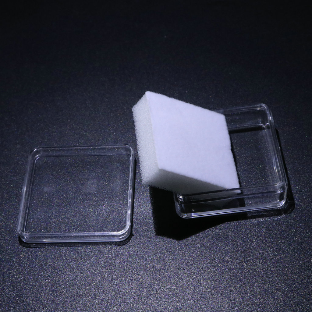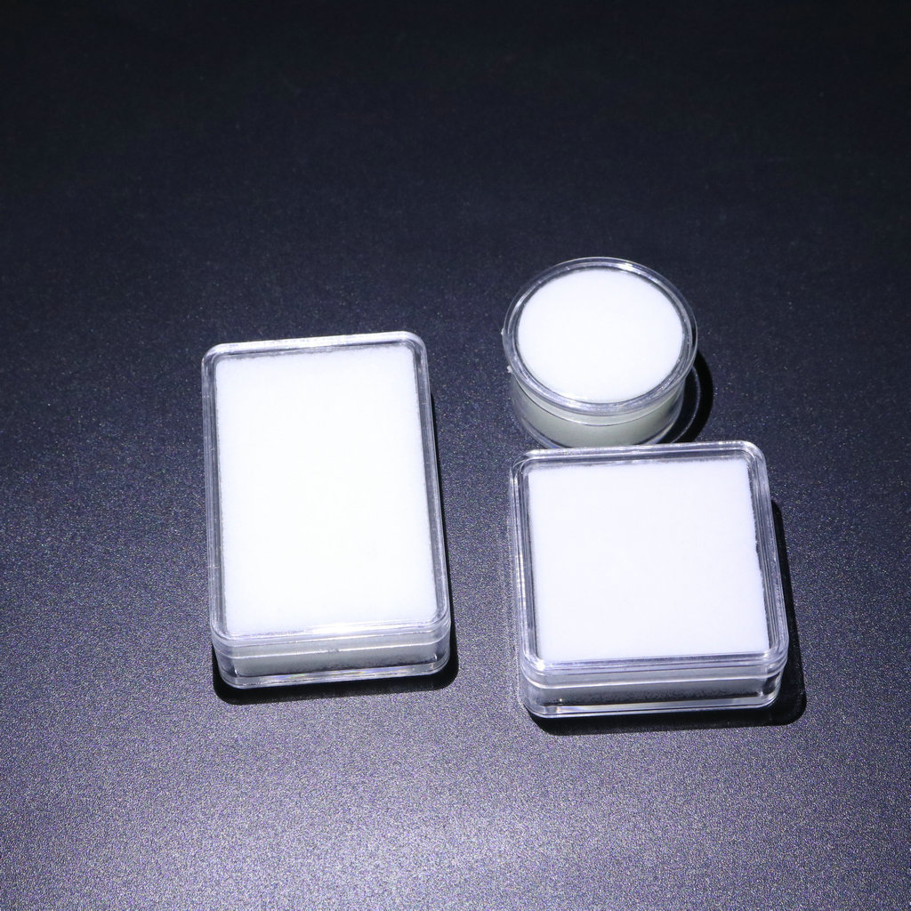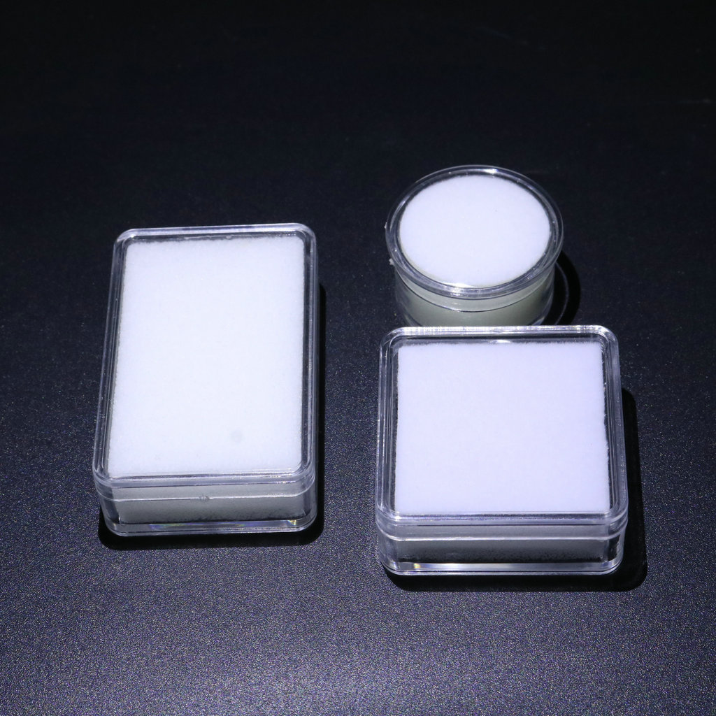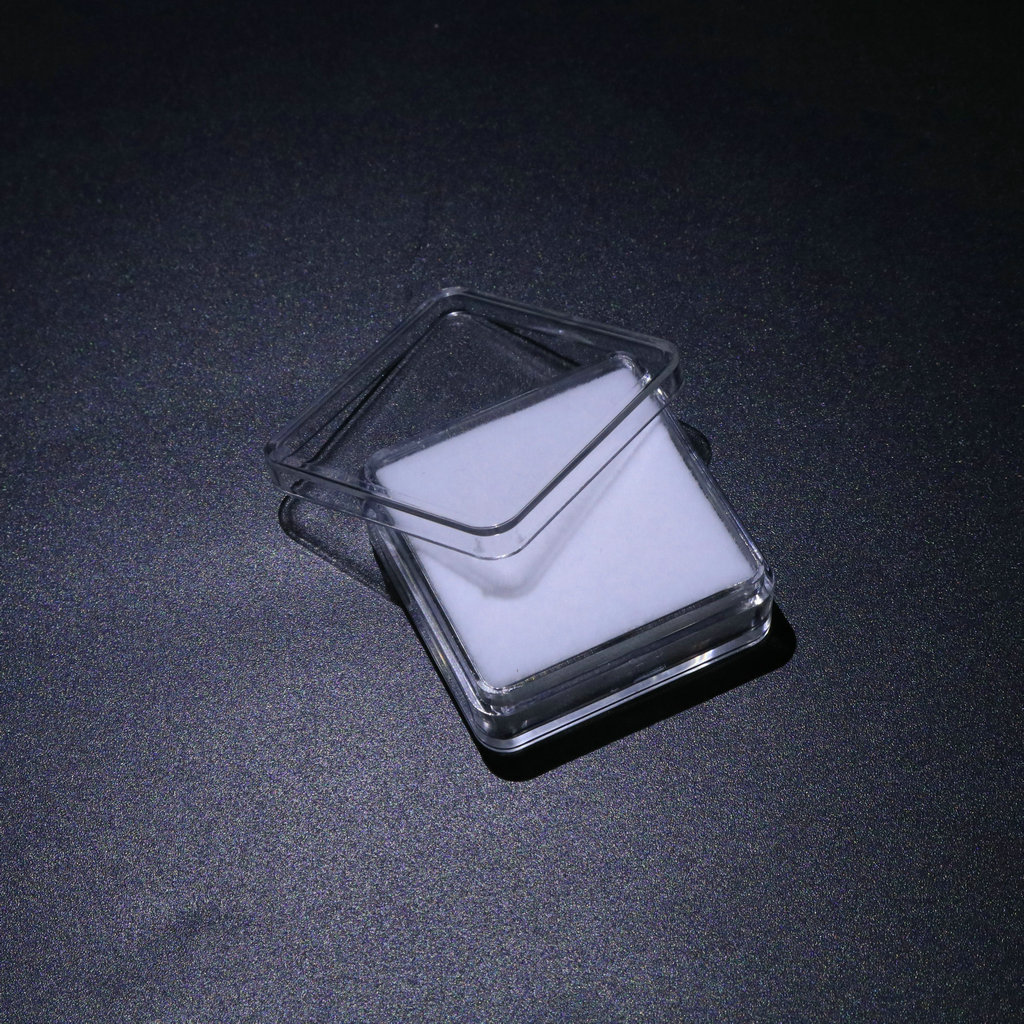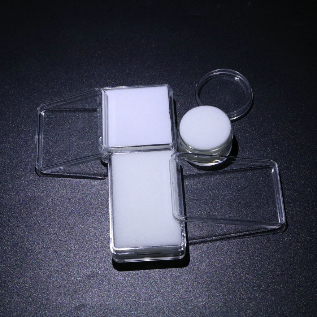 Kotak penyimpanan batu akrilik putih transparan, spon terbuka batu tampilan penghitung perhiasan bundar persegi