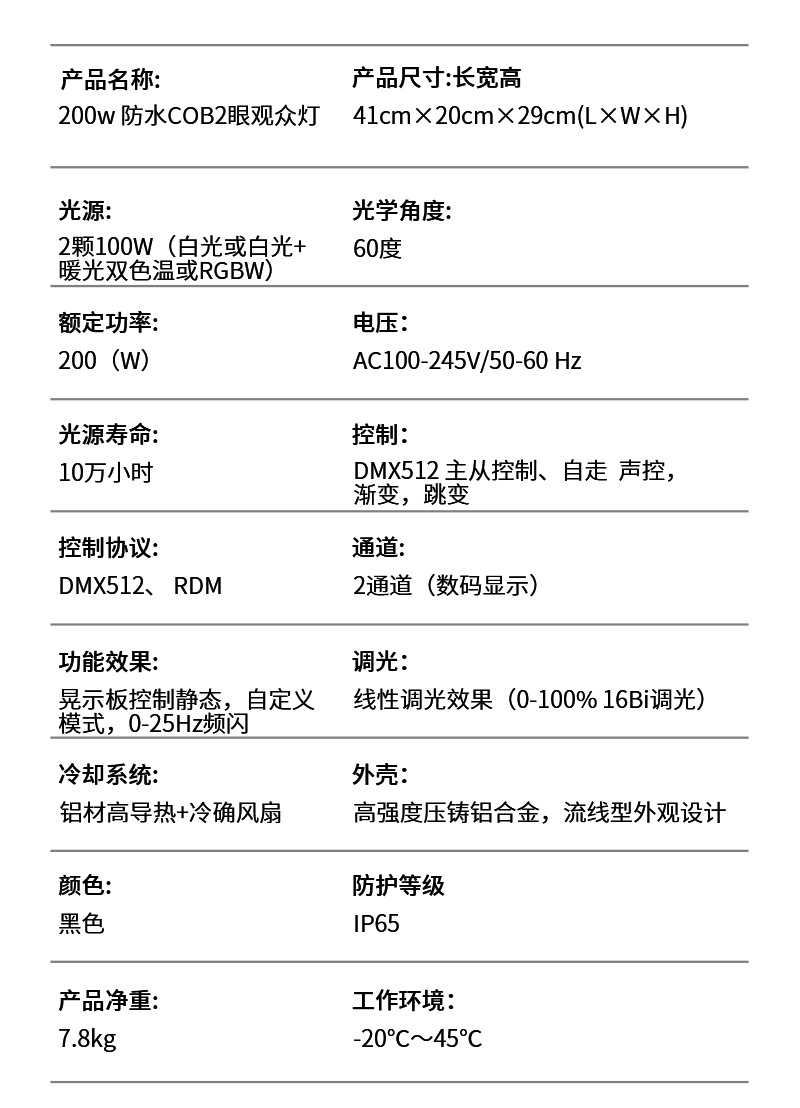 Lampu Wajah LED 200W Lampu Penonton Dua Mata Lampu Wajah Tahan Air COB Lampu Panggung Pertunjukan Ruang Pameran Luar Ruangan 2 Pelindung Mata