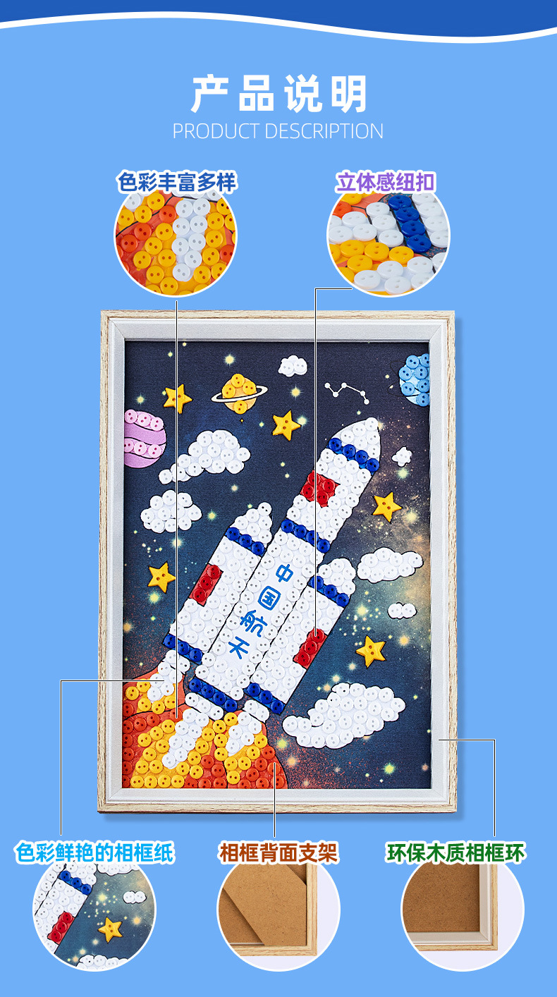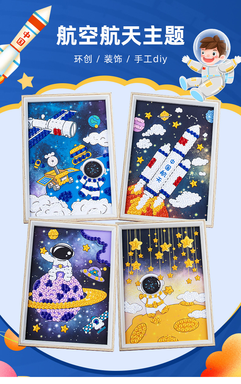 Warisan budaya tak terkait astronot luar angkasa Tahun Ular kancing lukisan buatan tangan diy taman kanak-kanak puzzle aktivitas dekorasi bingkai foto
