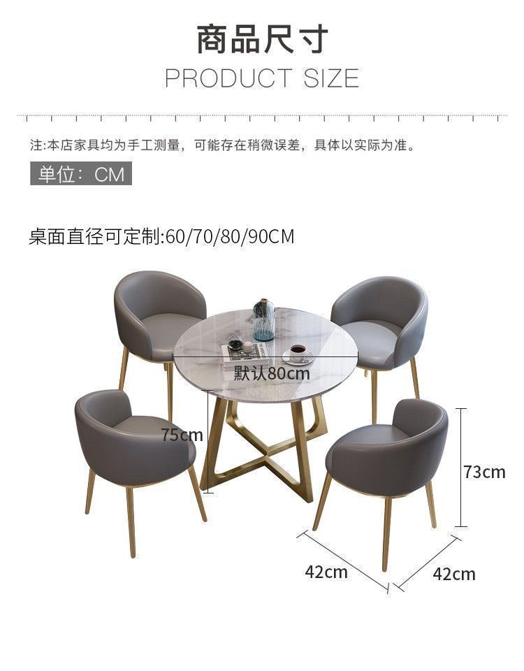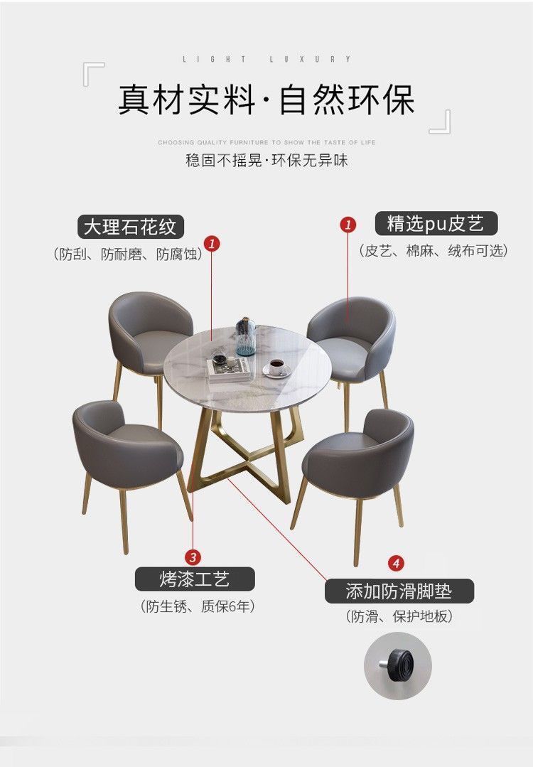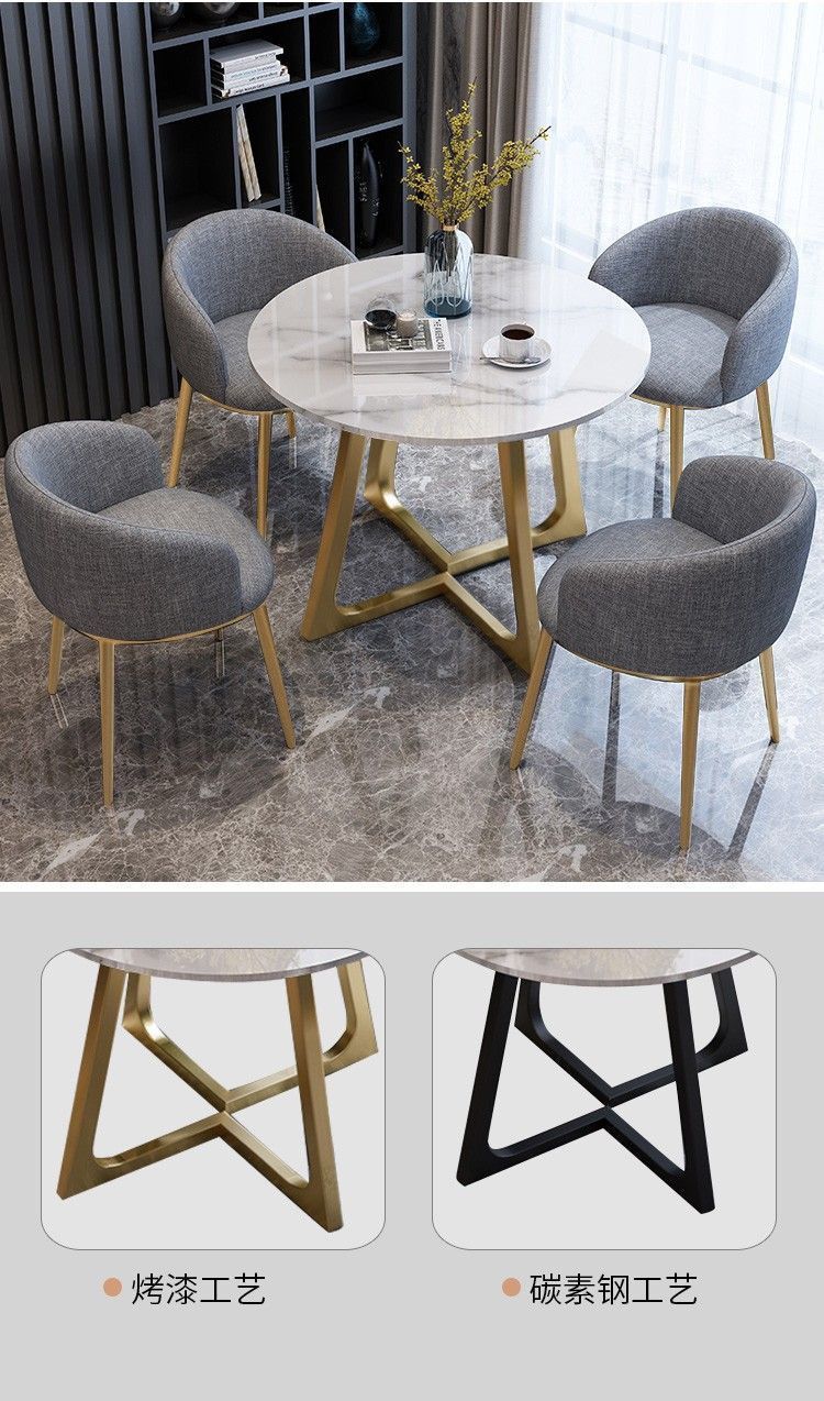 Meja negosiasi piring batu mewah ringan dan kursi kombinasi toko teh susu makanan ringan toko penjualan toko departemen penerimaan ruang konferensi meja bulat kecil