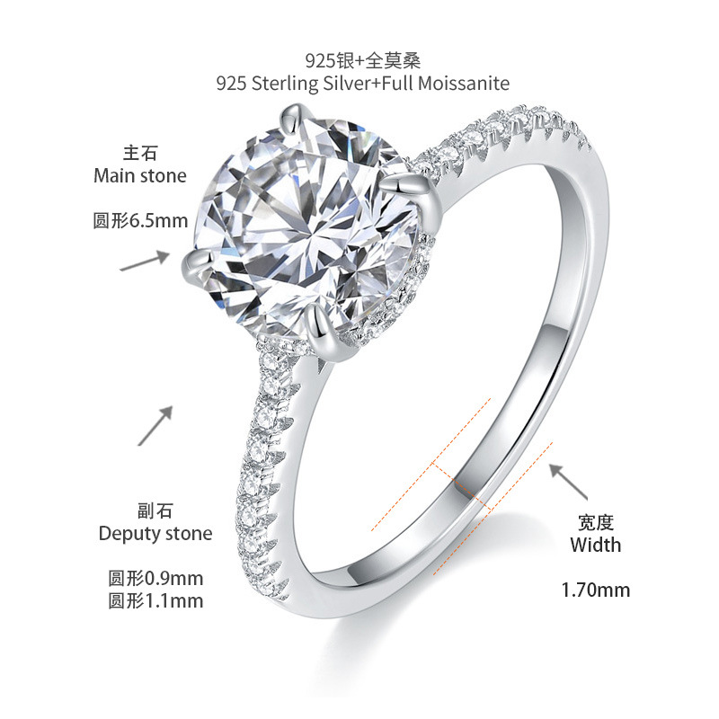 Perhiasan Yuntong Perak 925 Berlapis Platinum 1-4ct Moissanite Cincin Empat Cakar Cincin Pernikahan Cincin Berlian Sederhana Perhiasan Berlian Wanita
