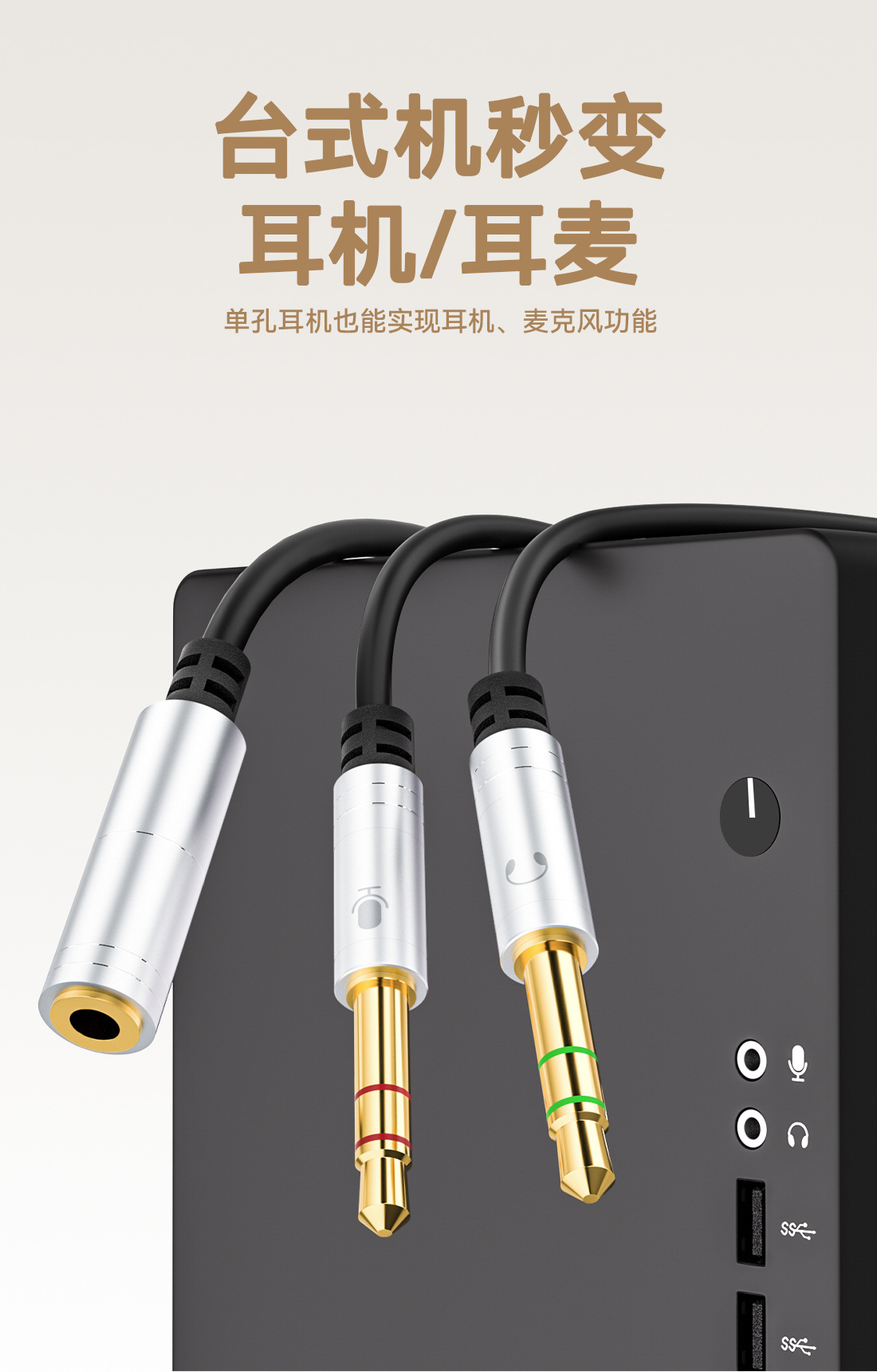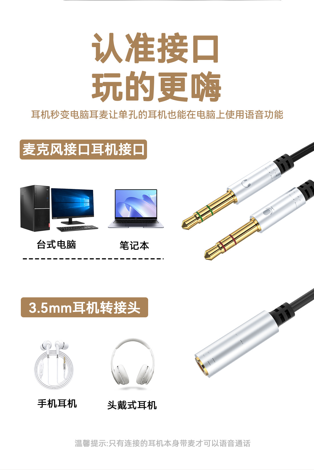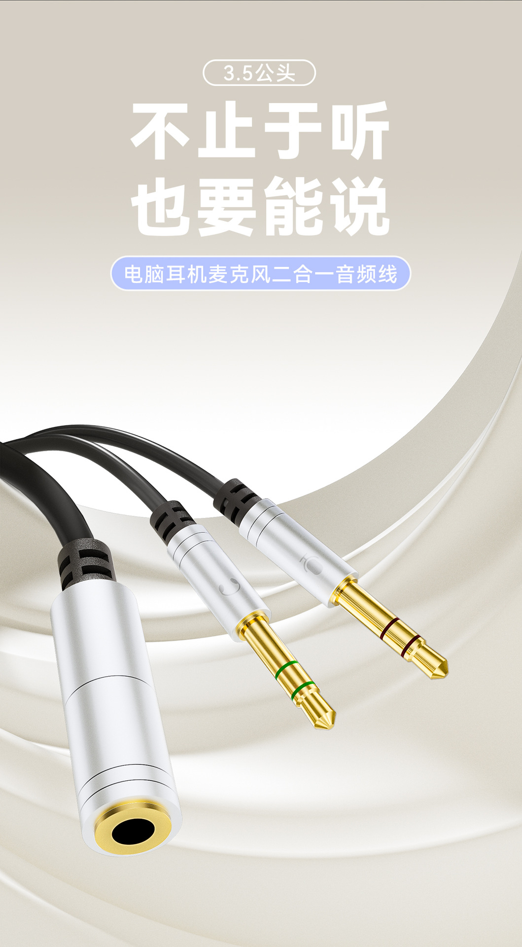 Headset Komputer desktop 3.5mm, kabel audio dua dalam satu headset ponsel untuk komputer, kabel audio satu menit dua