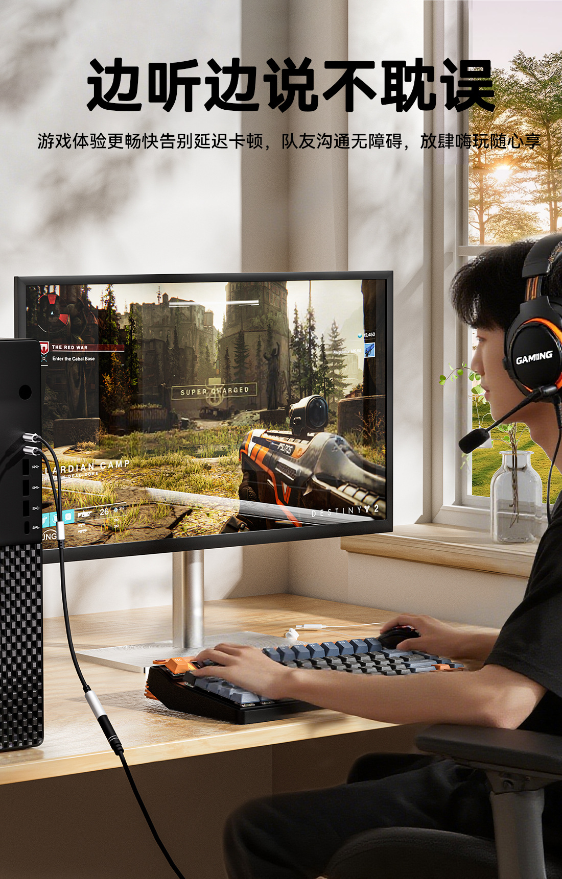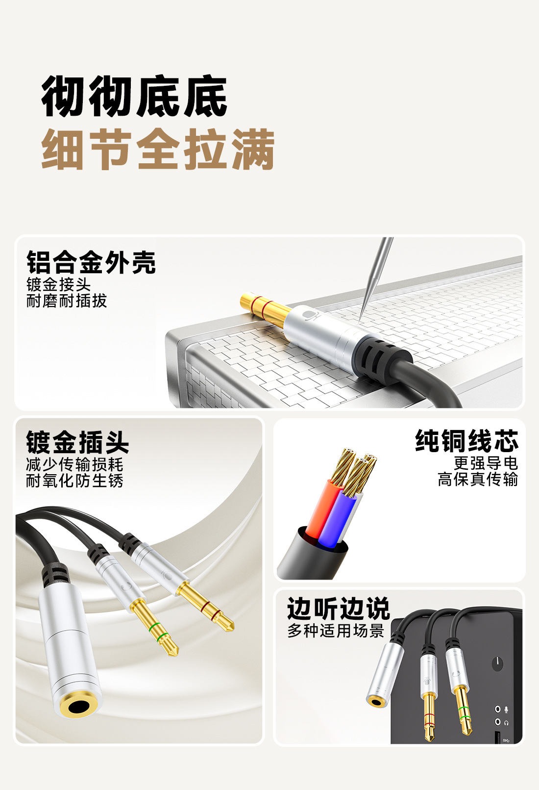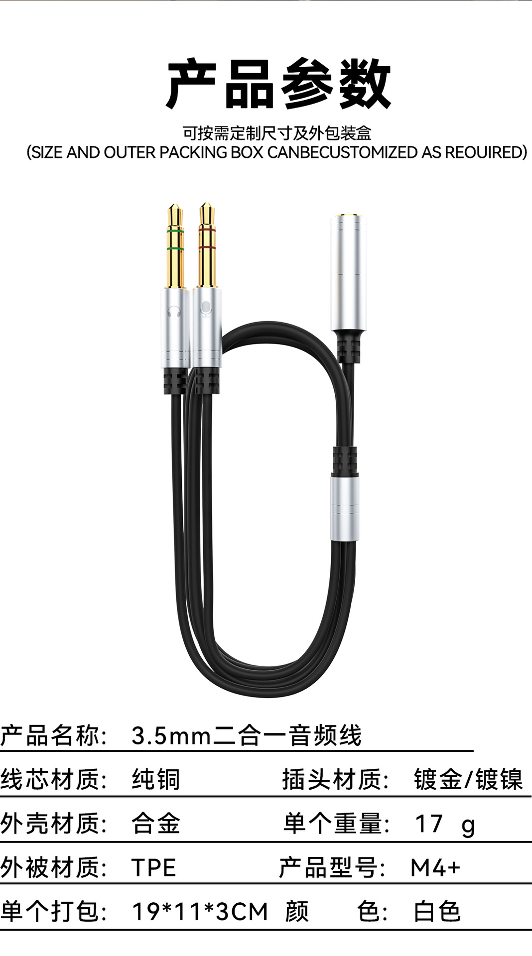 Headset Komputer desktop 3.5mm, kabel audio dua dalam satu headset ponsel untuk komputer, kabel audio satu menit dua