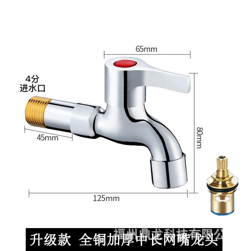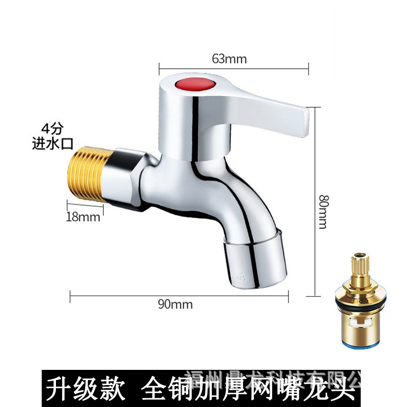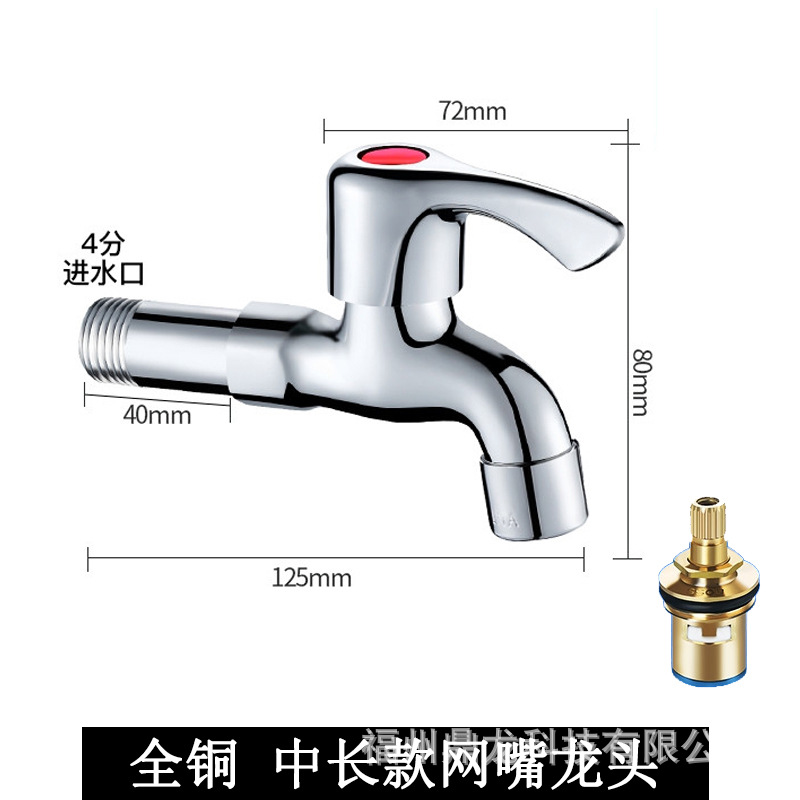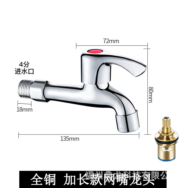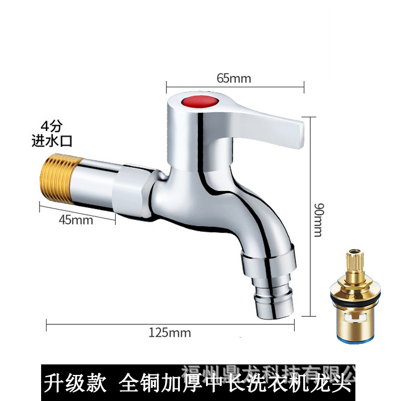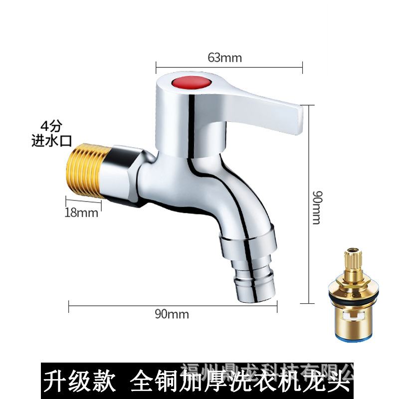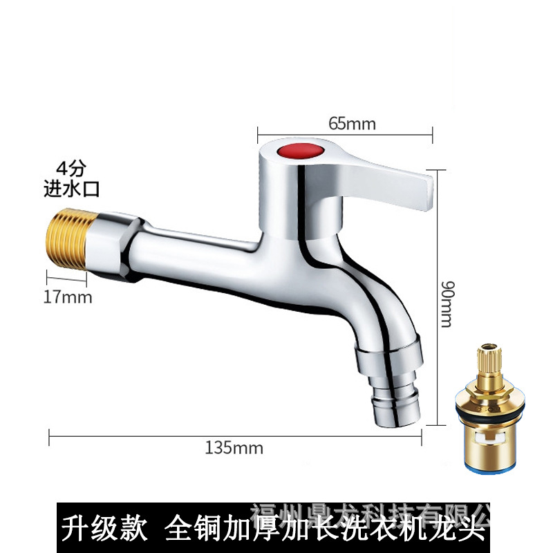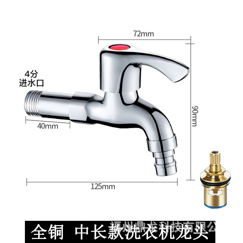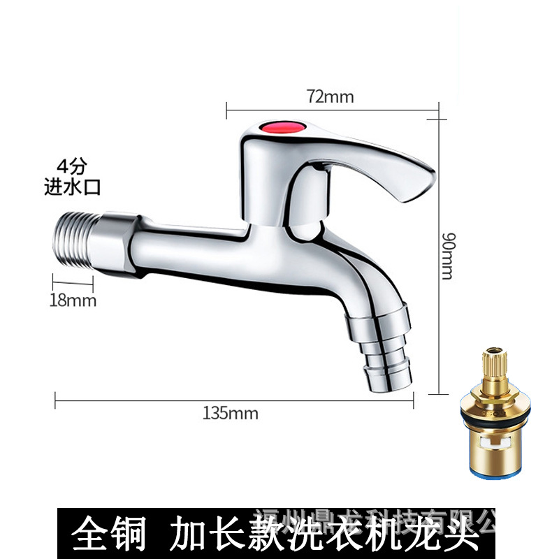 Keran mesin cuci 4 titik, keran pel tembaga murni, saklar inti tembaga yang diperpanjang, keran rumah tangga, paduan seng, Keran terbuka cepat dingin