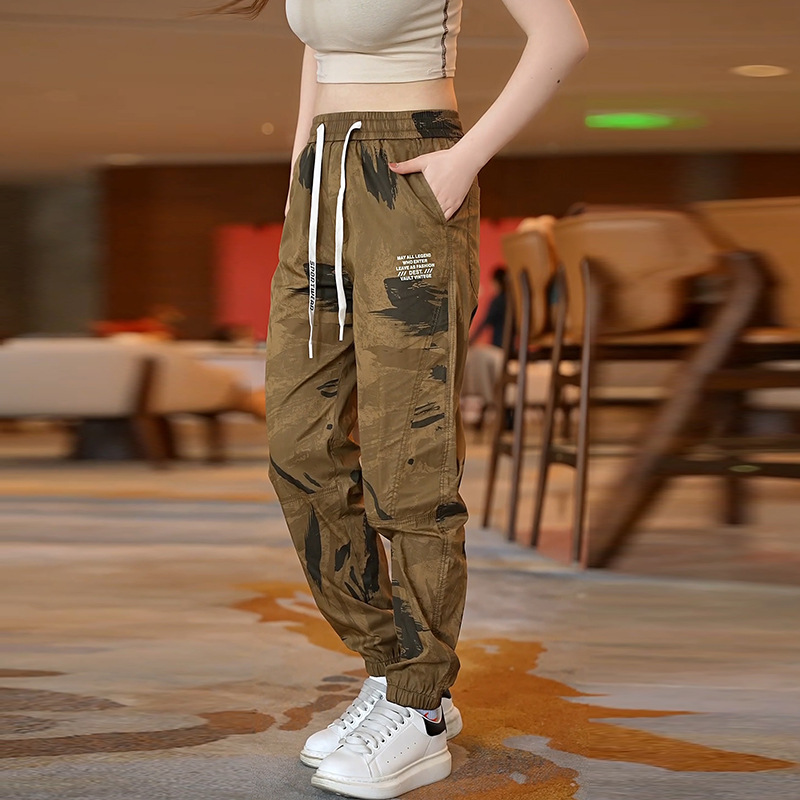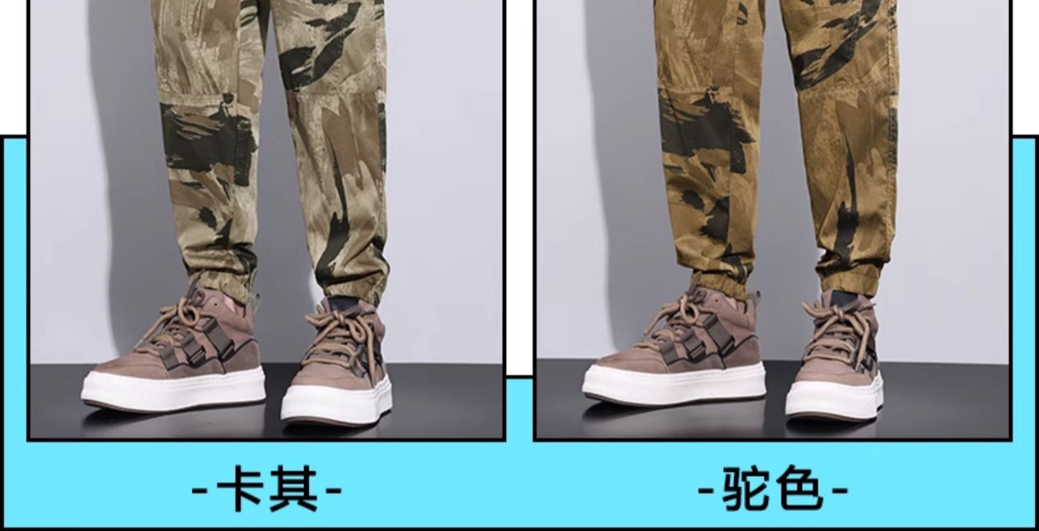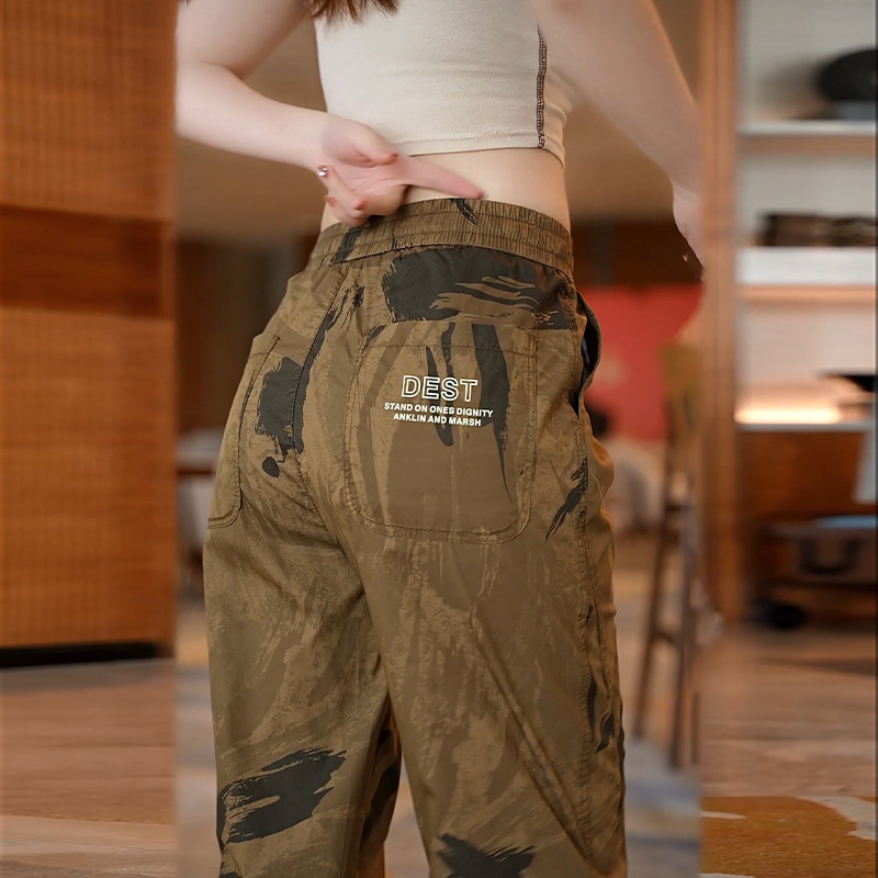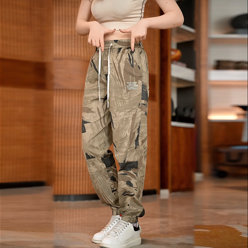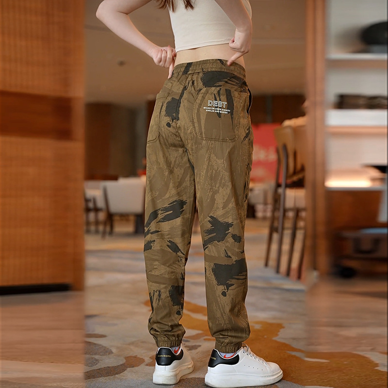 Celana pria kamuflase, celana olahraga cepat kering, kasual pria, celana kerja ikat pergelangan kaki tipis, sutra es, musim panas baru 2024