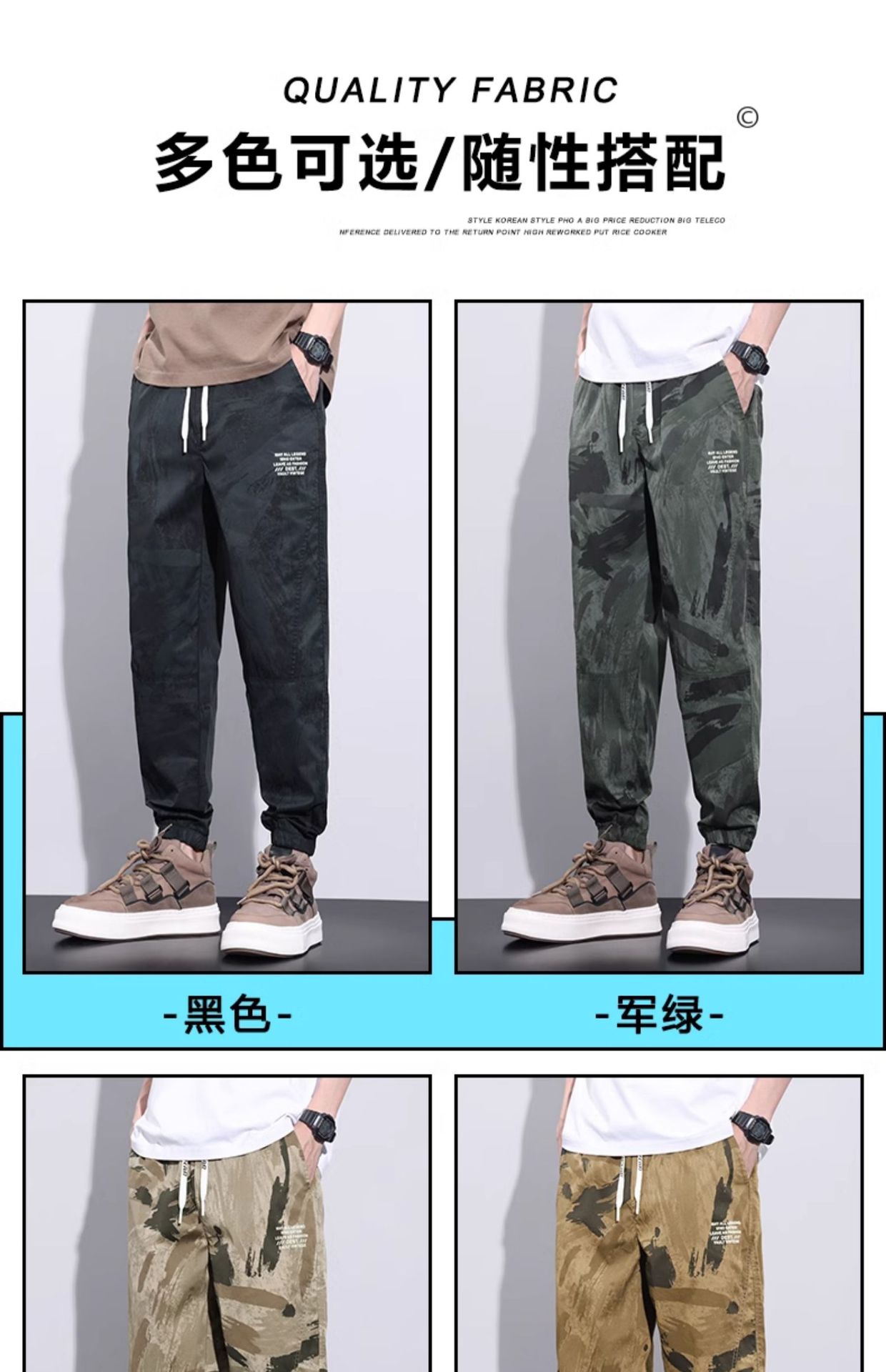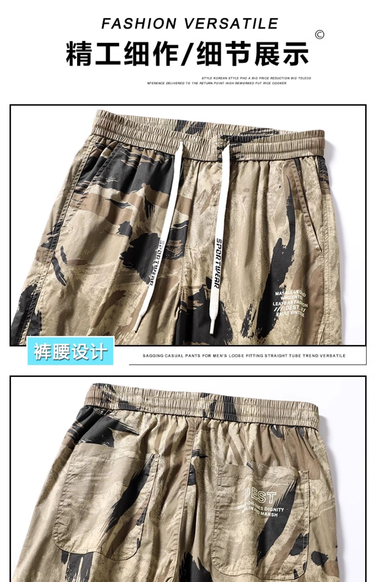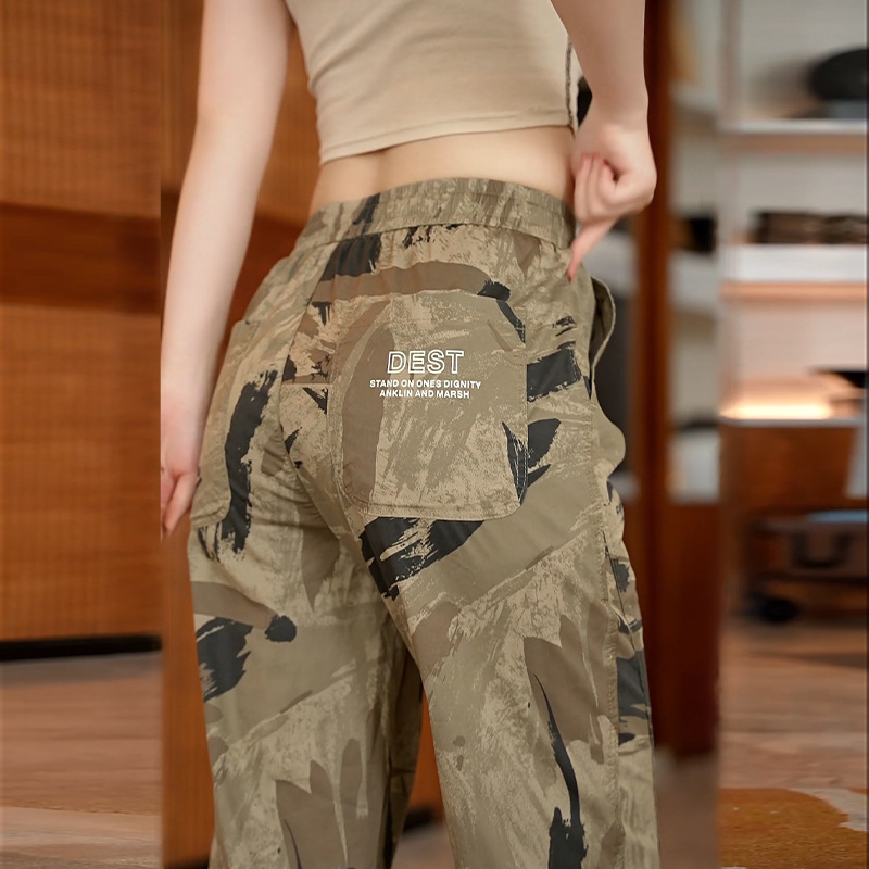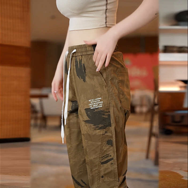 Celana pria kamuflase, celana olahraga cepat kering, kasual pria, celana kerja ikat pergelangan kaki tipis, sutra es, musim panas baru 2024