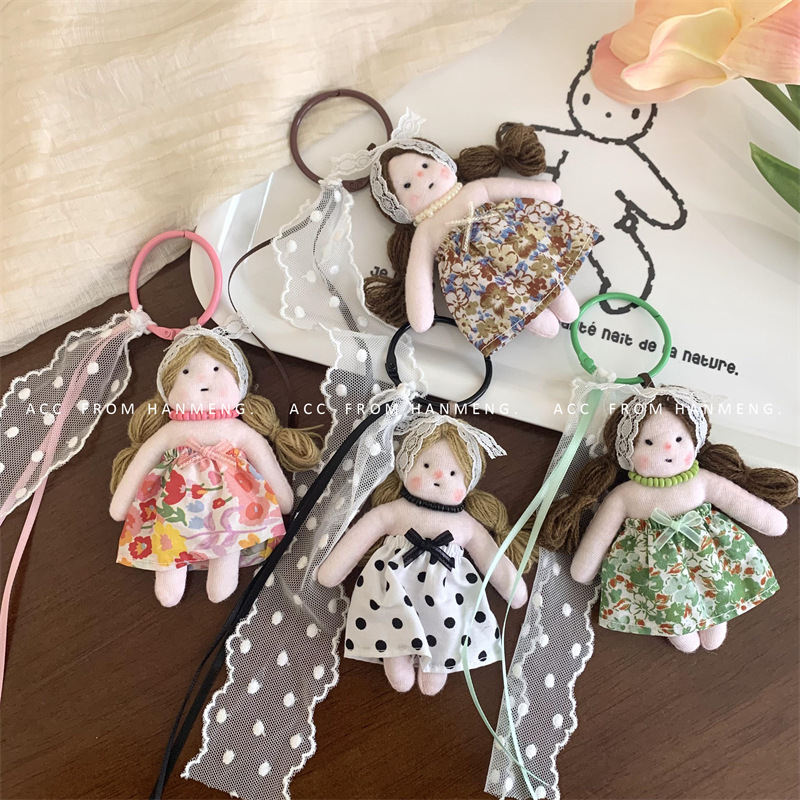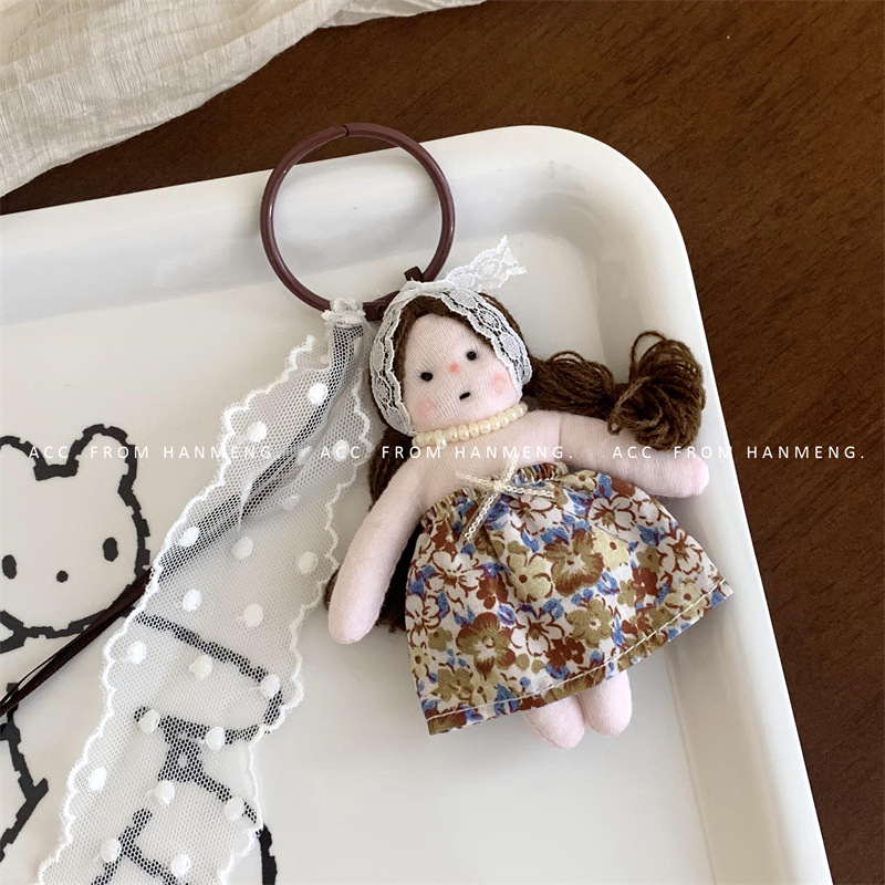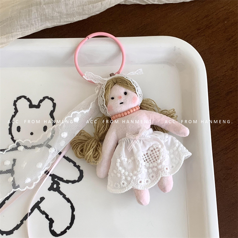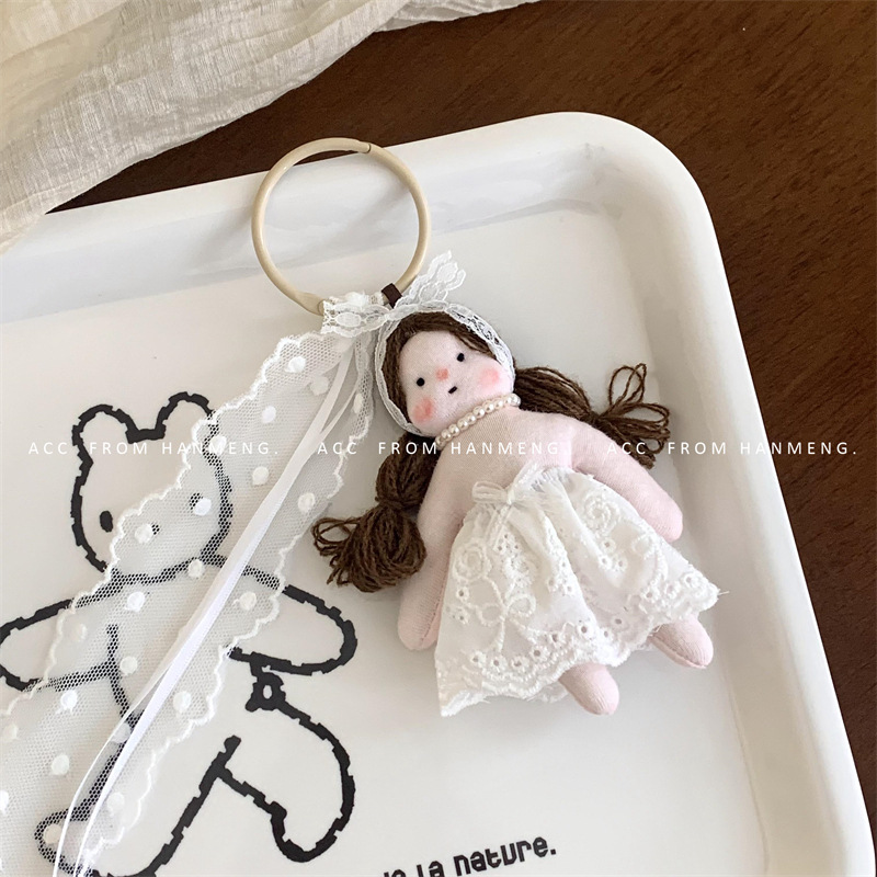 Gantungan Kunci boneka gaya Korea, liontin tas gantung serbaguna renda perempuan