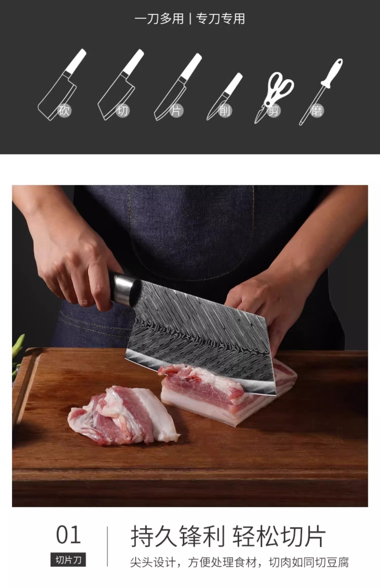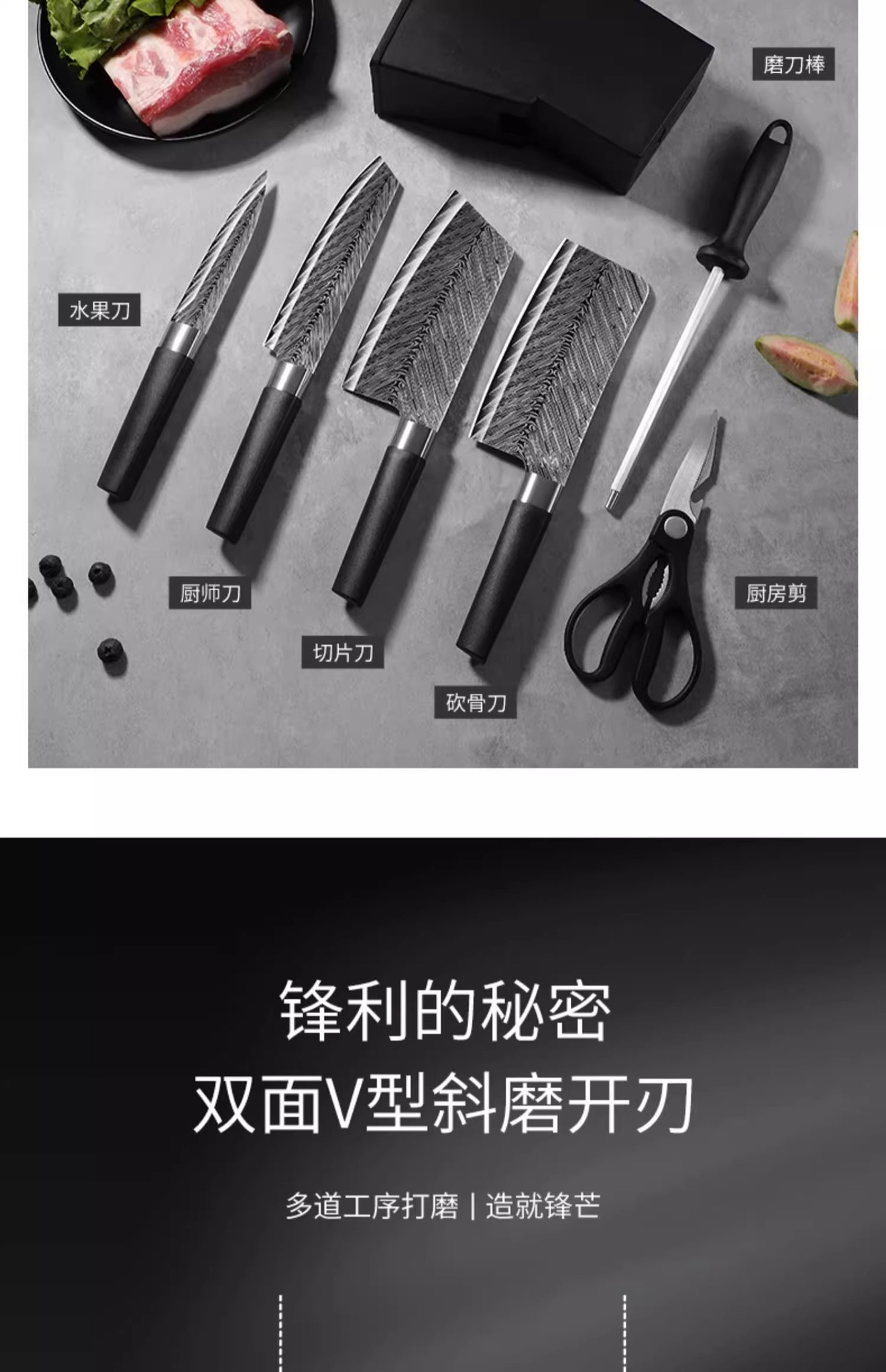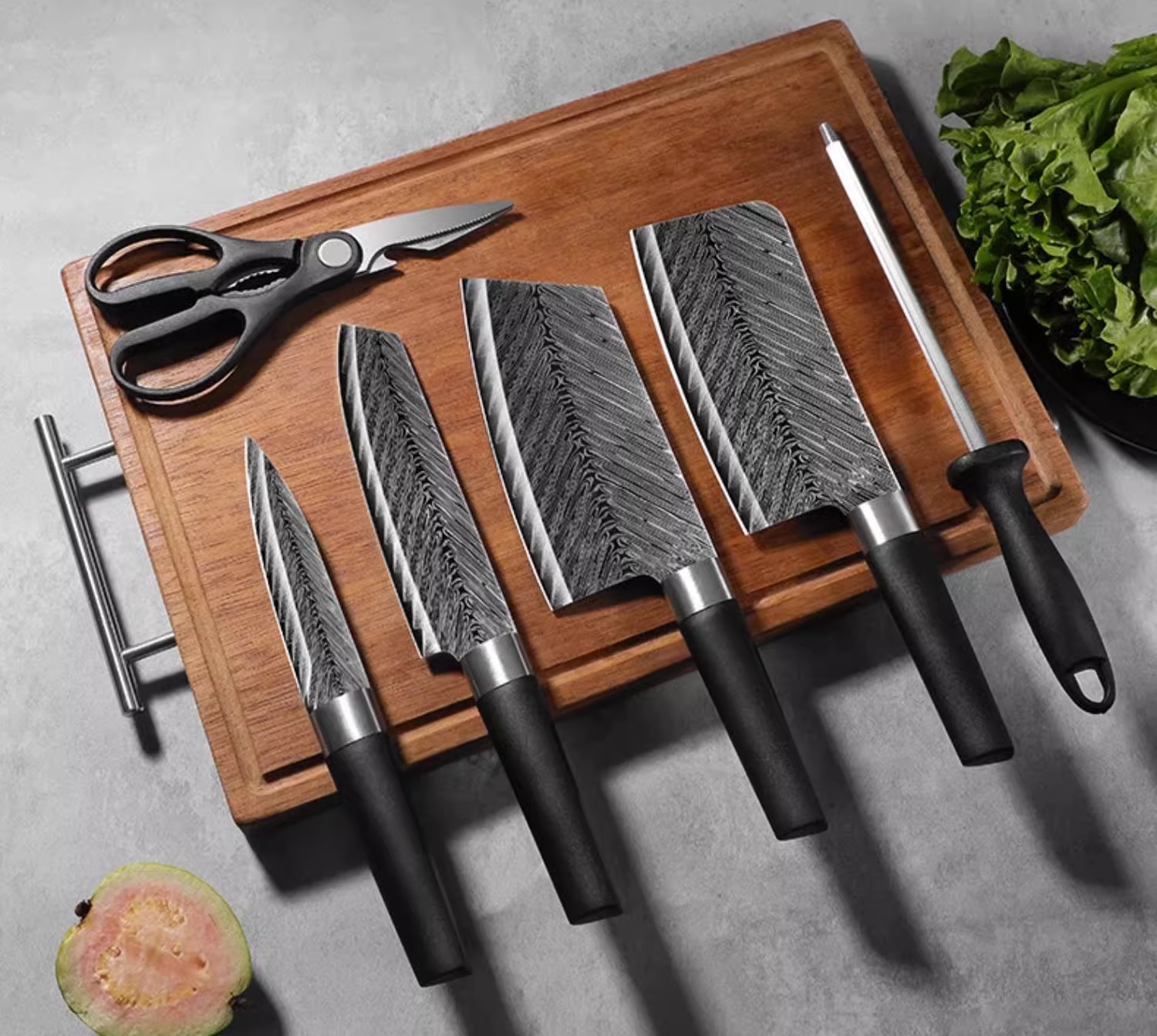 Setelan pisau potong papan dapur, perlengkapan dapur kombinasi, peralatan dapur rumah tangga set lengkap pisau stainless steel