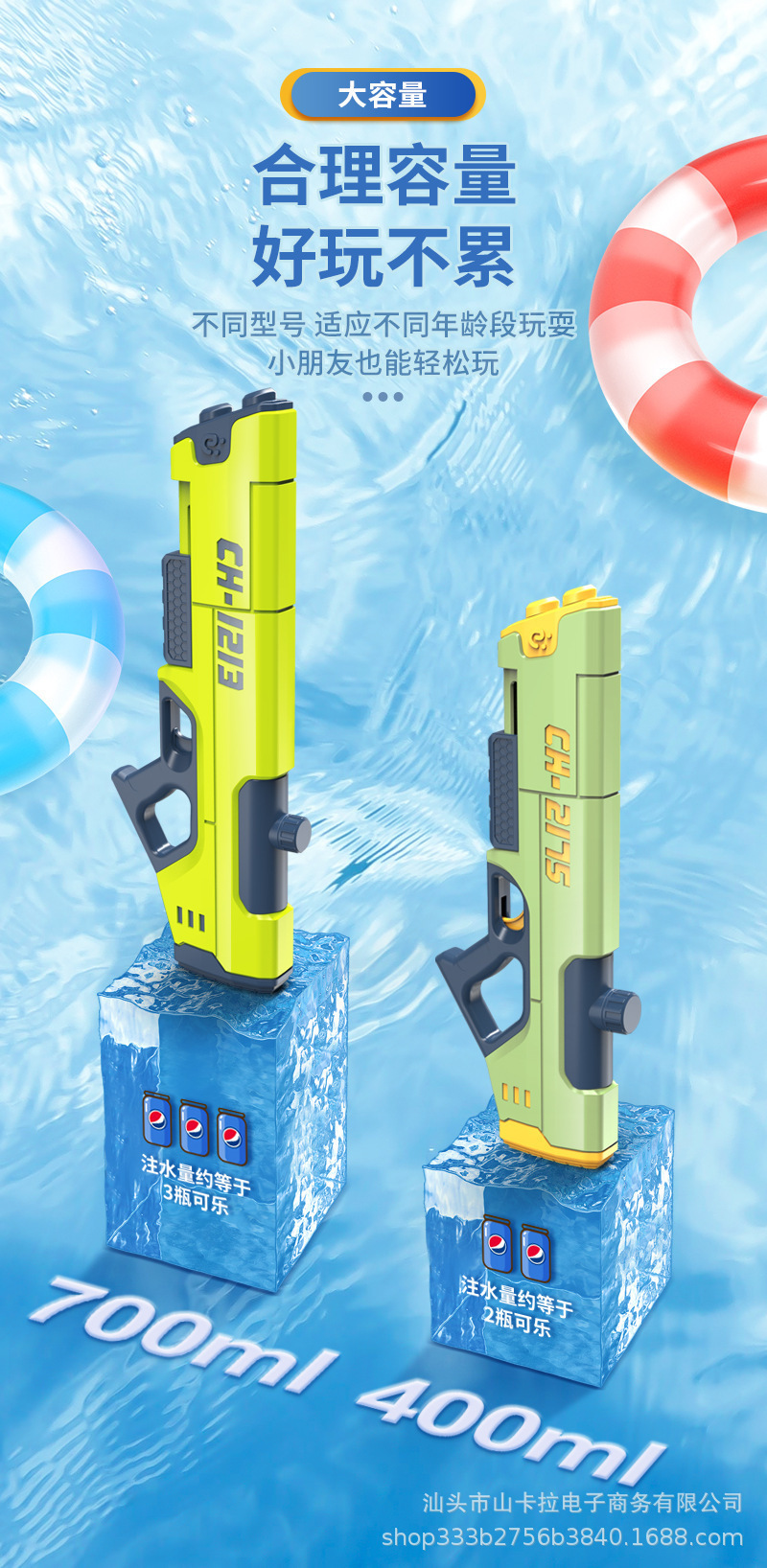 Pistol air Gatling ukuran besar lintas batas untuk kolam renang, pantai, mainan air anak-anak, pertarungan air, Festival Songkran