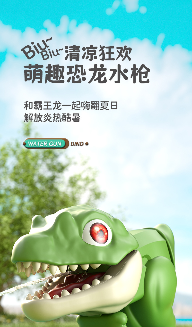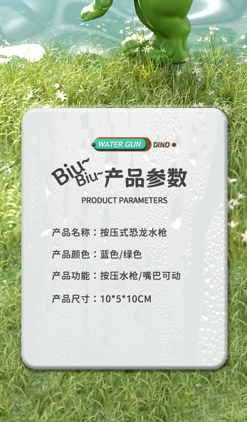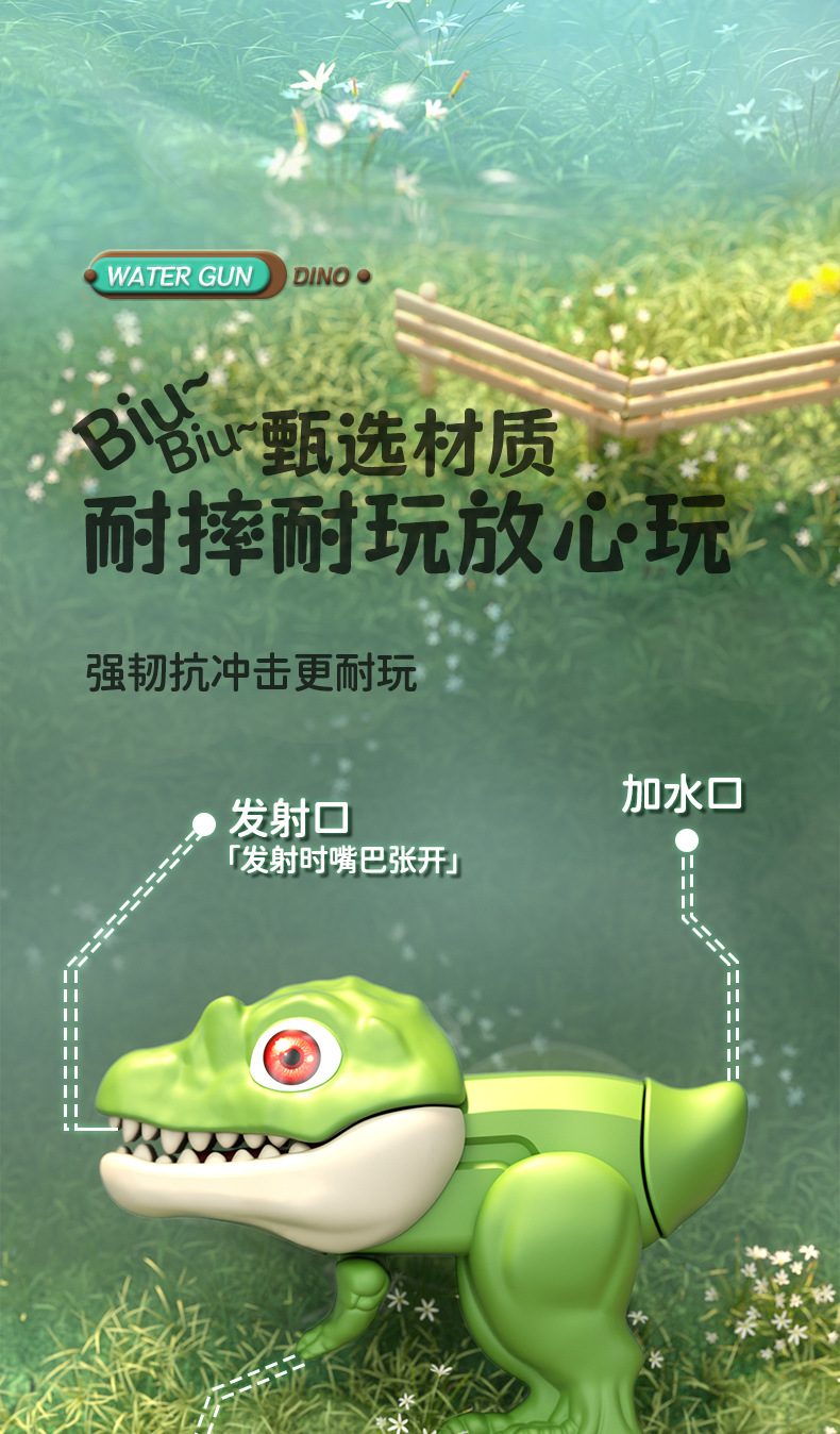 新品趣味恐龙水枪按压出水打水仗儿童玩具连发设计可爱造型喷水