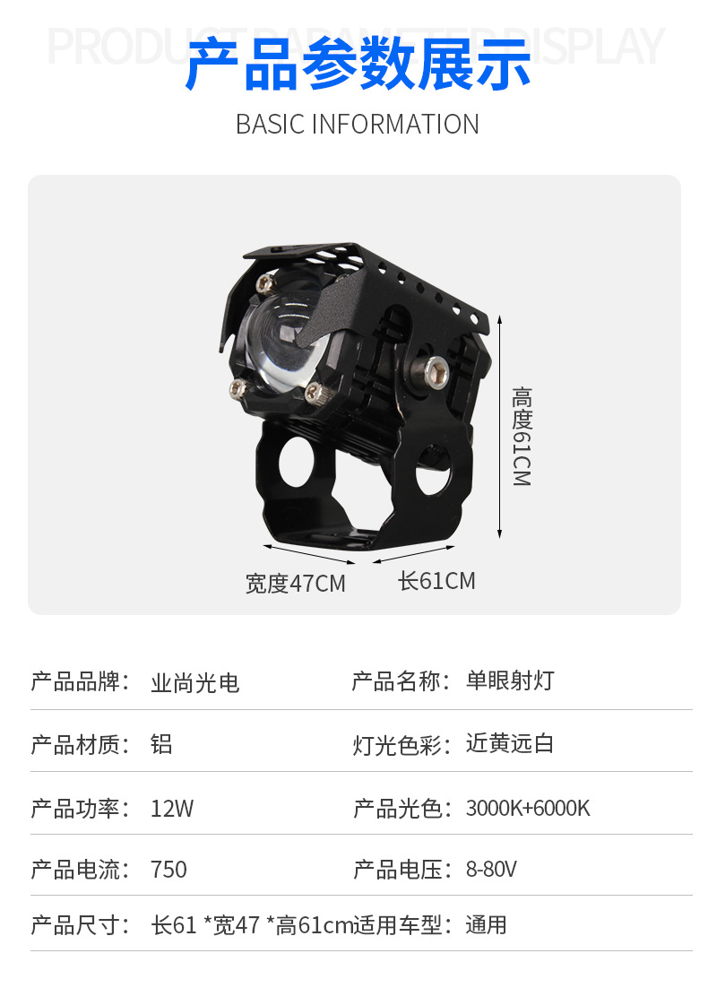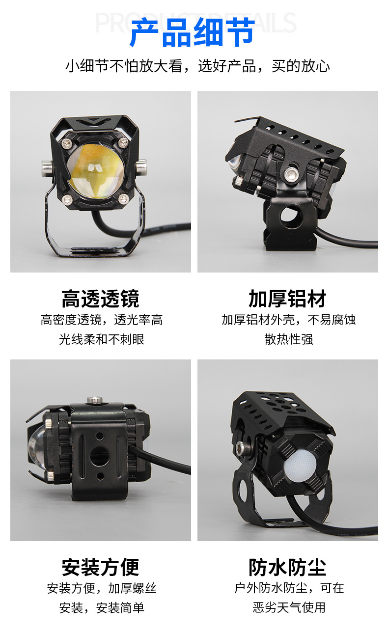 Lampu sorot LED motor single-eye bercahaya tinggi, lampu depan modifikasi kendaraan listrik jarak jauh dan dekat, lampu depan kuning dan putih.