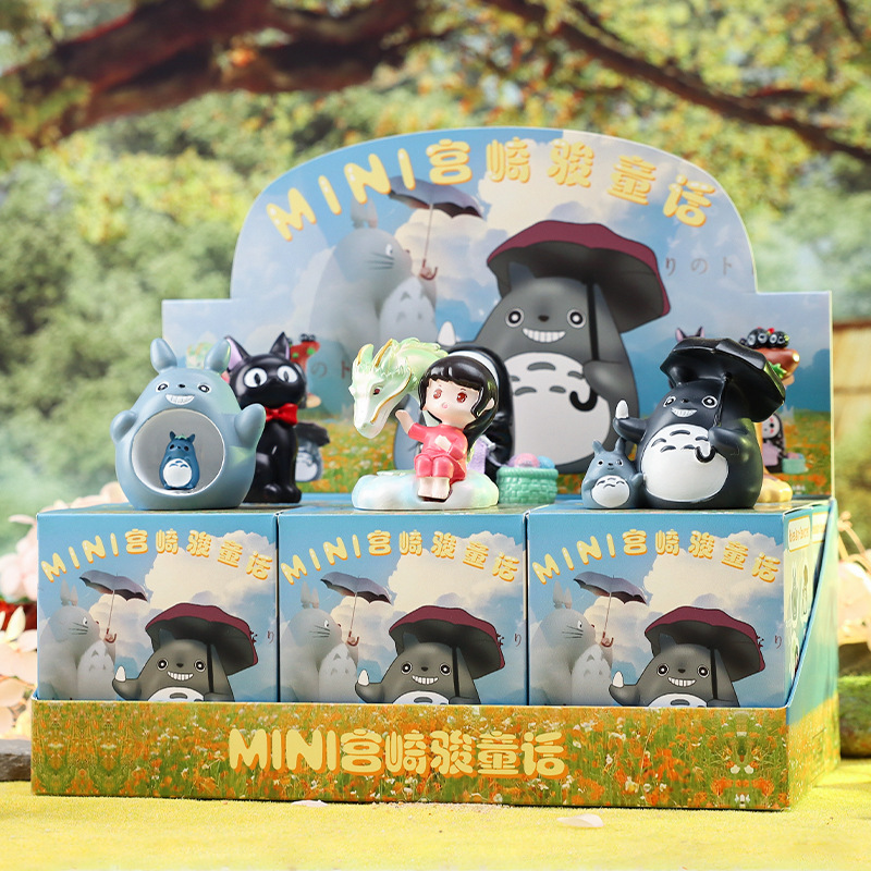 Cross-border mini Hayao Miyazaki mainan kotak buta jaring merah gadis hati Totoro tanpa wajah hadiah buatan tangan pria wanita