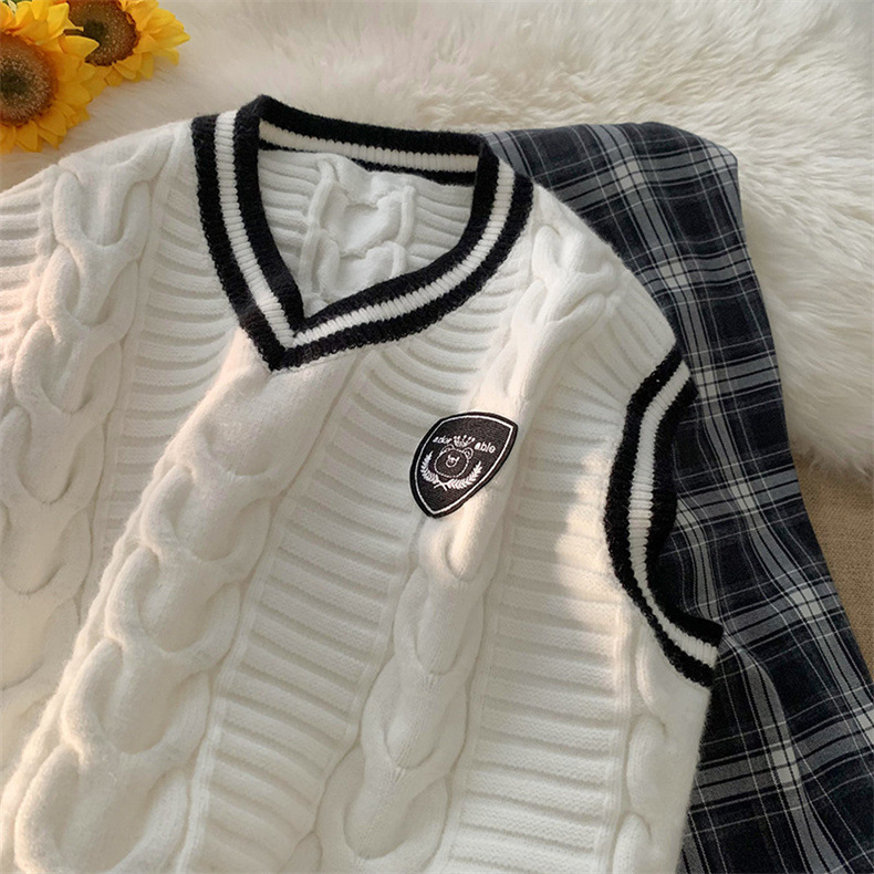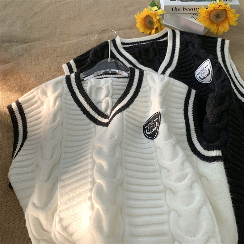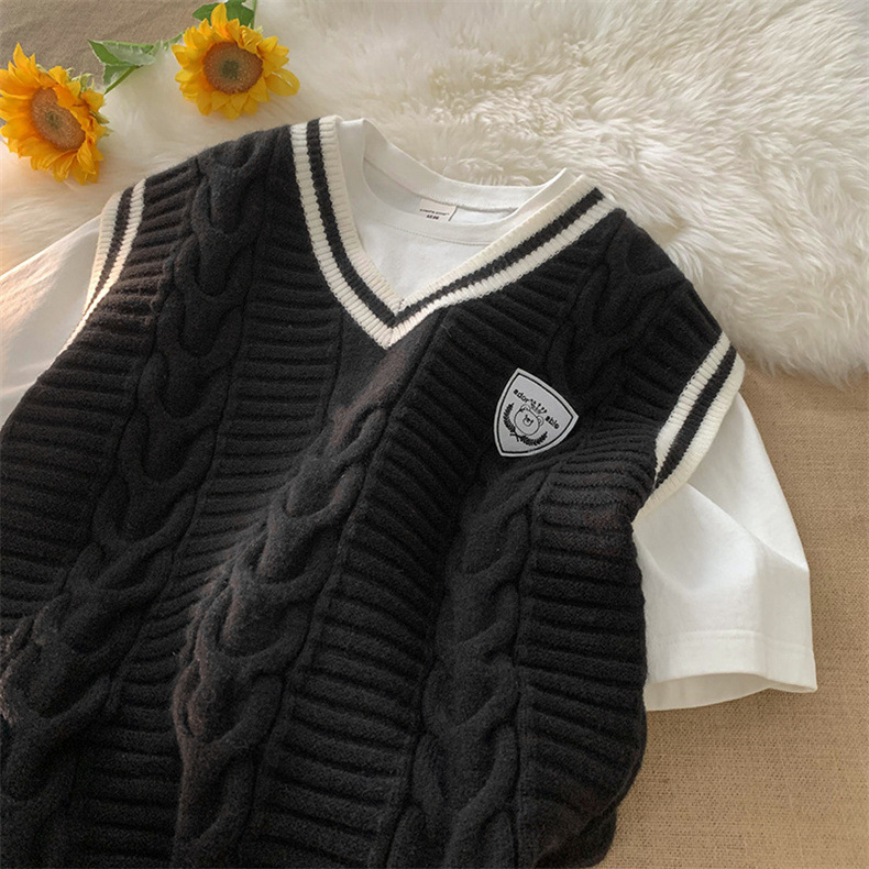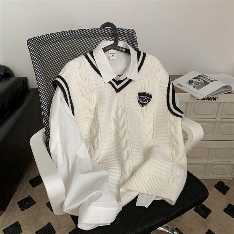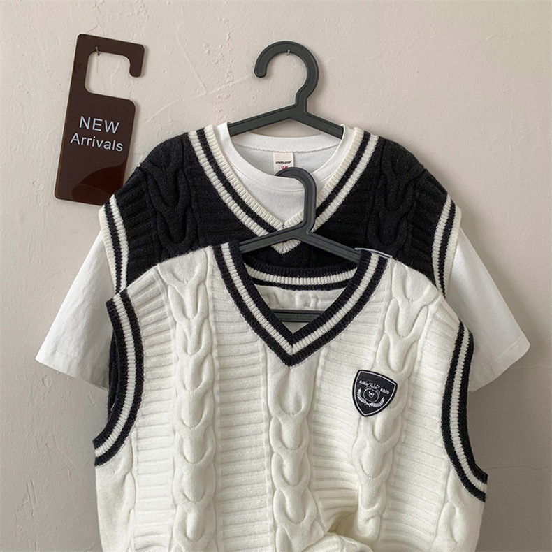 Rompi sweater kerah v Pria Mode Musim Semi dan Musim Gugur rompi tanpa lengan gaya Universitas merek fashion rajutan mantel sweater luar