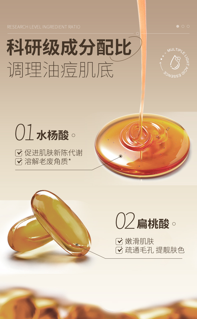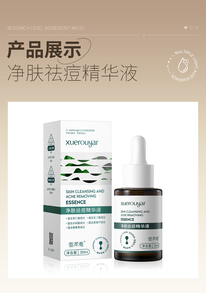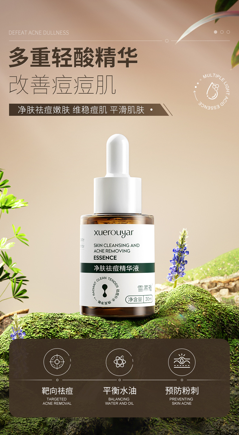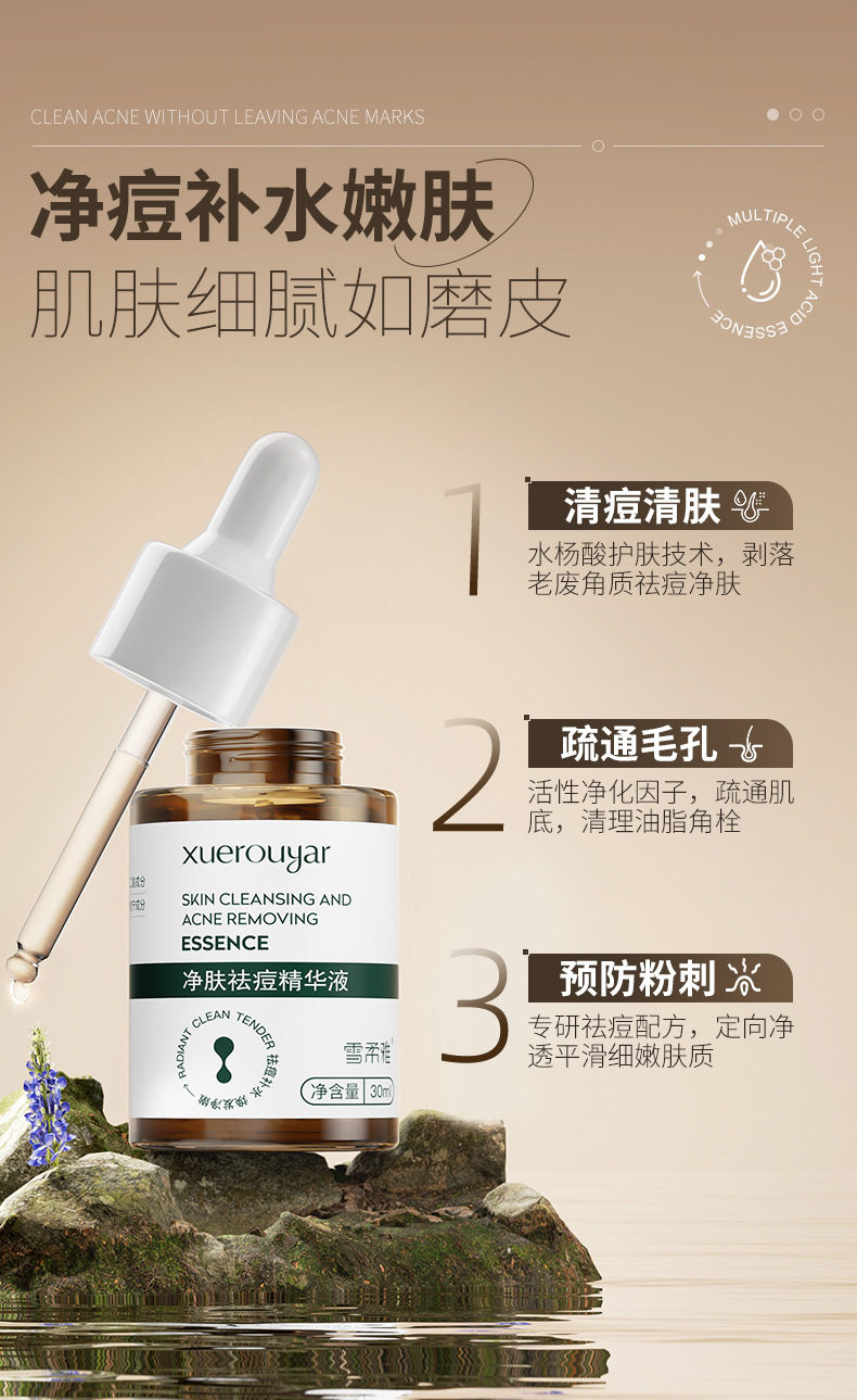 Xuerouya Esensi Asam Salisilat Anti-Jerawat untuk Wajah, Mengecilkan Pori-pori dan Memudarkan Bekas Jerawat, Esensi Herbal Gliserin Solusi Asli