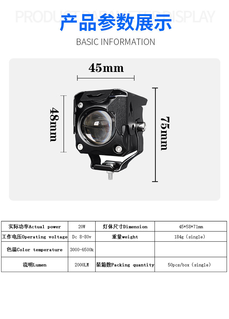 Lampu sorot motor listrik lampu depan sepeda roda tiga baterai super terang eksternal lampu sorot lensa led lampu sorot 12v60