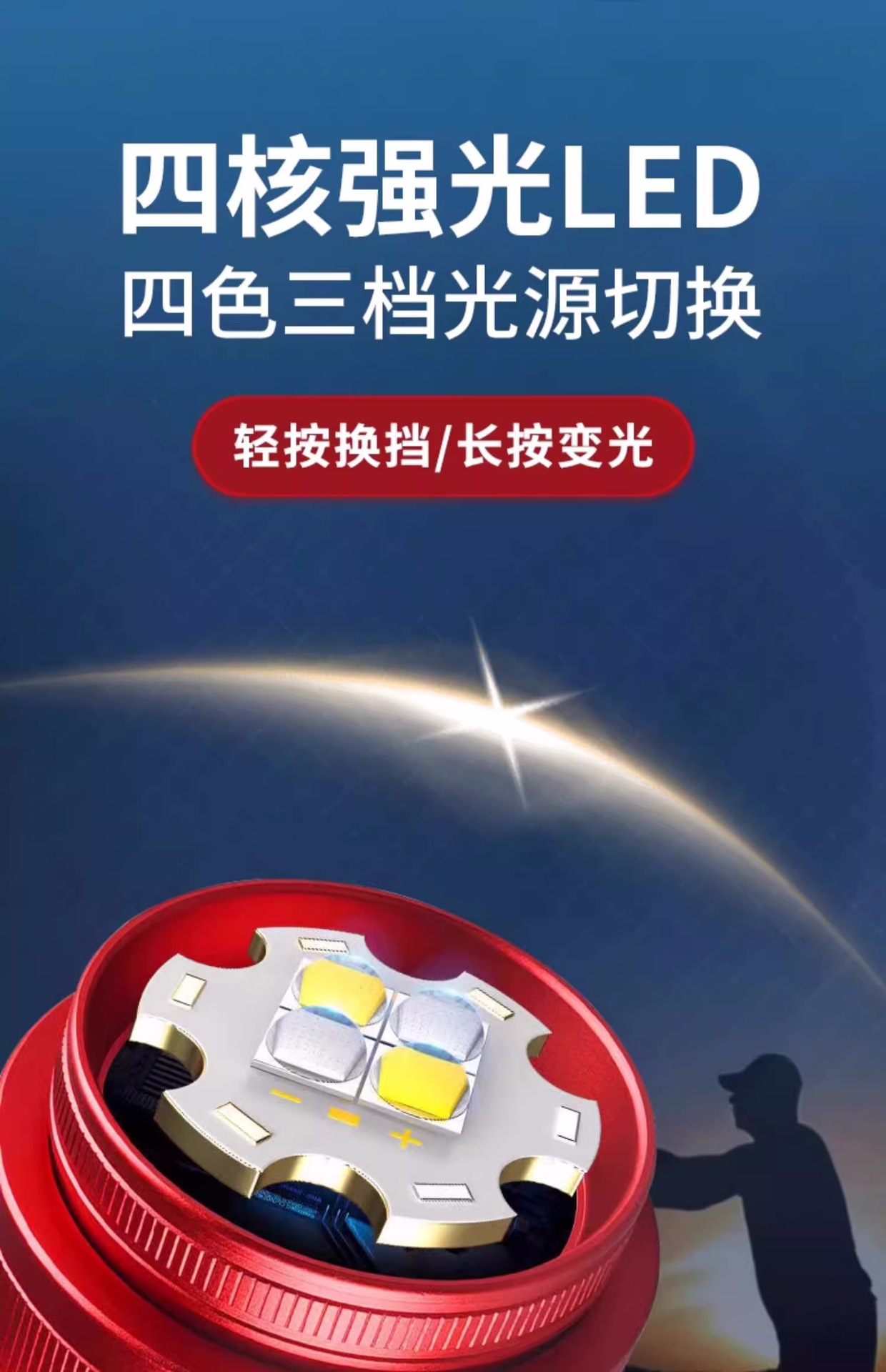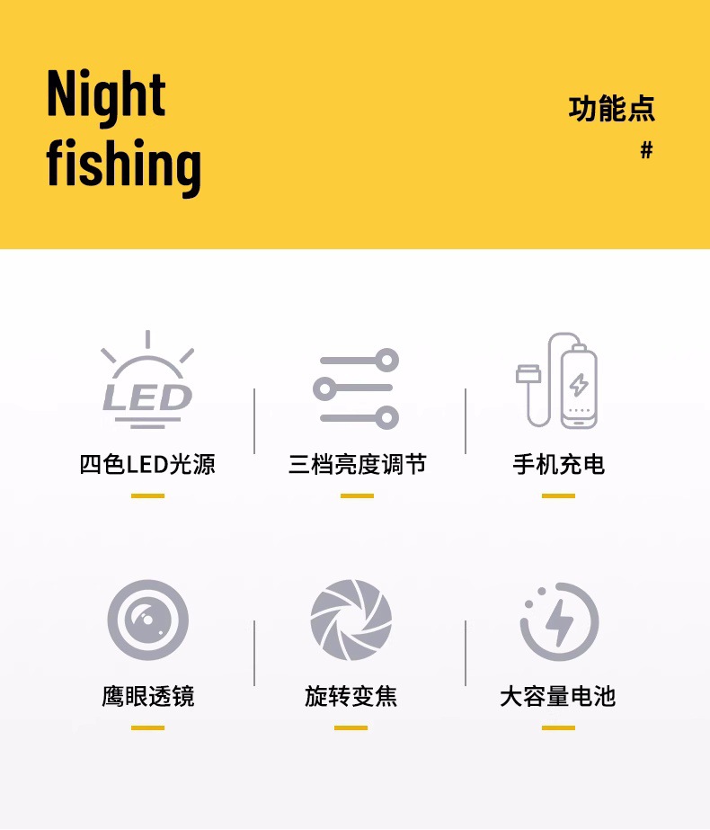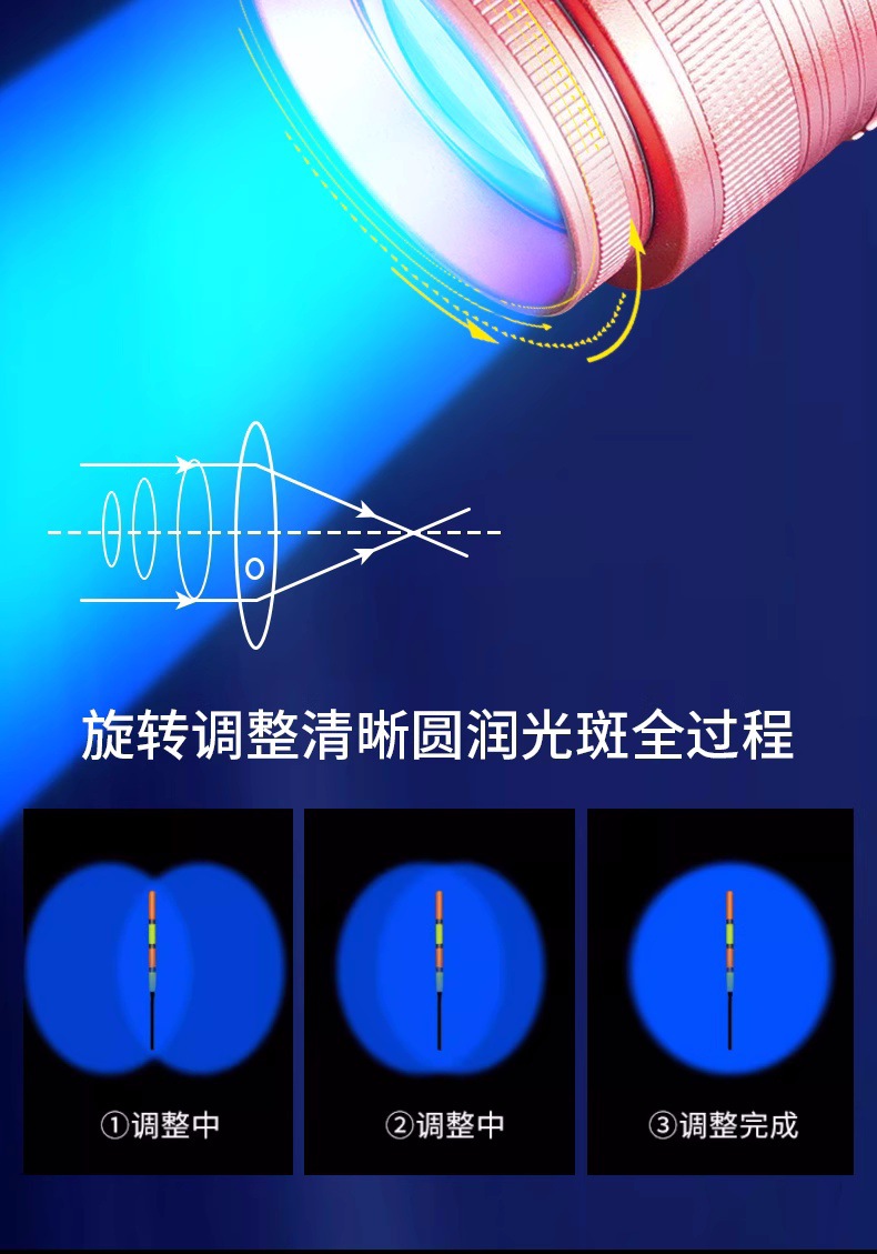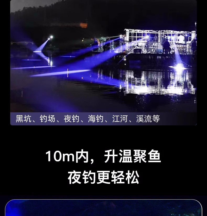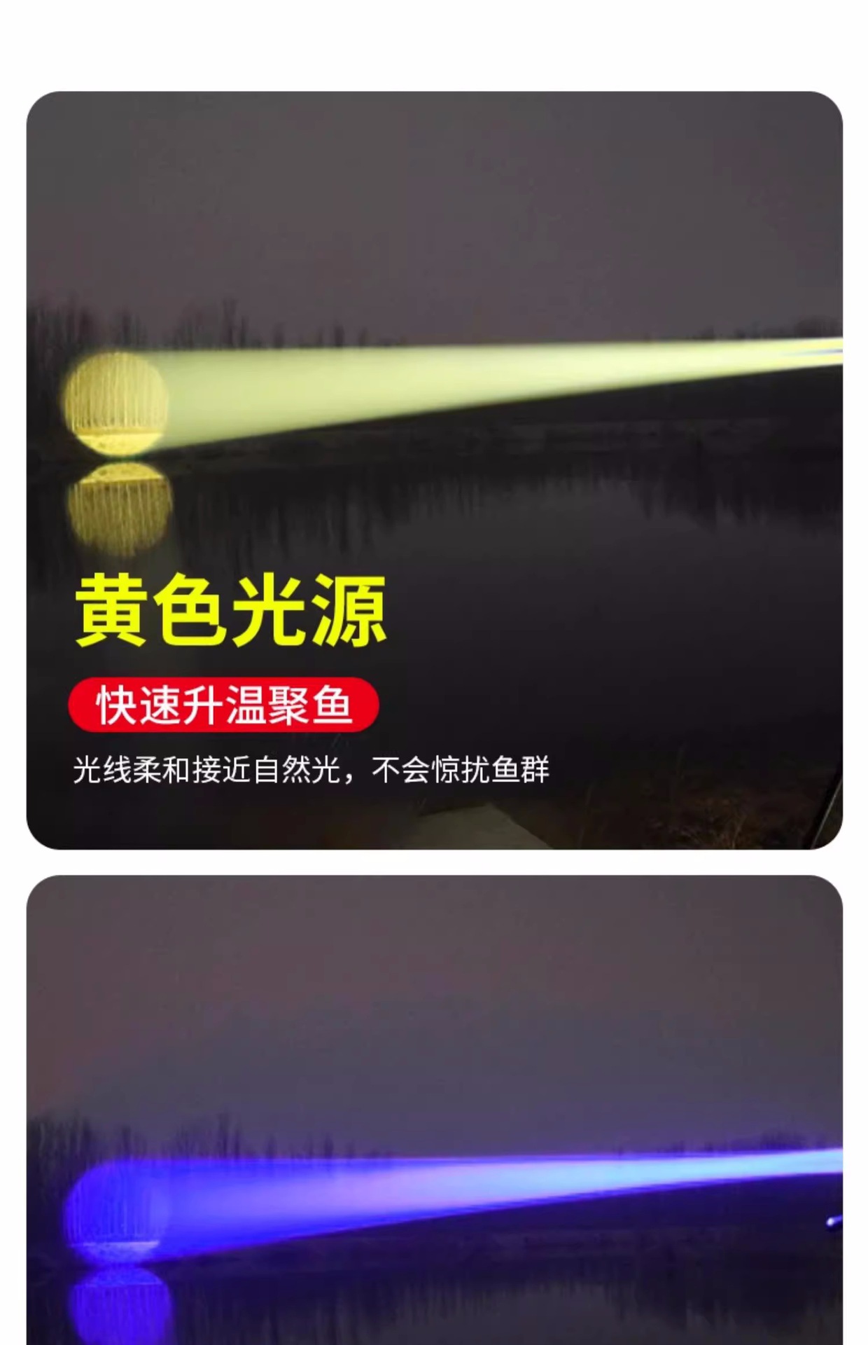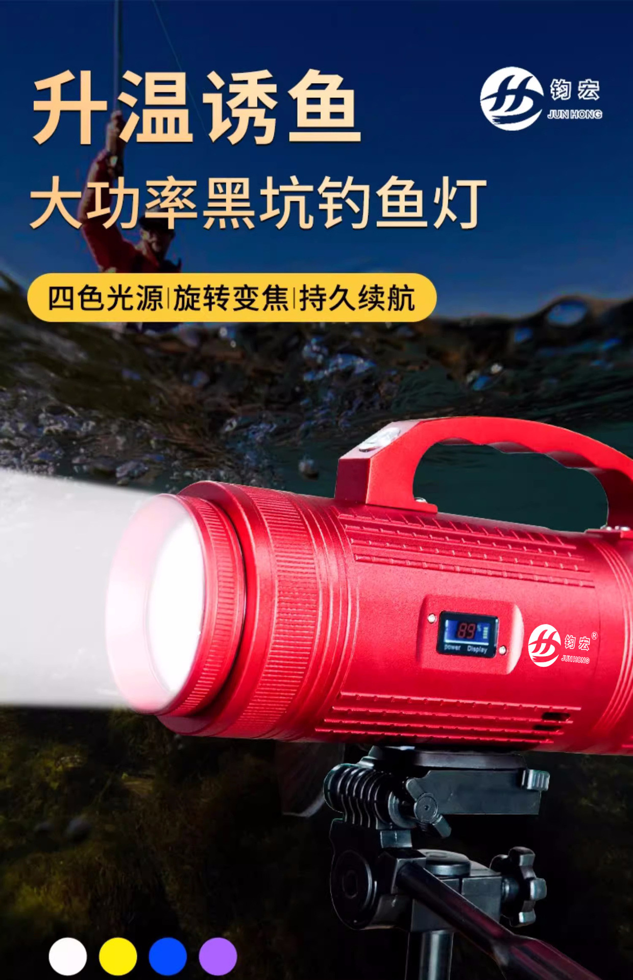 Lampu pancing Junhong Vertex 990plus dengan empat sumber cahaya, spot cahaya bulan bulat, lampu pancing malam, cahaya biru, cahaya kuat berdaya tinggi.