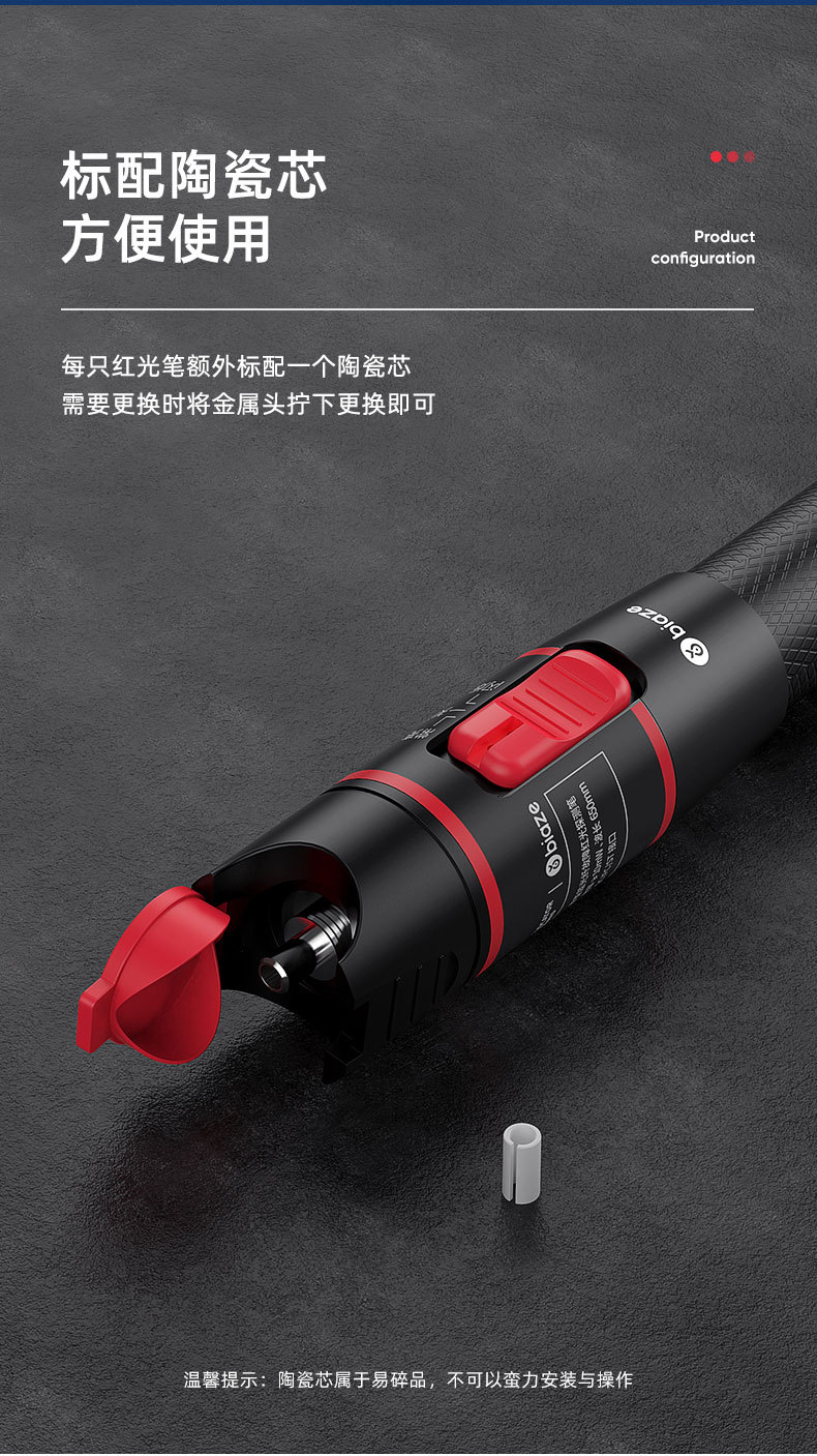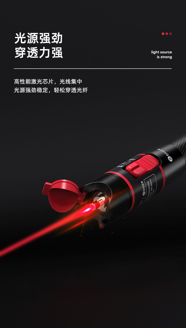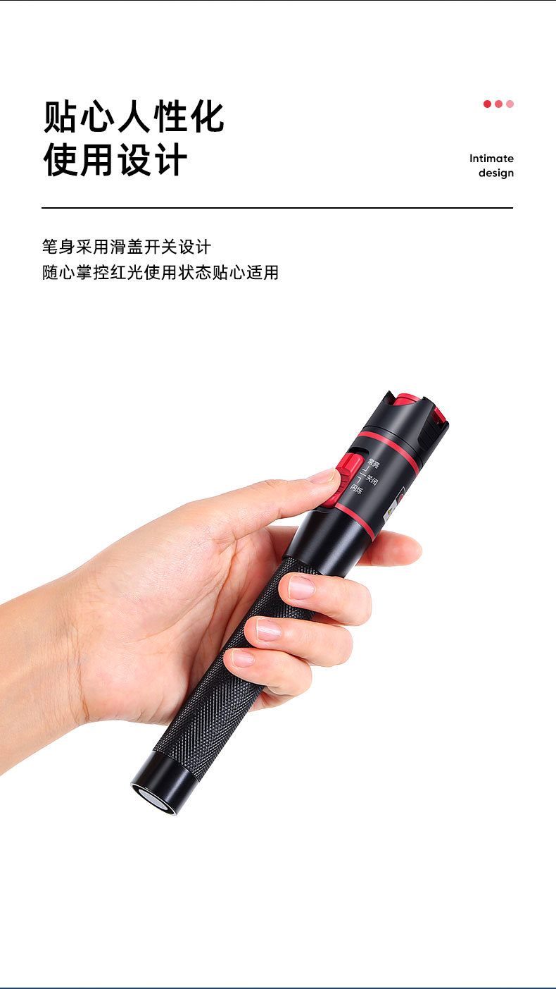 Biaz pena tes serat optik merah 10-50mw, penguji sumber cahaya merah 10km pena penerangan penerangan
