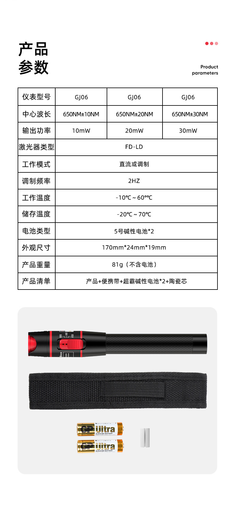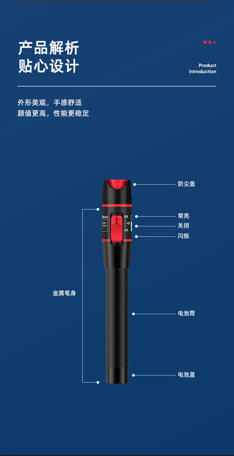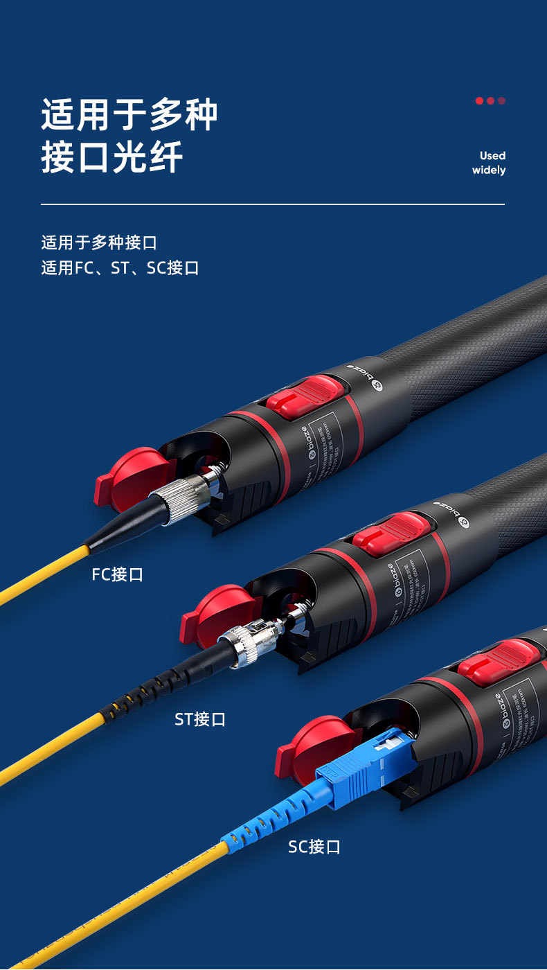 Biaz pena tes serat optik merah 10-50mw, penguji sumber cahaya merah 10km pena penerangan penerangan