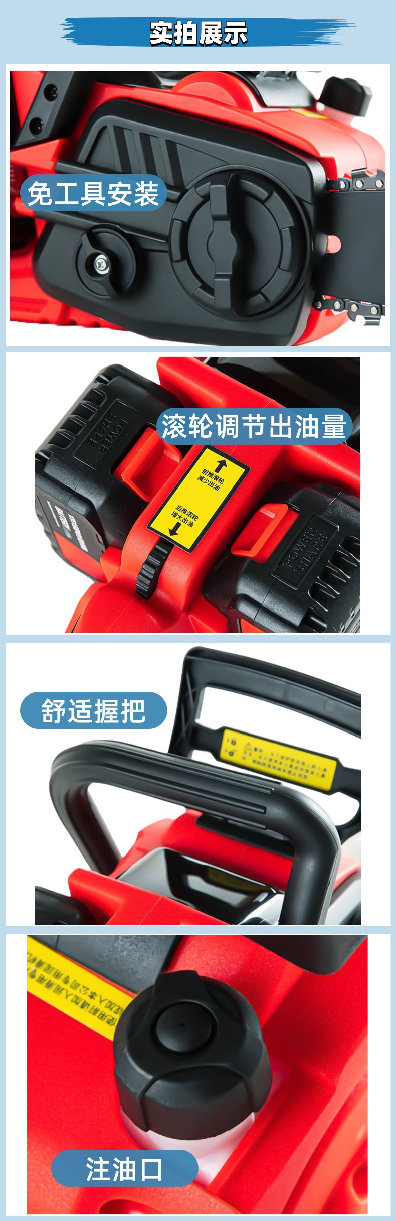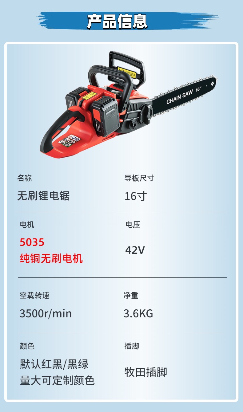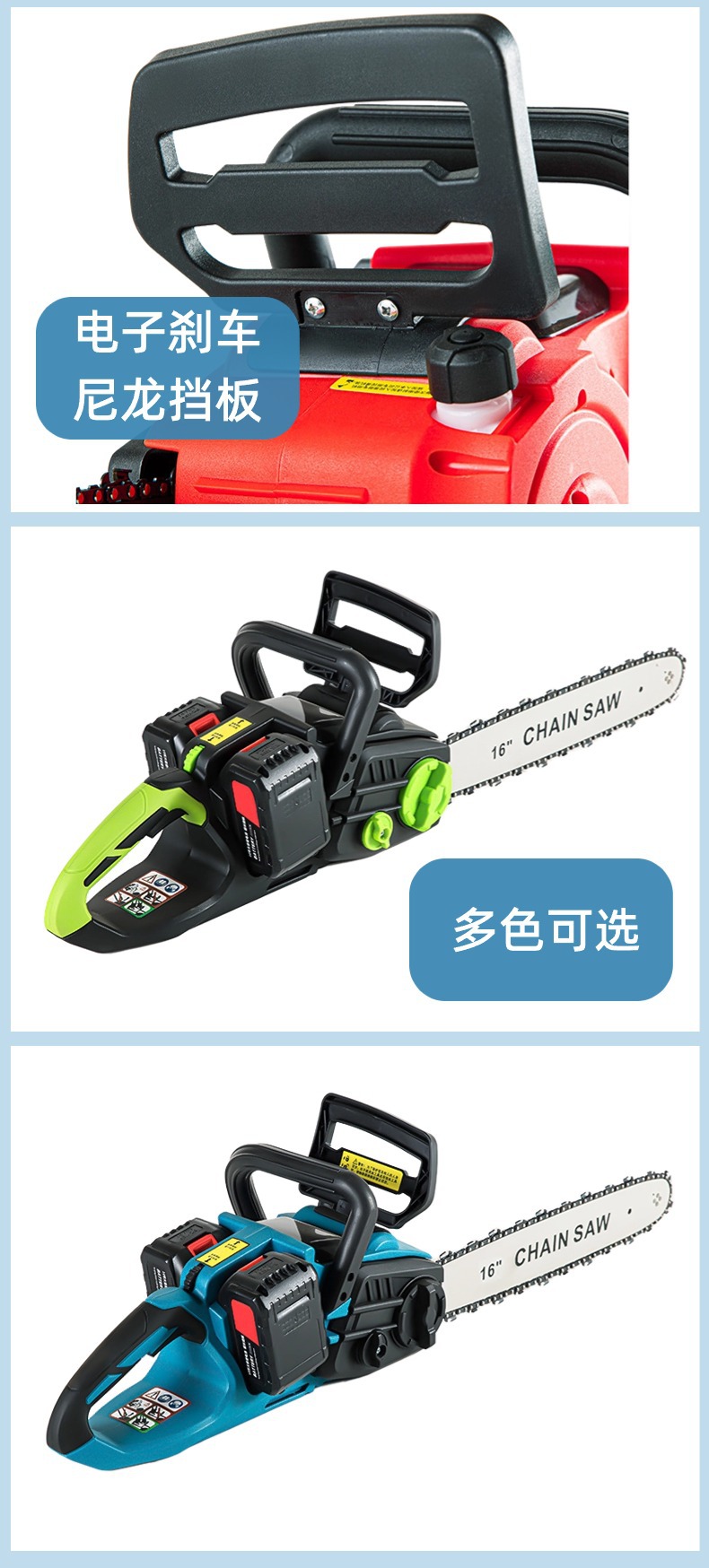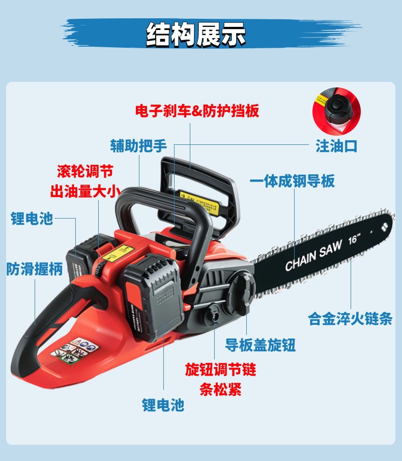 Gergaji listrik Lithium 16 inci, gergaji listrik lithium dapat diisi ulang daya tinggi portabel daya tinggi tanpa sikat untuk rumah tangga