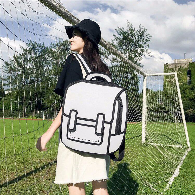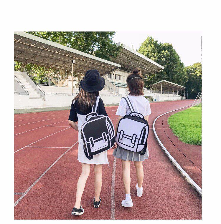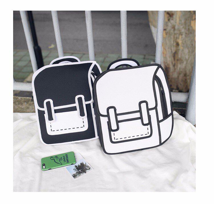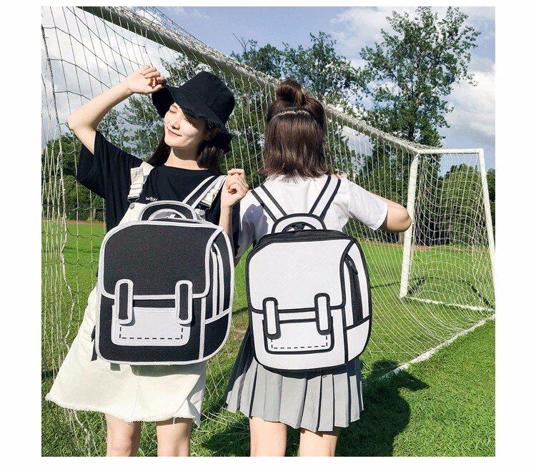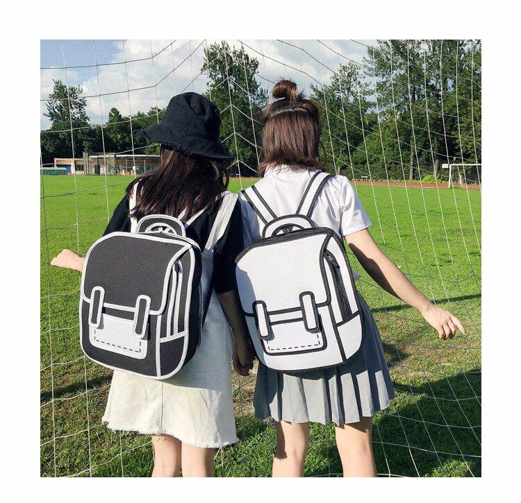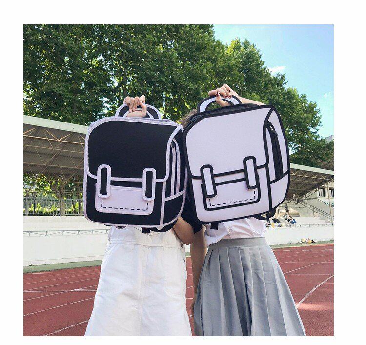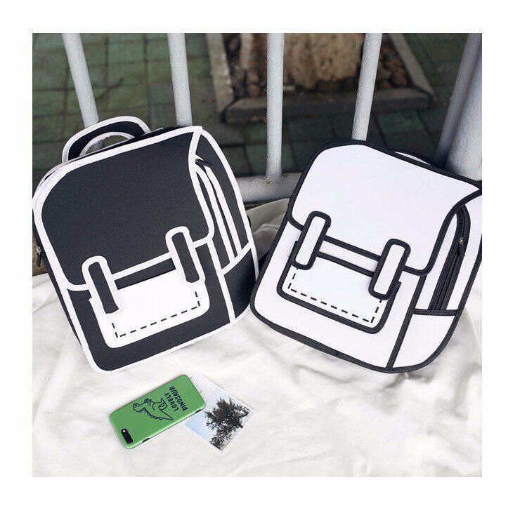 Tas sekolah ransel grafiti hitam dan putih lukisan kertas 2D kartun dua dimensi ransel tas kartun