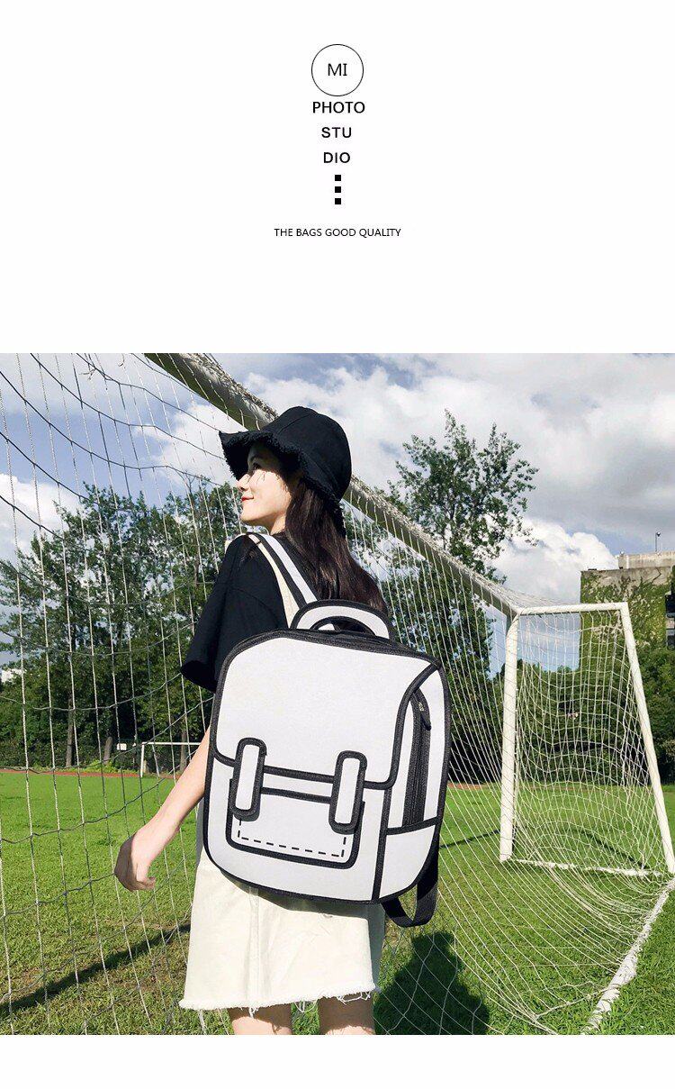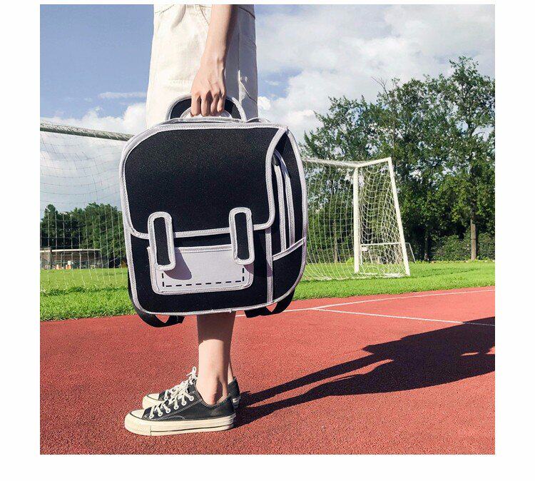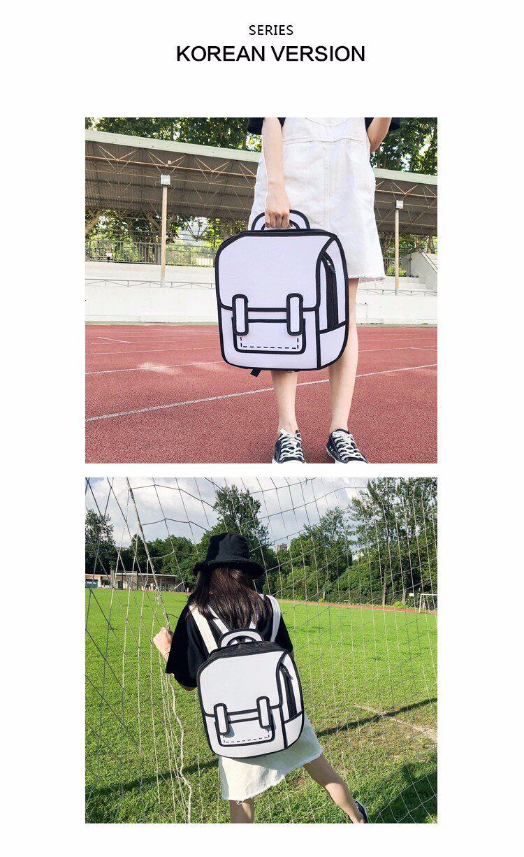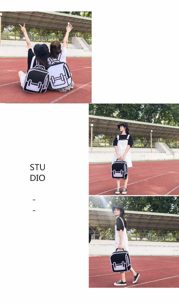 Tas sekolah ransel grafiti hitam dan putih lukisan kertas 2D kartun dua dimensi ransel tas kartun
