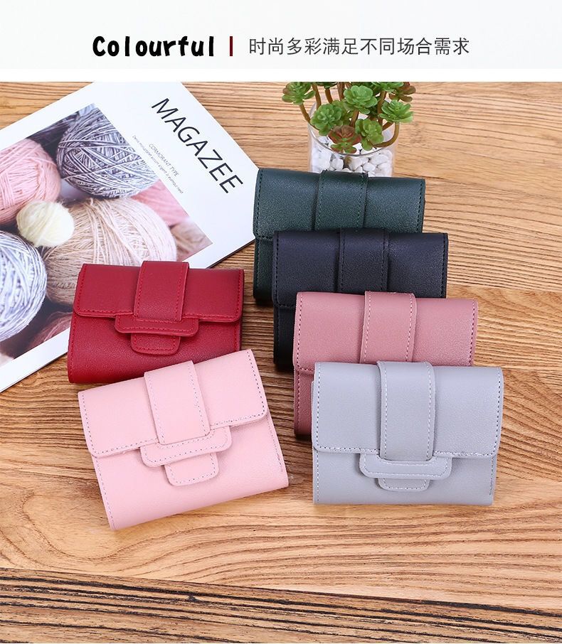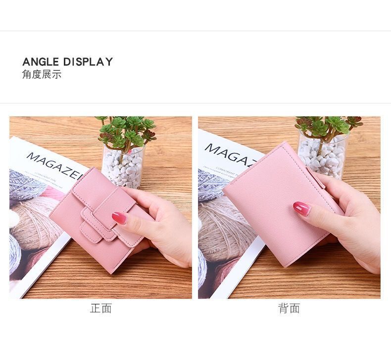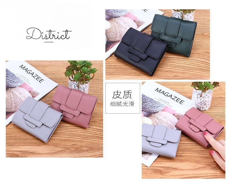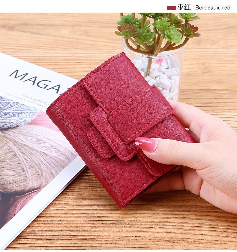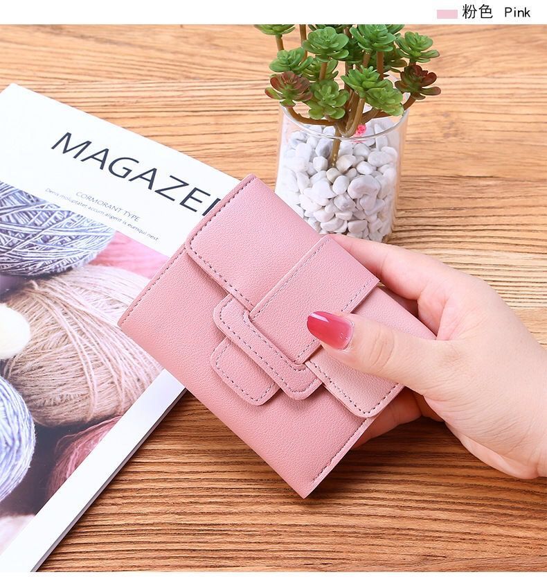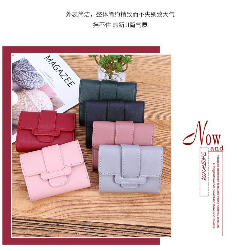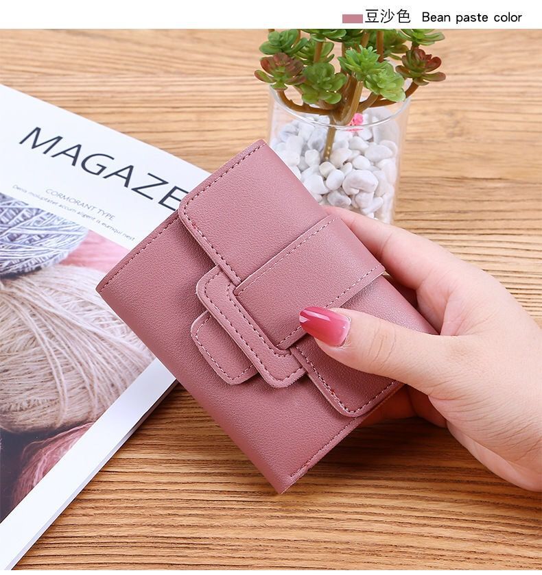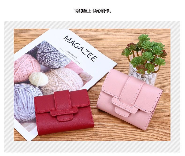 Dompet wanita lipat tiga tali serut warna polos, gaya Korea, dompet koin, dompet pendek pelajar, tempat kartu