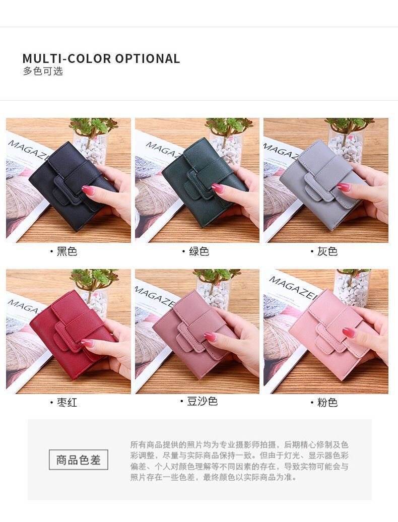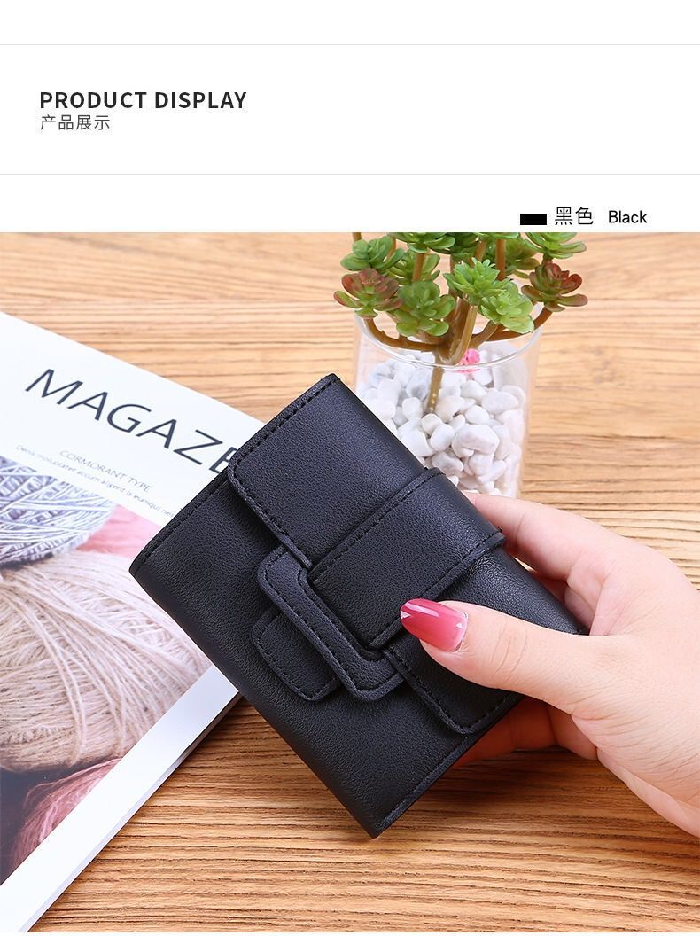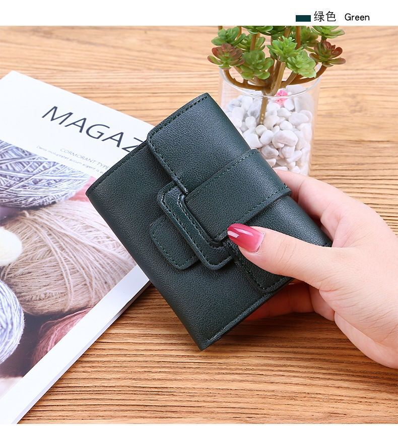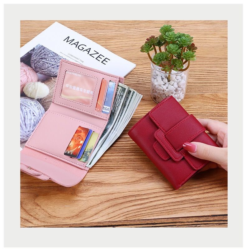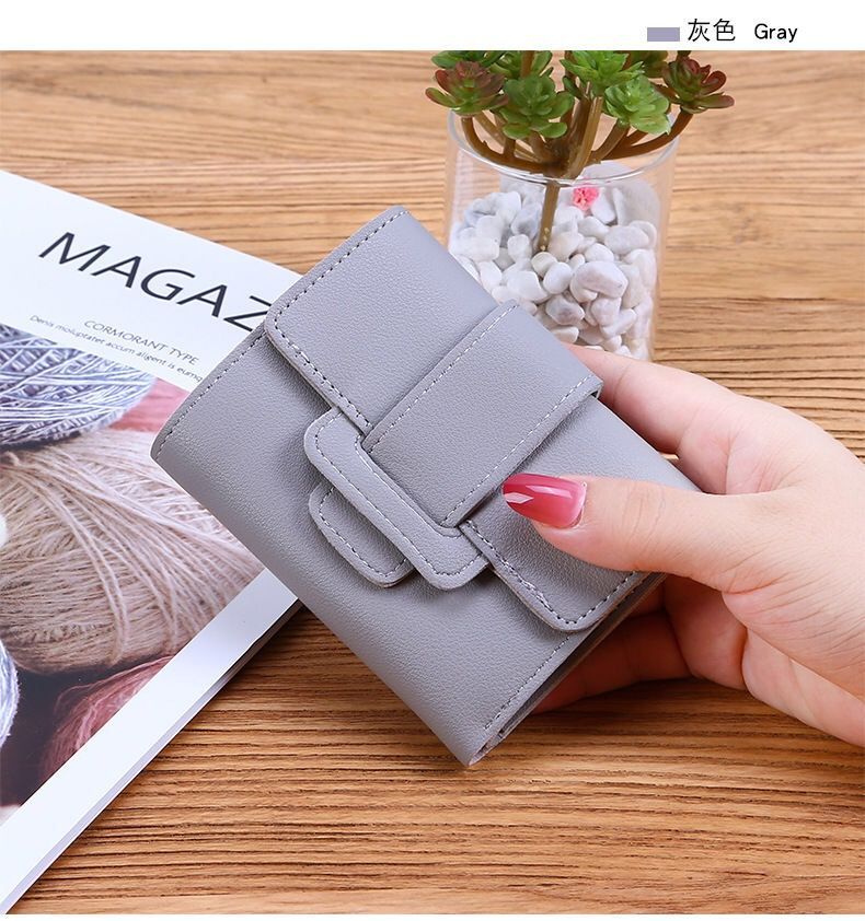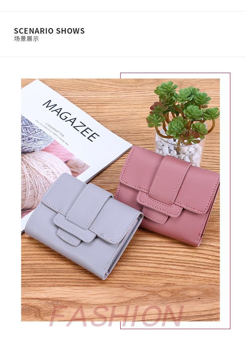 Dompet wanita lipat tiga tali serut warna polos, gaya Korea, dompet koin, dompet pendek pelajar, tempat kartu
