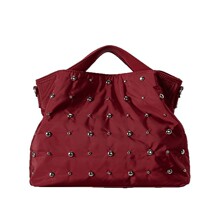 韩国新款复古质感铆钉手提包尼龙托特包大容量时尚单肩斜挎包女
