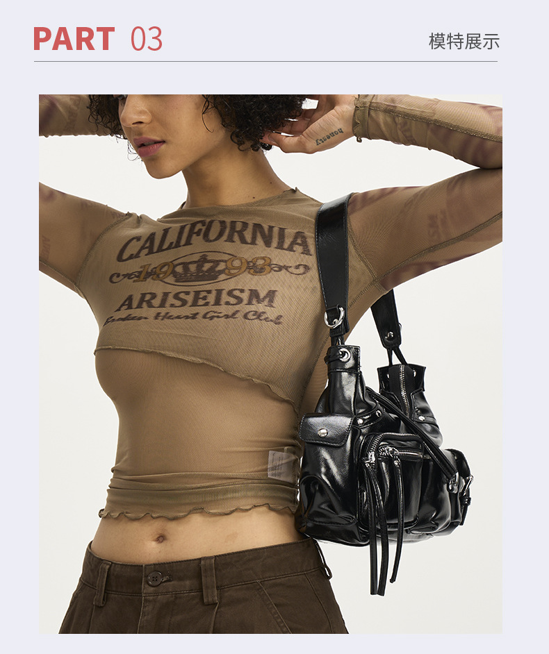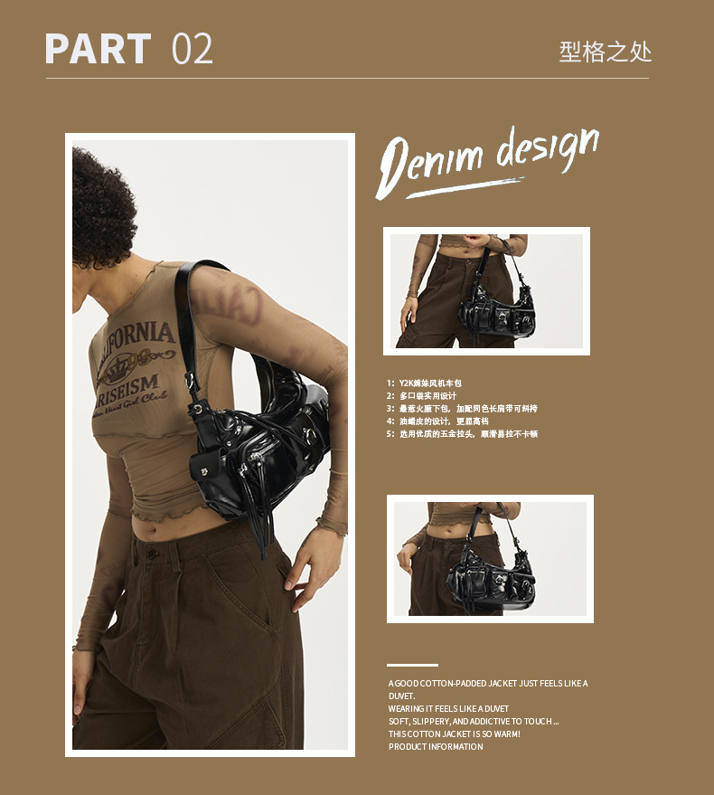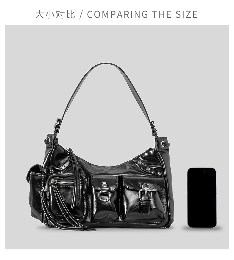 Tas kurir bahu PU wanita desain niche wanita banyak saku kapasitas besar y2g tas lengan bawah berbentuk cekung gadis panas