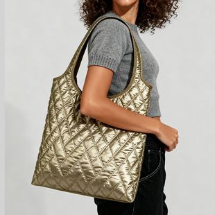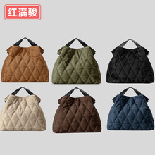 时尚菱格太空棉手提包简约麂皮绒单肩包秋冬羽绒填充棉托特包女
