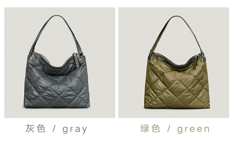 冬季爆款绗缝菱格羽绒包柔软云朵托特包填充夹棉单肩子母手提包女