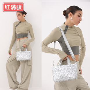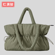 抽绳羽绒托特包大容量褶皱束口手提包填棉单肩腋下包女工厂批发