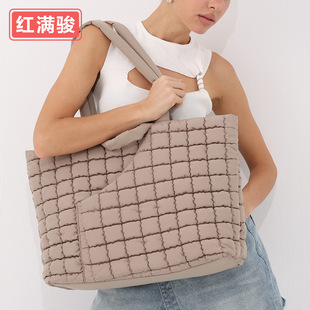 亚马逊绗缝菱格托特包大容量女羽绒包单肩托特包蓬松云朵泡泡包
