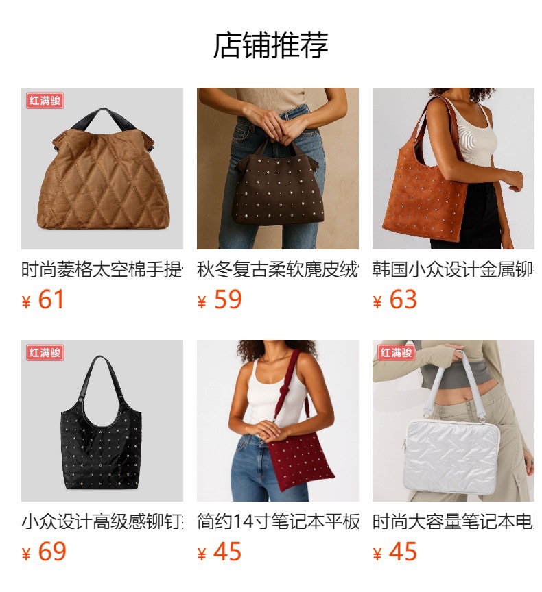 秋冬复古柔软麂皮绒饺子包大容量铆钉托特包时尚单肩斜挎包女工厂