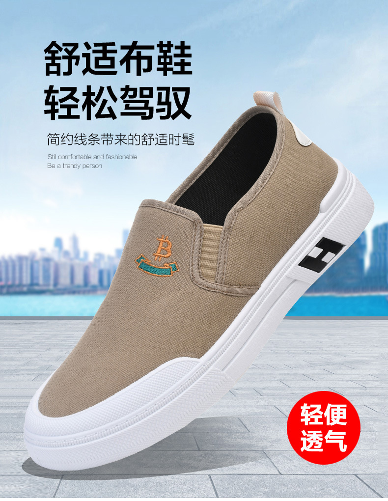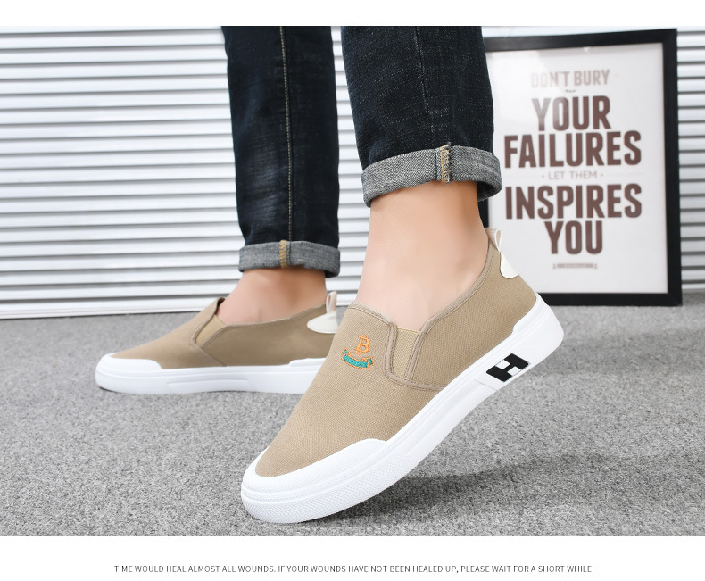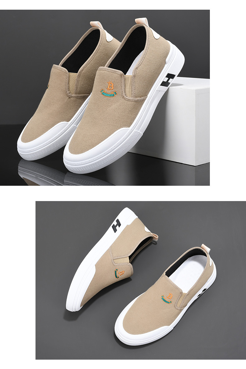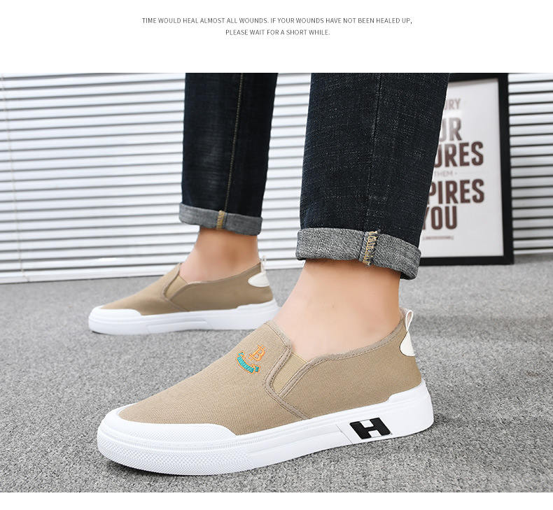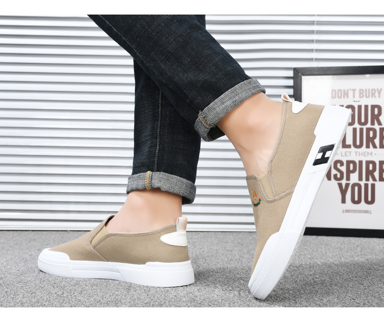 Sepatu kanvas katun murni untuk pria, sepatu harian gaya Korea serbaguna untuk pelajar, sepatu slip-on yang nyaman dan ringan untuk orang paruh baya dan lansia.