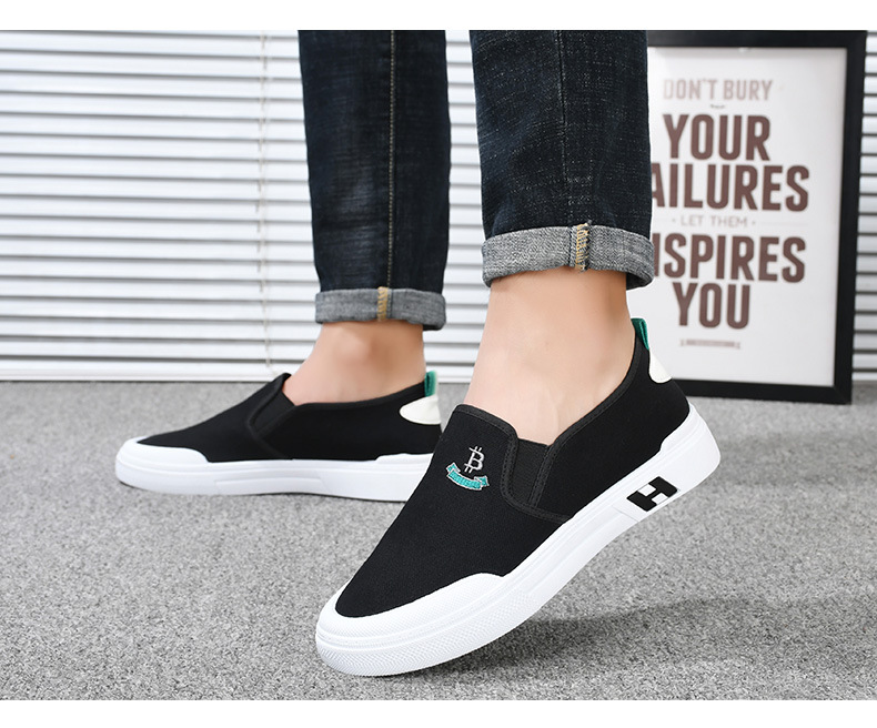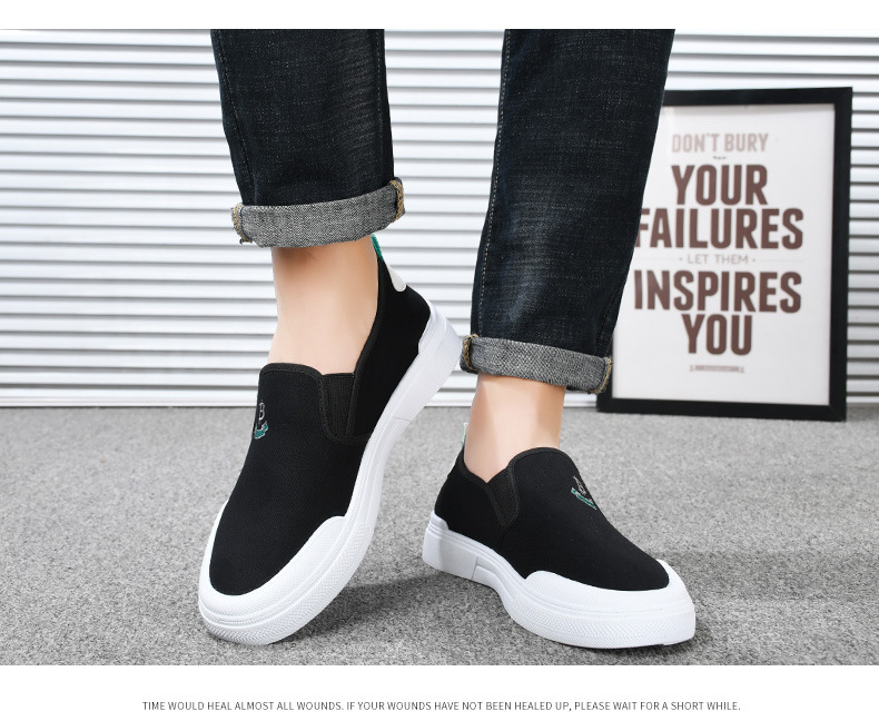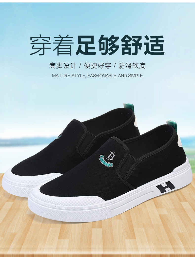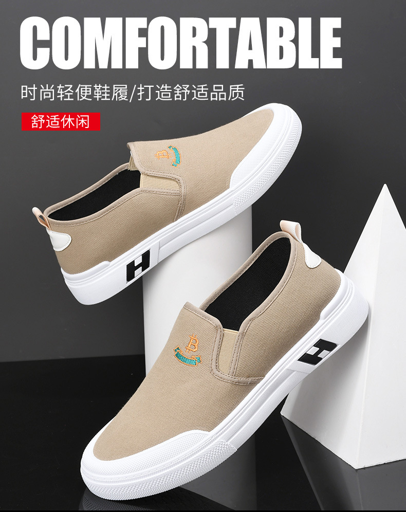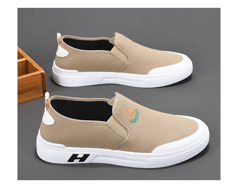 Sepatu kanvas katun murni untuk pria, sepatu harian gaya Korea serbaguna untuk pelajar, sepatu slip-on yang nyaman dan ringan untuk orang paruh baya dan lansia.